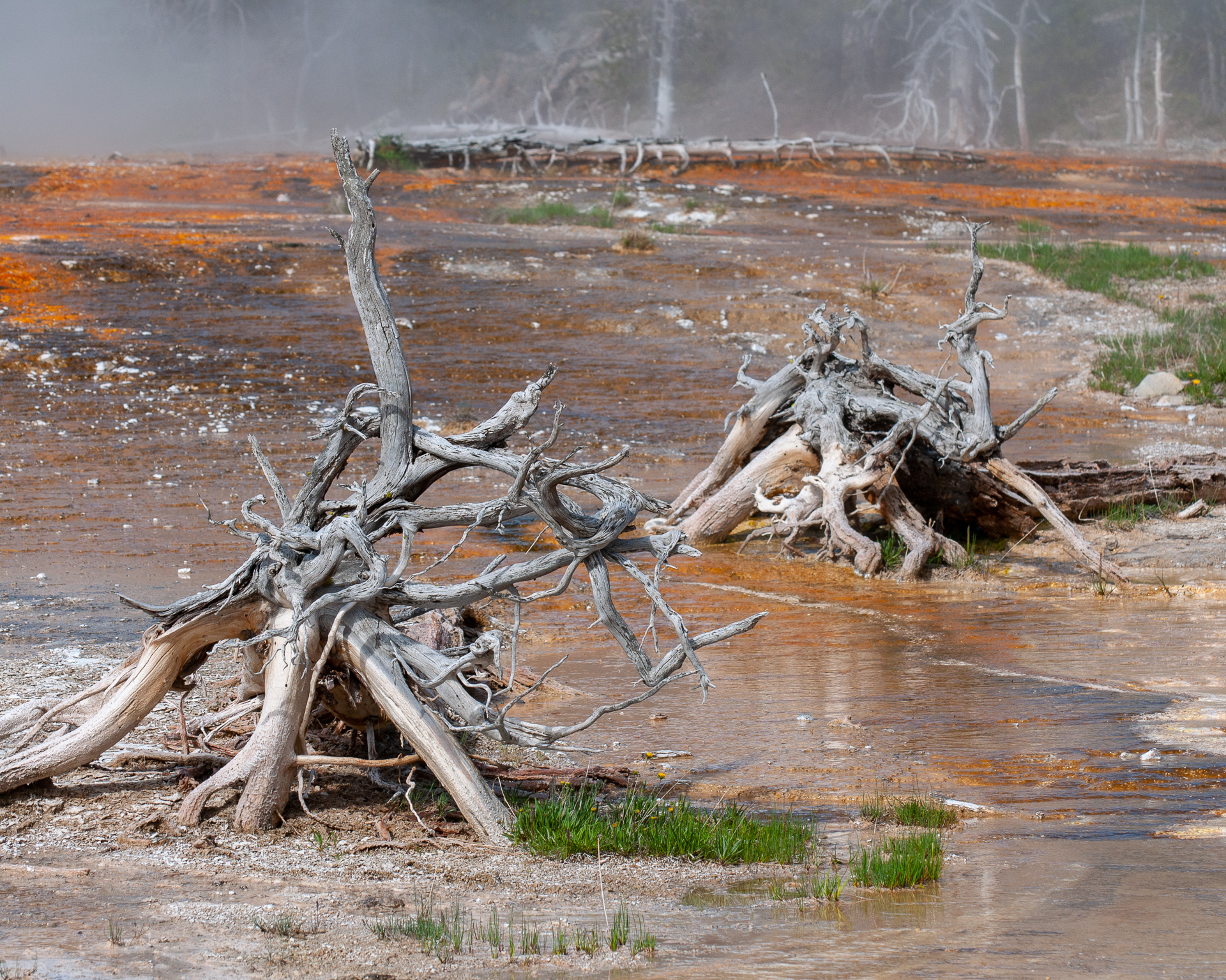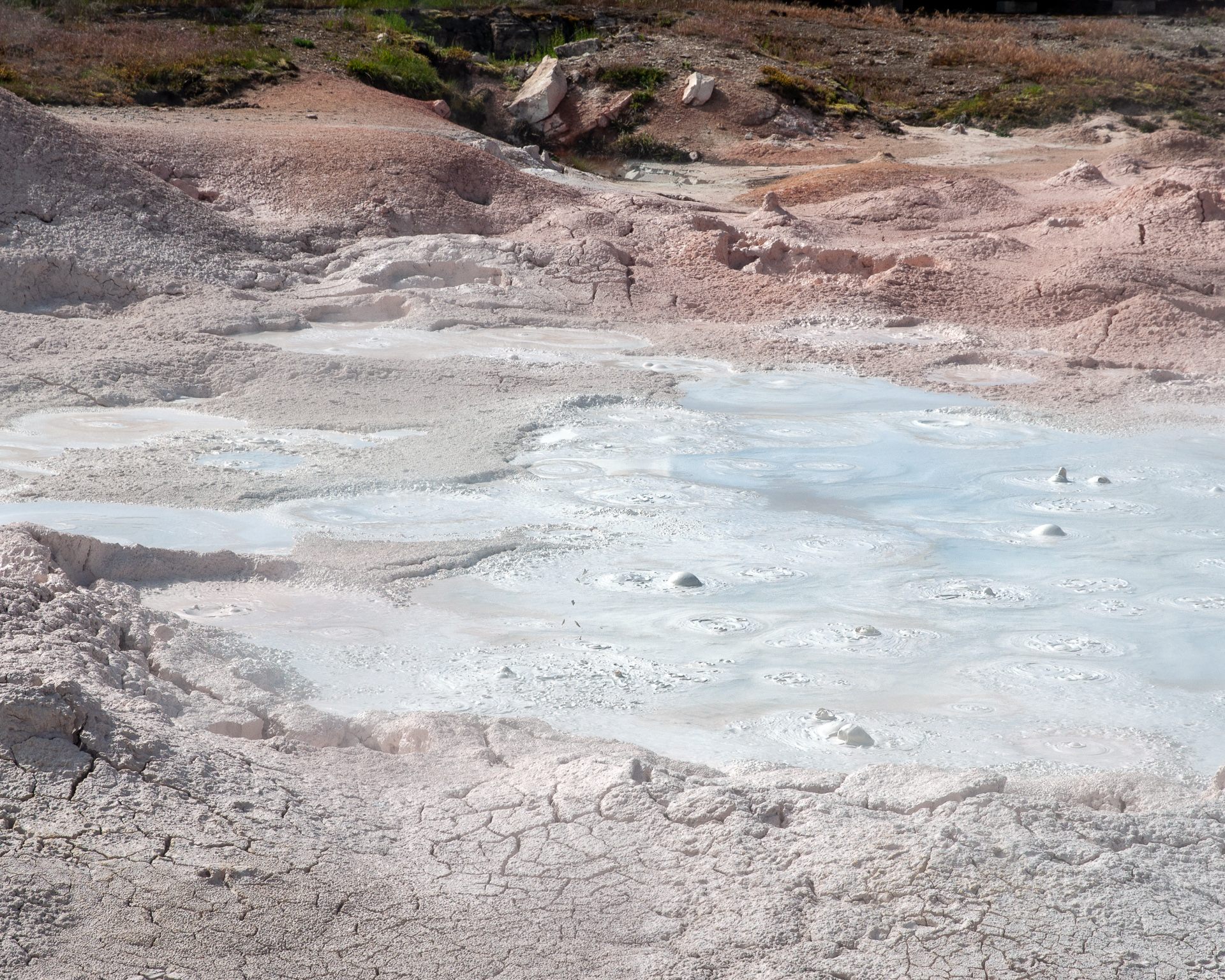 Im Lower Geyser Bassin hielten wir am Fountain Paint Pot, dort sieht man dann die etwas unangenehmere Art der thermalen Aktivität – Schlammlöcher.