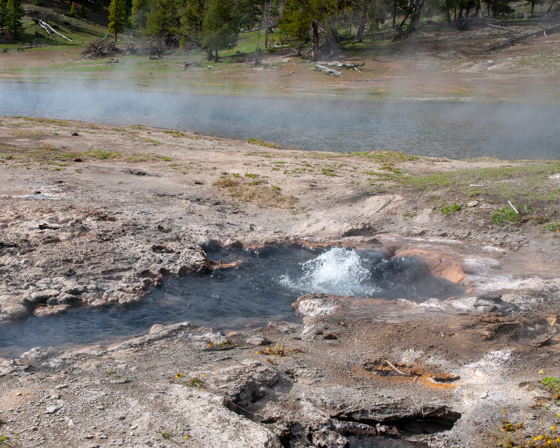 Zuletzt fuhren noch den Firehole Lake Drive entlang, dort gibt es u.a. den Great Fountain Geyser und natürlich den Firehole Lake.