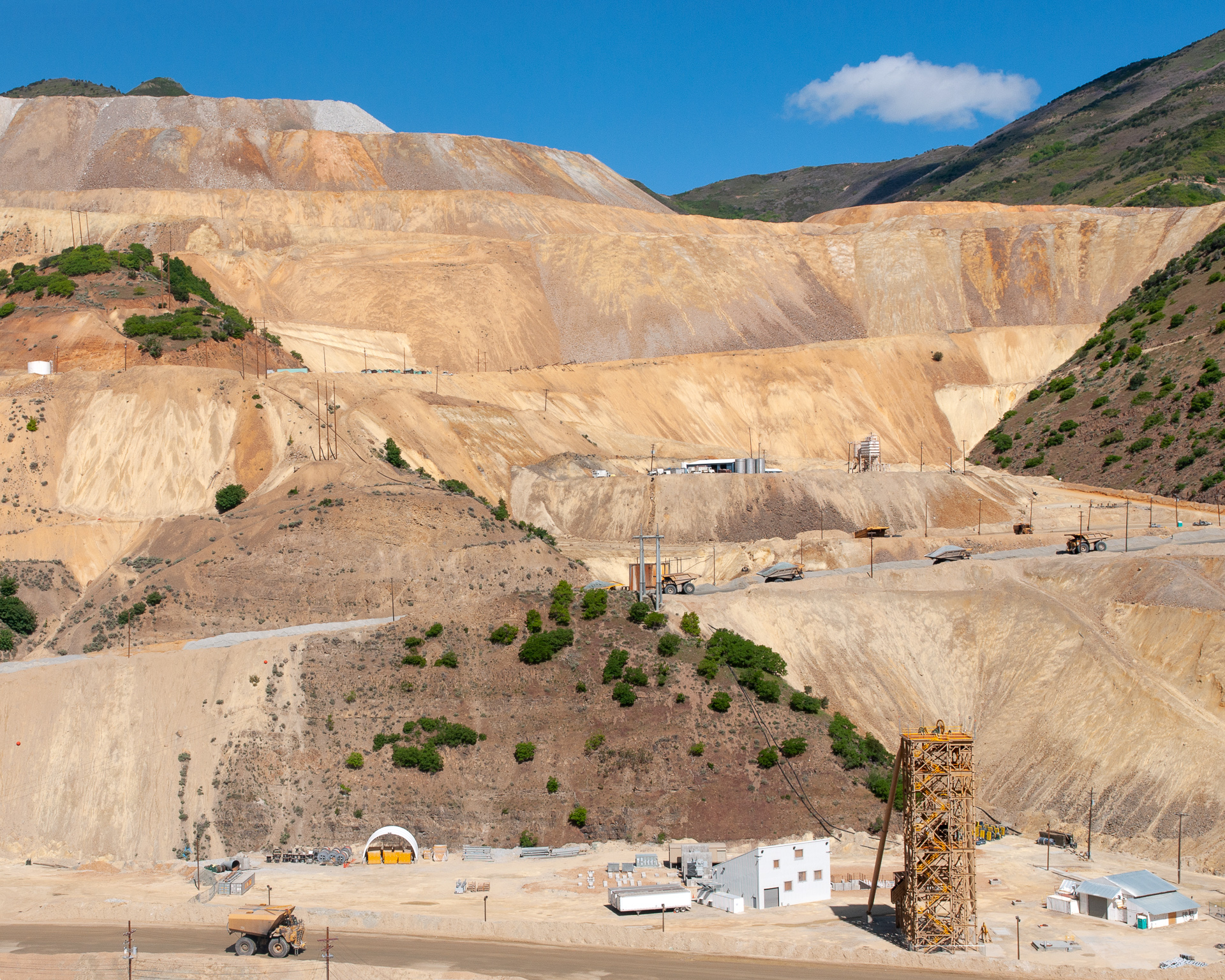 Am Tor bezahlt man 5 Dollar Eintritt und kann dann hoch zum Visitor Center hochfahren. Das liegt am Rande des Tagebaus, eines der grössten Löcher, die die Menschheit gebuddelt hat. Es gibt ein paar Ausstellungsstücke, z.B. einen meterhohen Reifen der LKW, die auf den Fotos wie Spielzeugautos aussehen, und eine Ausstellung über den Kupferbergbau. Auch die Verarbeitung zu reinem Kupfer, die man nicht sehen kann und an mehreren Stellen Richtung Salt Lake City stattfindet, wird beschrieben. Am beeindruckendsten ist natürlich der Blick in die Tagebaugrube.