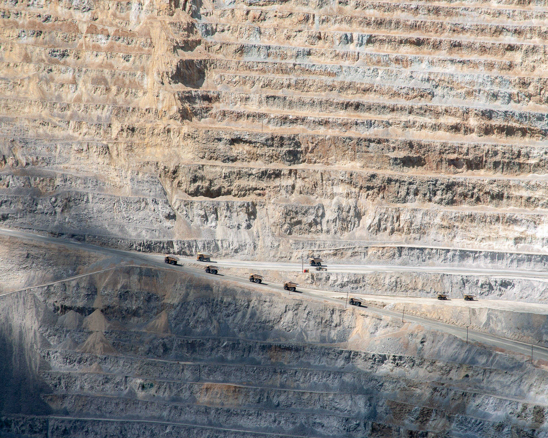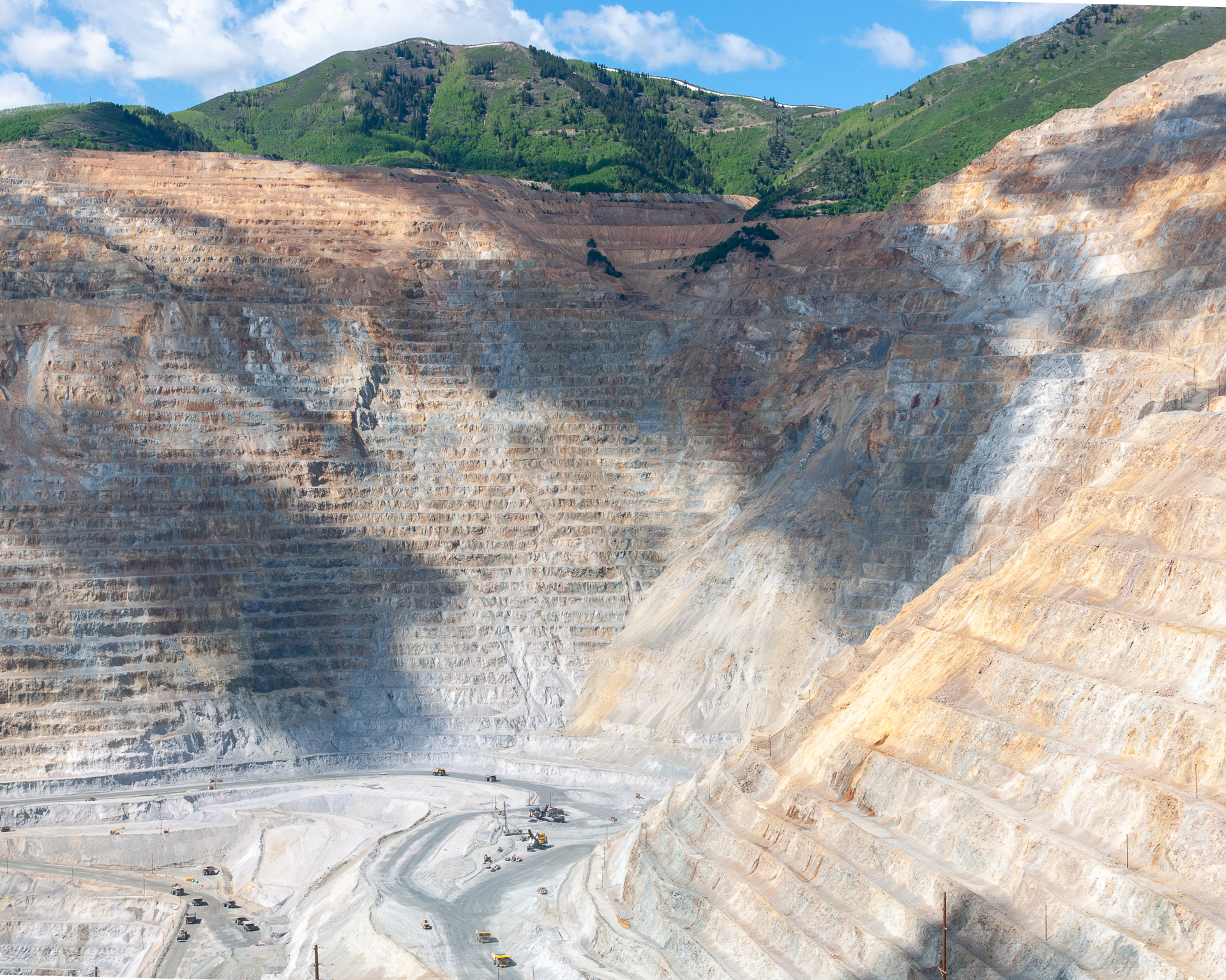 Das nächste Ziel war wieder einige Meilen südlich, die Bingham Canyon Mine, dort wird im Tagebau Kupfer abgebaut. Von der Autobahn abgefahren ging es mit vielen Ampelstops an unendlichen Eigenheimreihen vorbei, Suburbia eben. Dann sah man bereits die Abraumhalten aufleuchten.