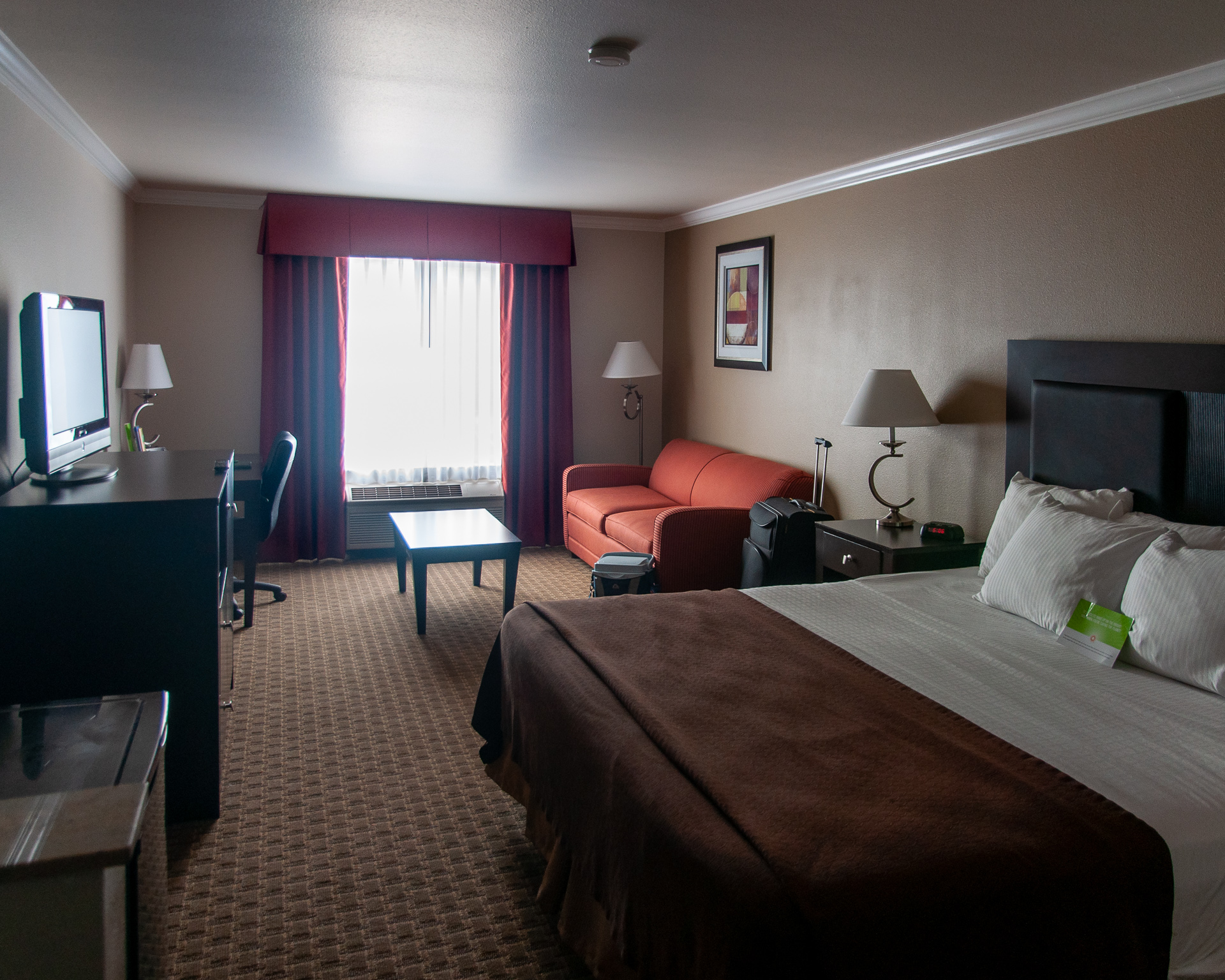 Am Visitor Center, das pünktlich um 17 Uhr bei unserer Ankunft schloss, konnten wir dann noch zwei Busladungen Touristen beim Fotostop erleben. Wir genossen ebenfalls den Ausblick am dortigen Viewpoint und fuhren dann nach Moab zu unserem Hotel, wo wir mal wieder um 18 Uhr ankamen. Es war das La Quinta nahe am südlichen Ortsende. Wiederum ein sehr gutes Hotel, aber auch preislich in der Oberklasse. Moab ist eben ein beliebter Touristenort und nicht billig.