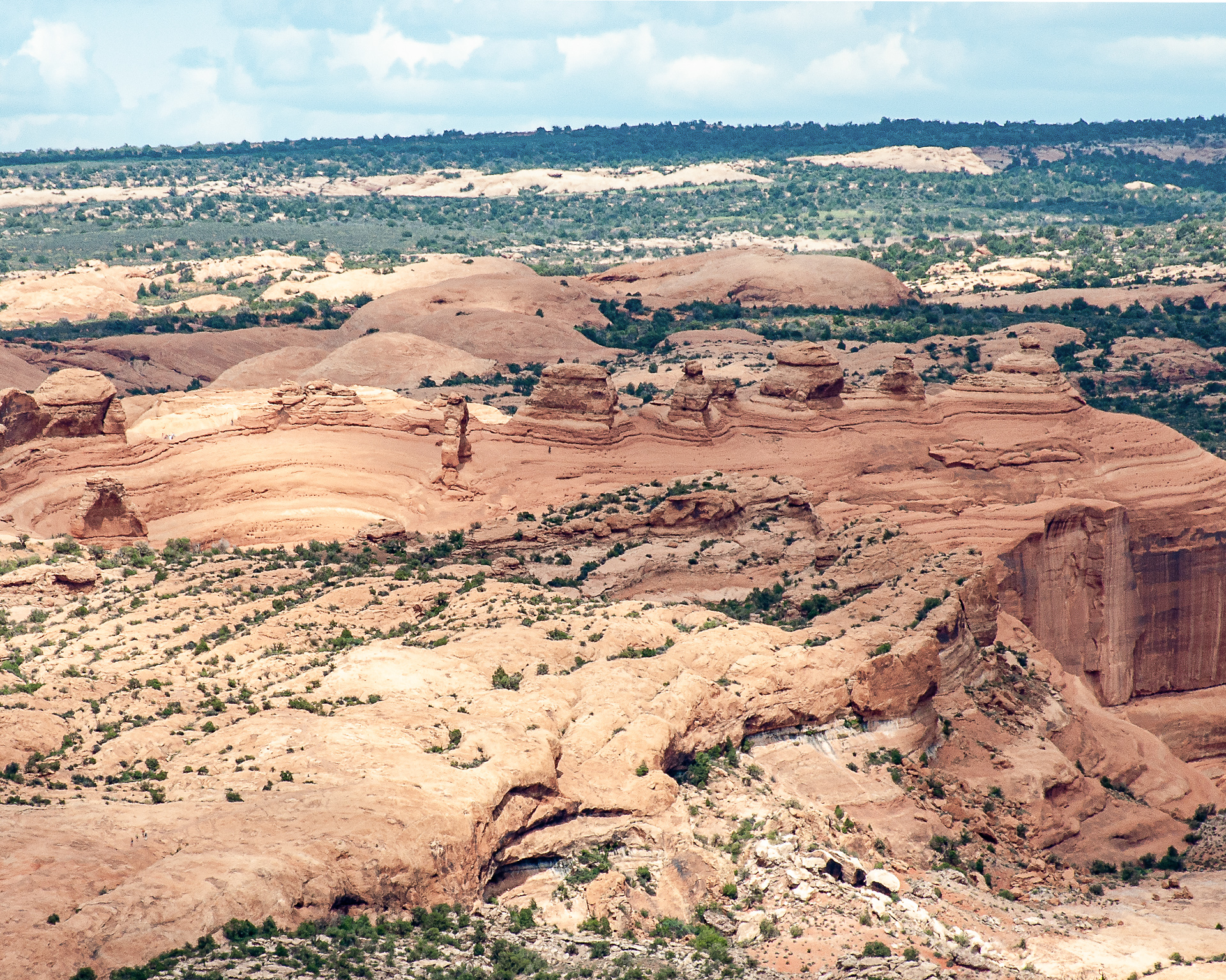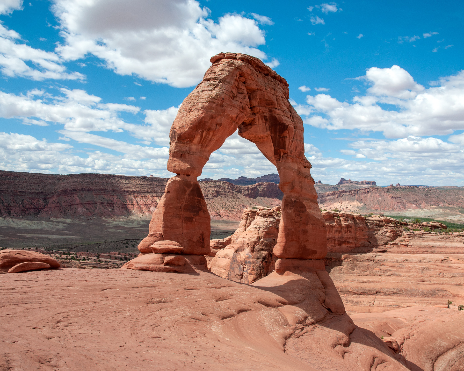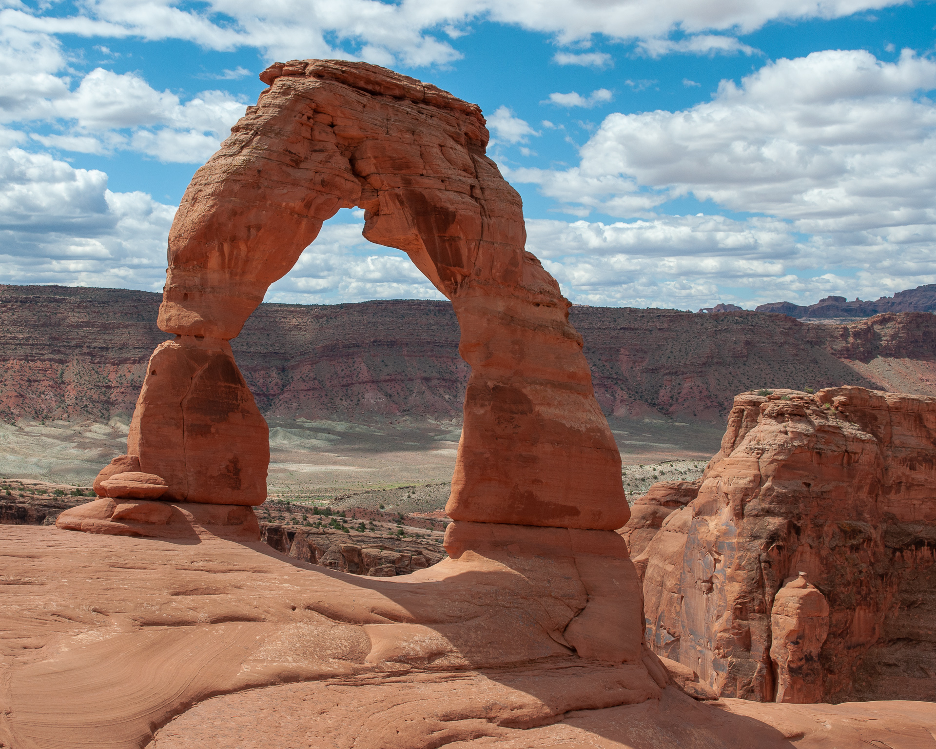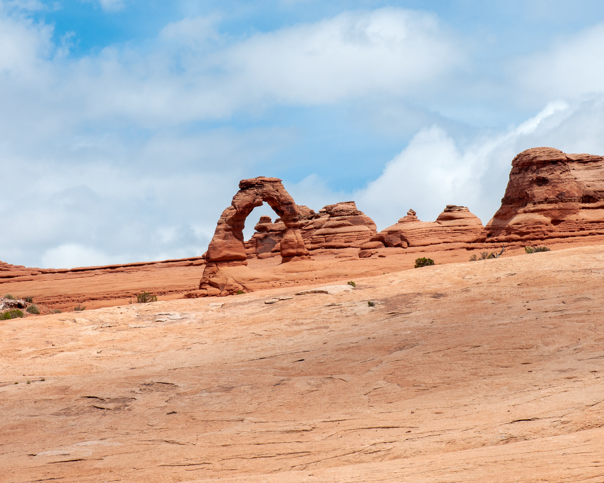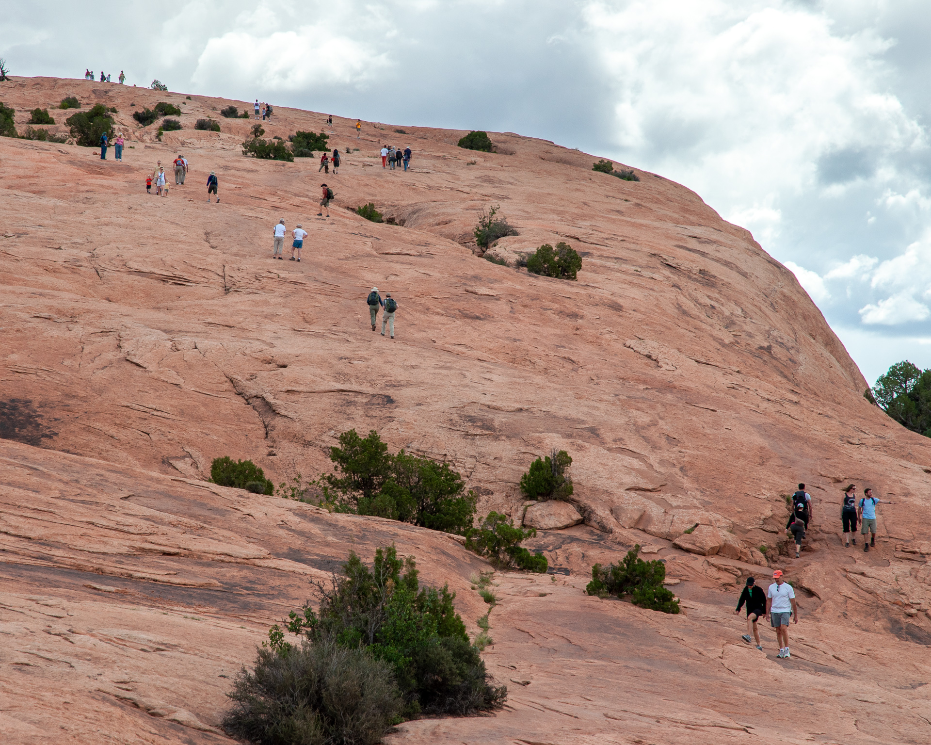 Der Weg ist technisch nicht sonderlich schwierig, das größte Problem ist wohl normalerweise die Hitze. Heute hatten wir aber eine geschlossene Wolkendecke, daher dauerte unser Aufstieg zum Delicate Arch gerade mal 30 Minuten.