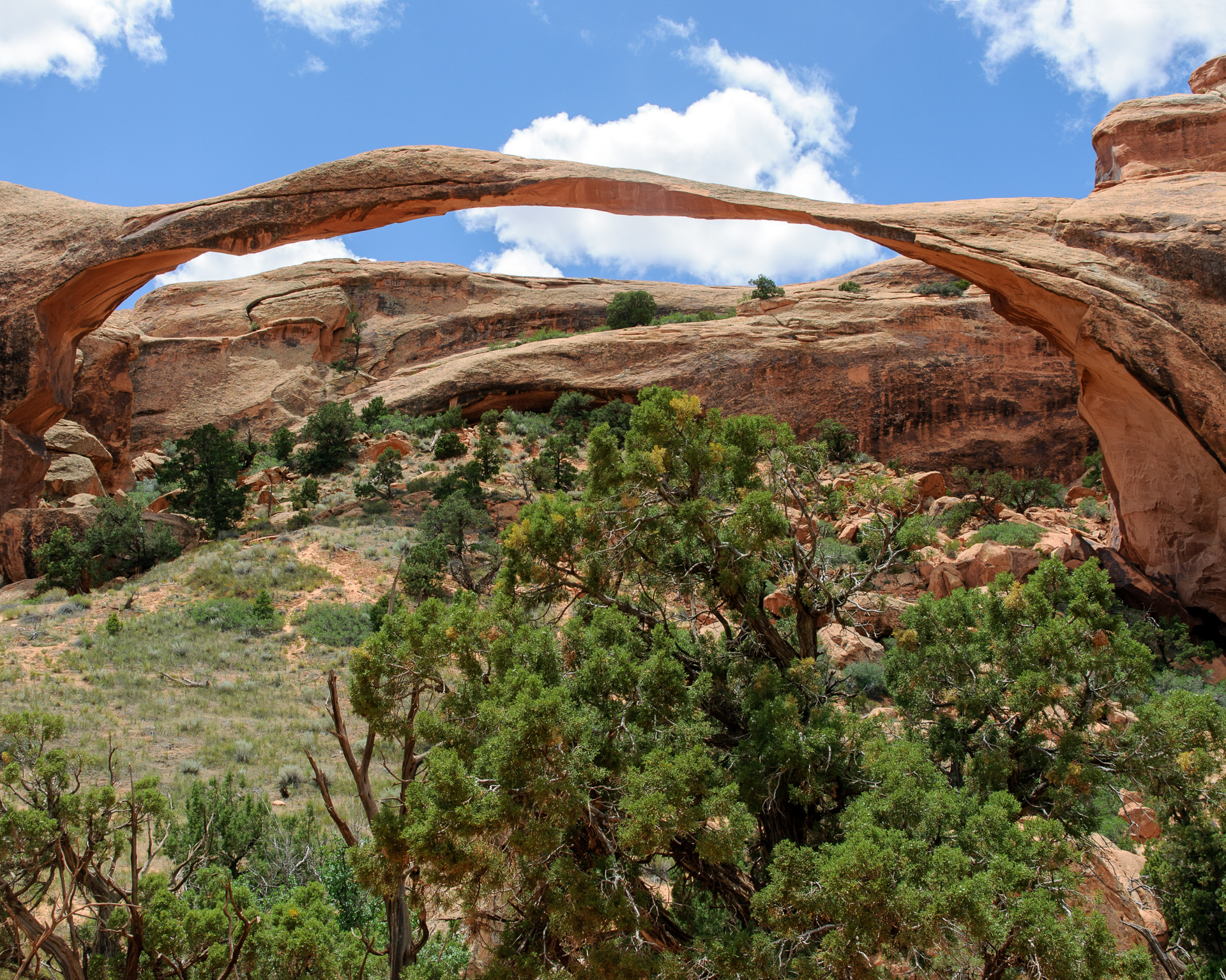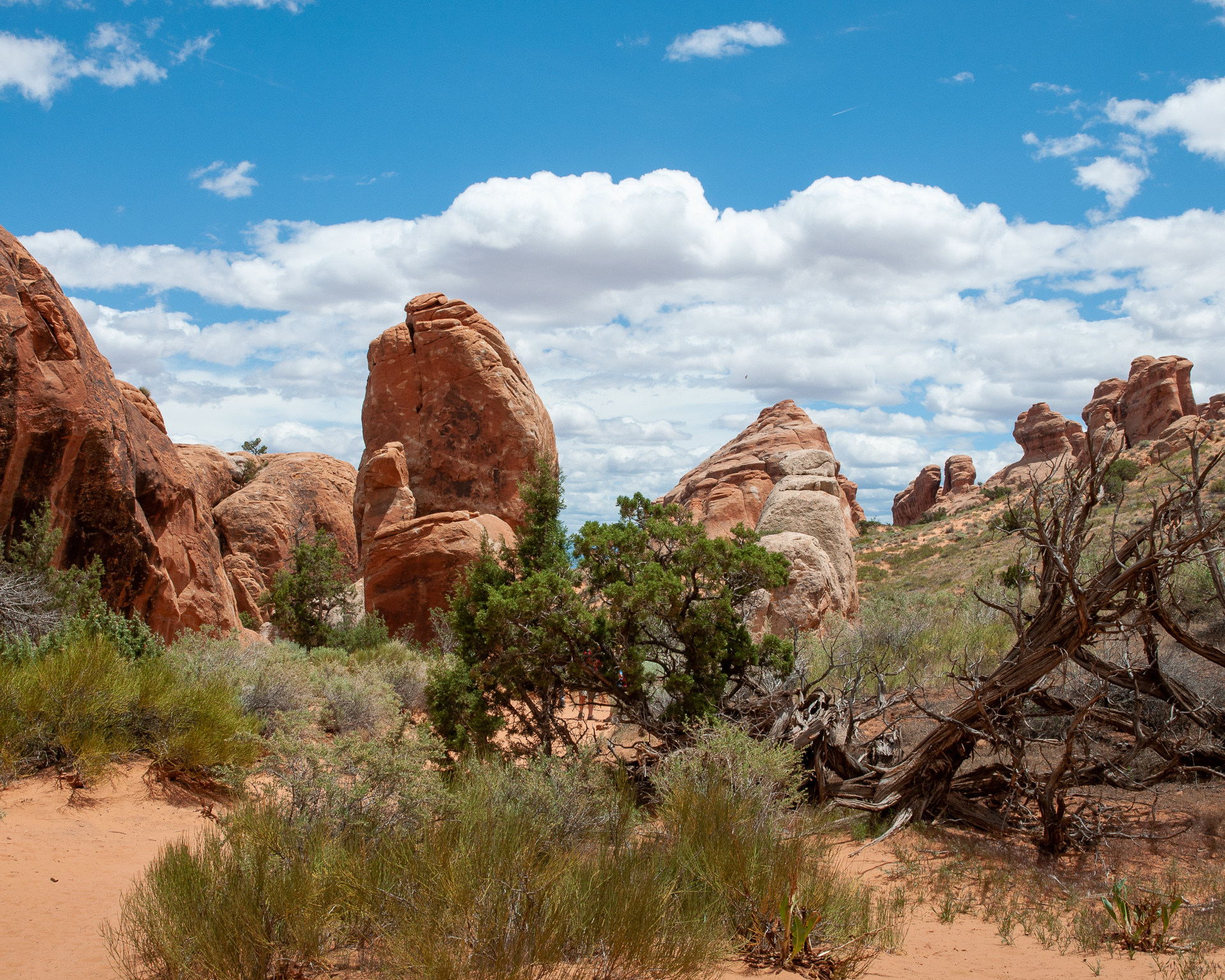 Nächster Punkt war ‚Devils Garden‘, wir wollten über denLandscape Arch bis zum Double O Arch. Hier gab es jetzt nur noch illegale Parkplätze. Und bis zum Double O Arch kamen wir auch nicht, am ehemaligen Wall Arch gaben wir auf, einerseits sah der Aufstieg auf den Felsen ziemlich schwer aus, andererseits hatten wir nur eine angebrochene Wasserflasche dabei. Wie sich die Zeiten ändern, von meinem Besuch in 1992 her hatte ich überhaupt keine Erinnerungen an irgendwelche Schwierigkeiten auf dem Weg.