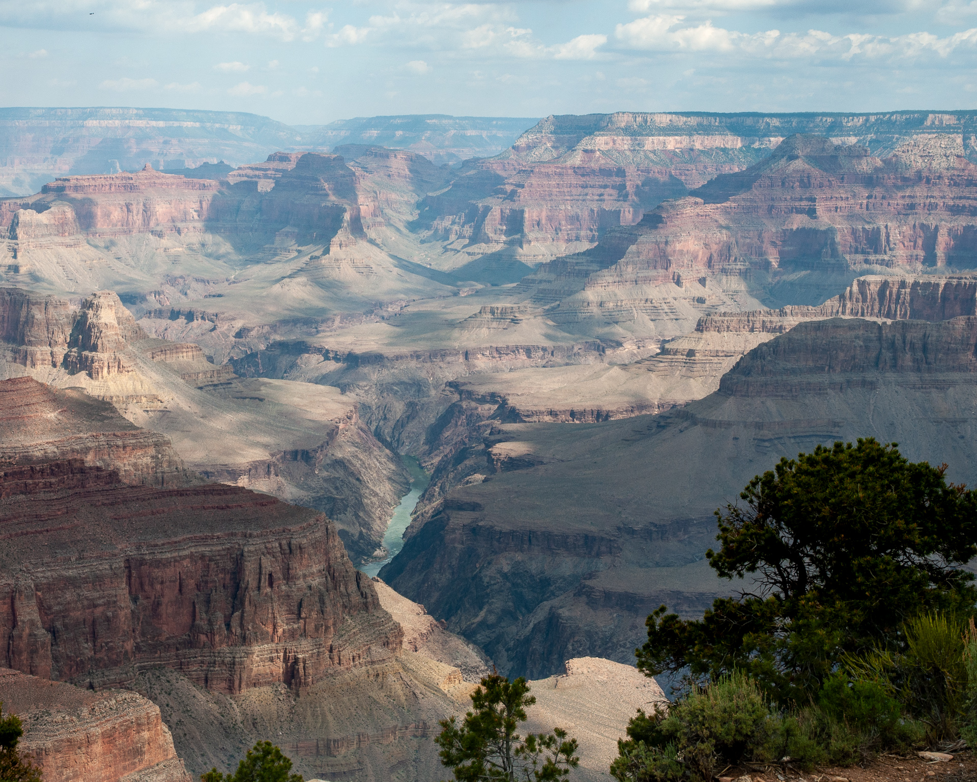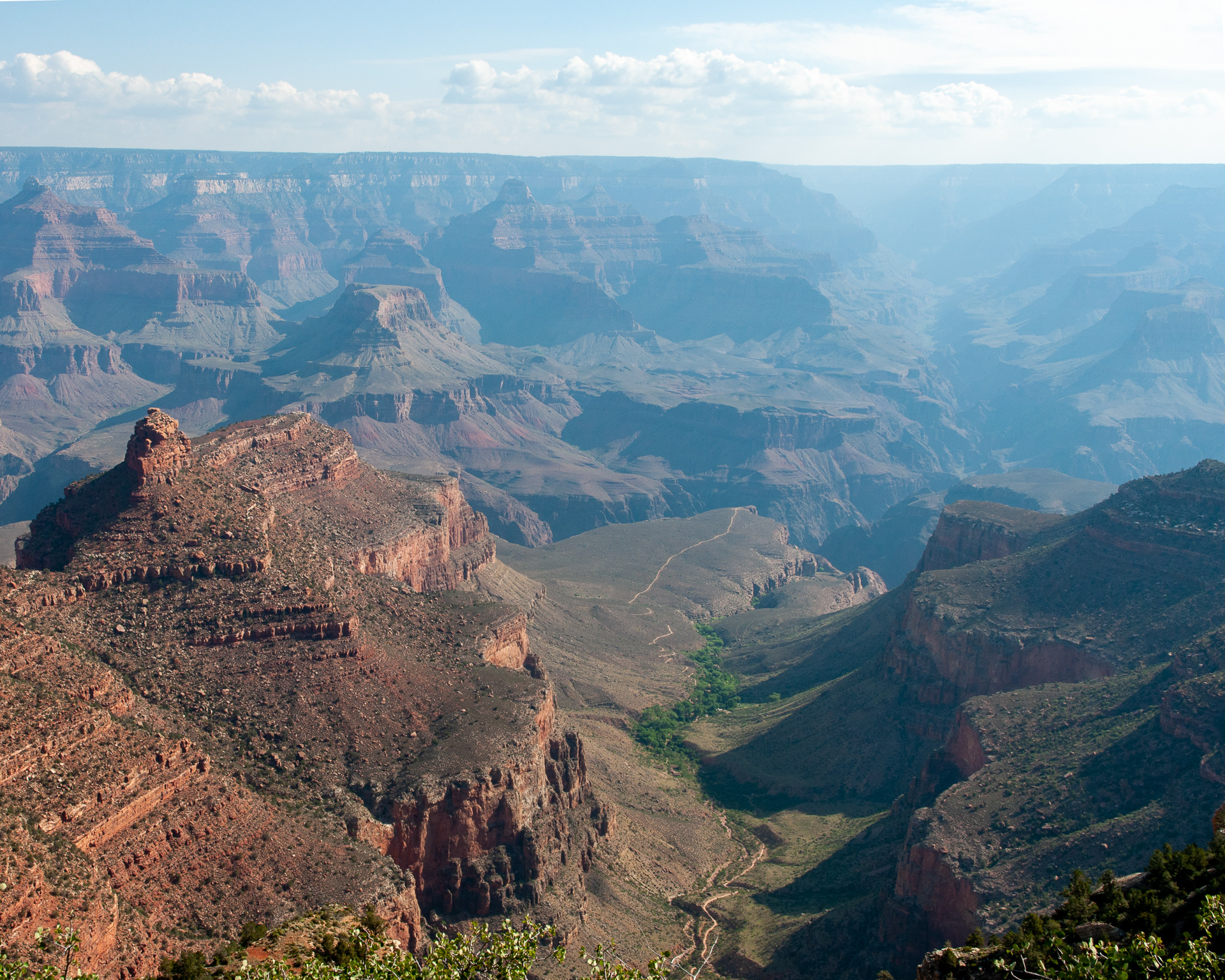 Von da mussten wir nochmal den Shuttlebus zurück zum Grand Canyon Village nehmen, diesmal war es etwas erträglicher als auf der Hinfahrt. An der Bright Angel Lodge gab es eine kurze Erfrischungspause, und dann ging es per Auto nach Süden bis Tusayan.