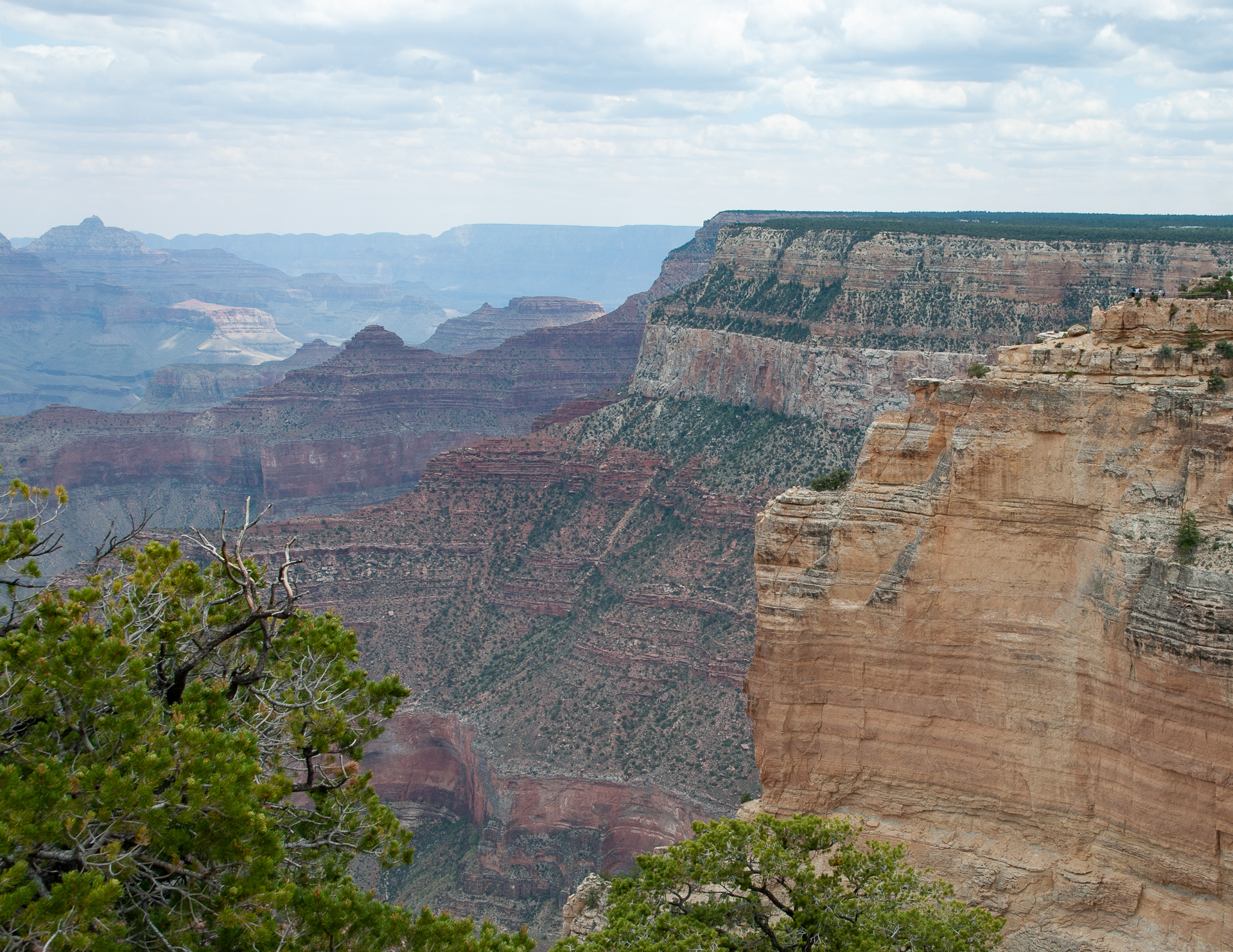 Wir hielten dies tatsächlich bis zum Endpunkt, Hermits Rest, durch, holten nach dem Aussteigen erstmal tief Luft und genossen die Stille. Danach liefen wir dann auf dem mehr oder weniger gut ausgebauten Wanderweg neben der Straße zurück bis zum Powell Point.