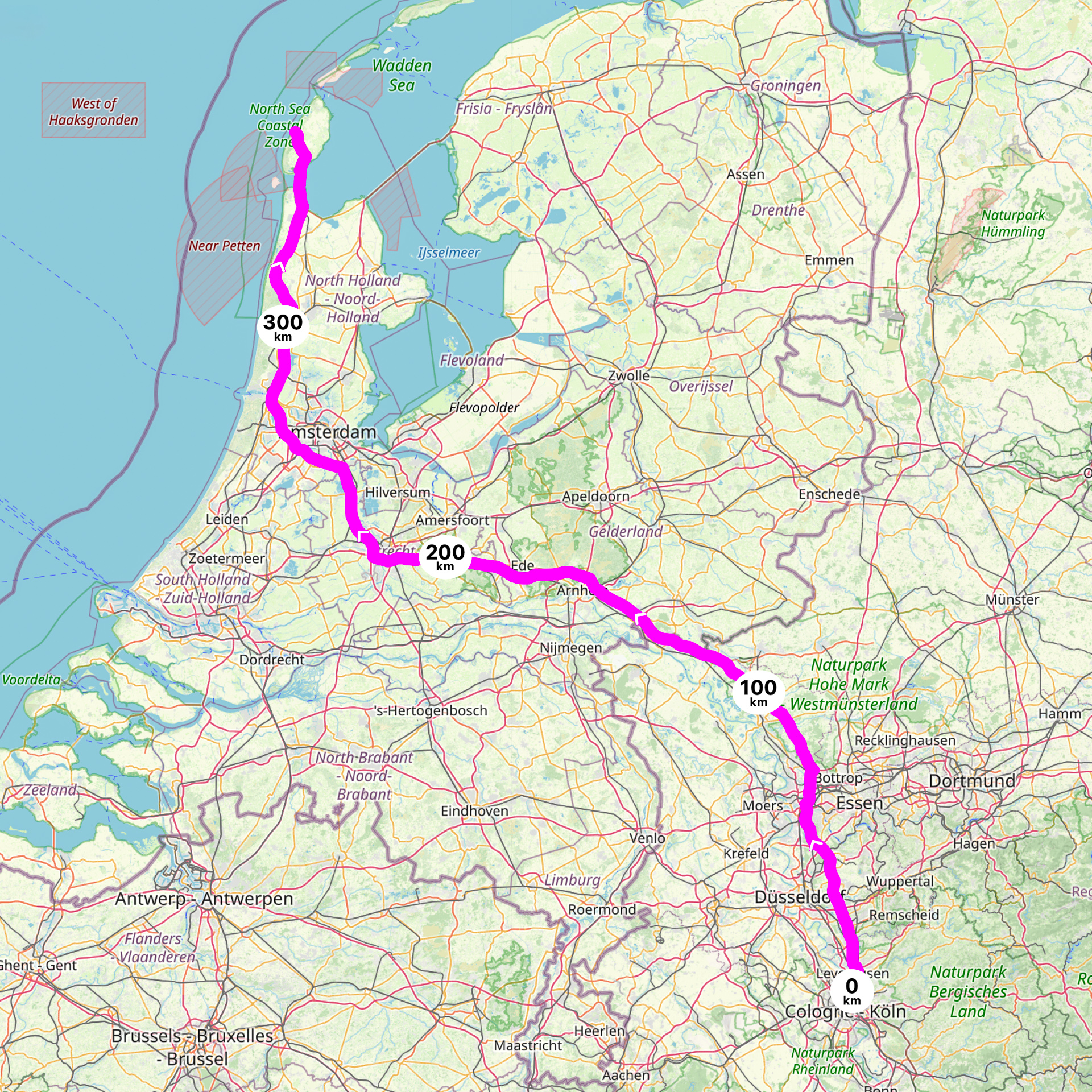 Nach Texel sind wir mit dem Auto gefahren, und wie bei der letzten Fahrt in die Niederlande nach Ijmuiden habe ich die Fahrzeit unterschätzt. Zum Einen sind wir nicht ganz pünktlich los gekommen – schon 10:30 Uhr war es bei der Abfahrt in Köln – und dann ist die Strecke länger als gedacht. Es sind noch viele Kilometer von Amsterdam bis Den Helder, und die Fährüberfahrt braucht auch ihre Zeit. Staus auf der Autobahn vor allem im Bereich Arnheim waren auch nicht hilfreich.