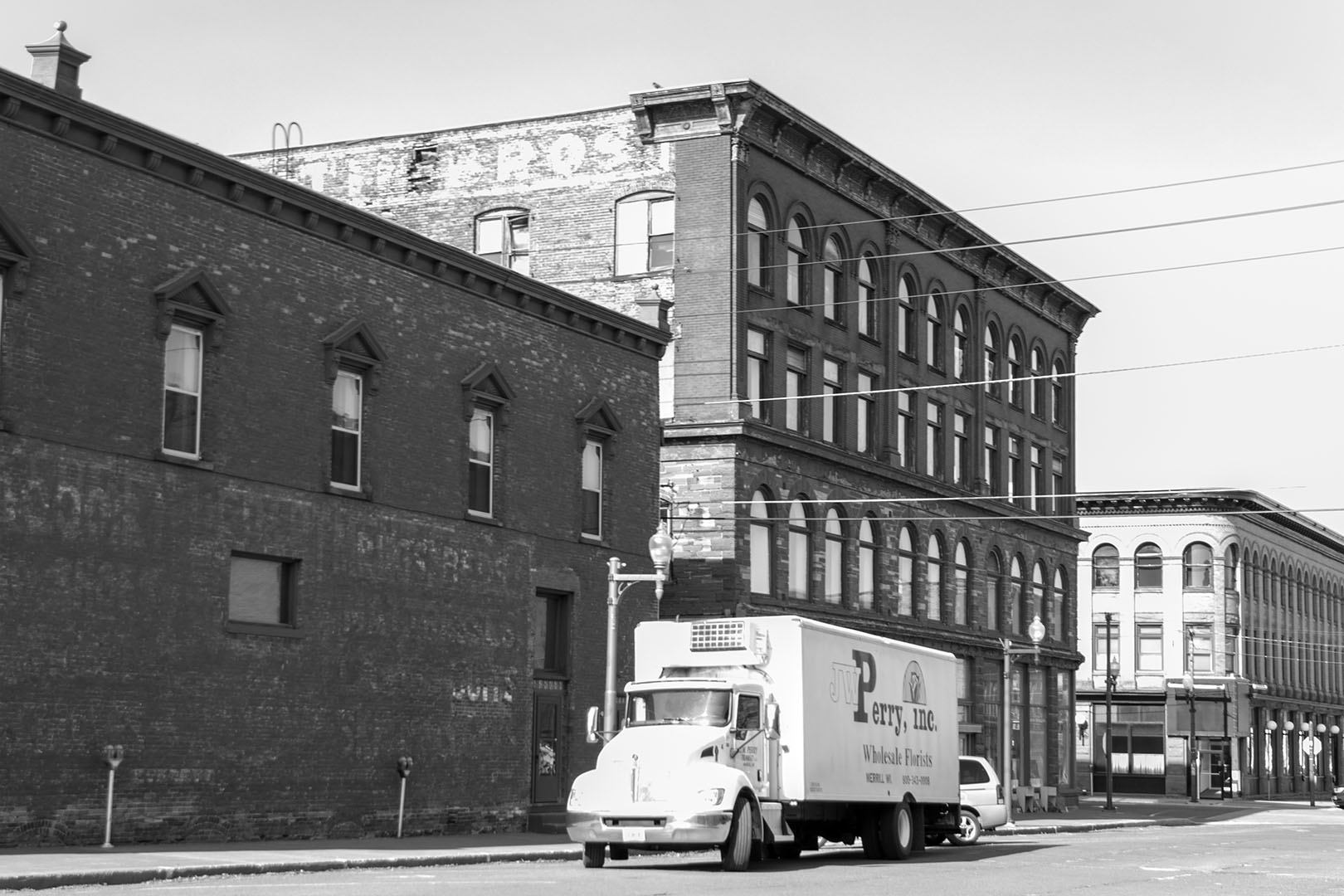 Zwei Fotos vom Weg dahin, von der Fahrt duch Hancock auf der anderen Seite des Kanals.