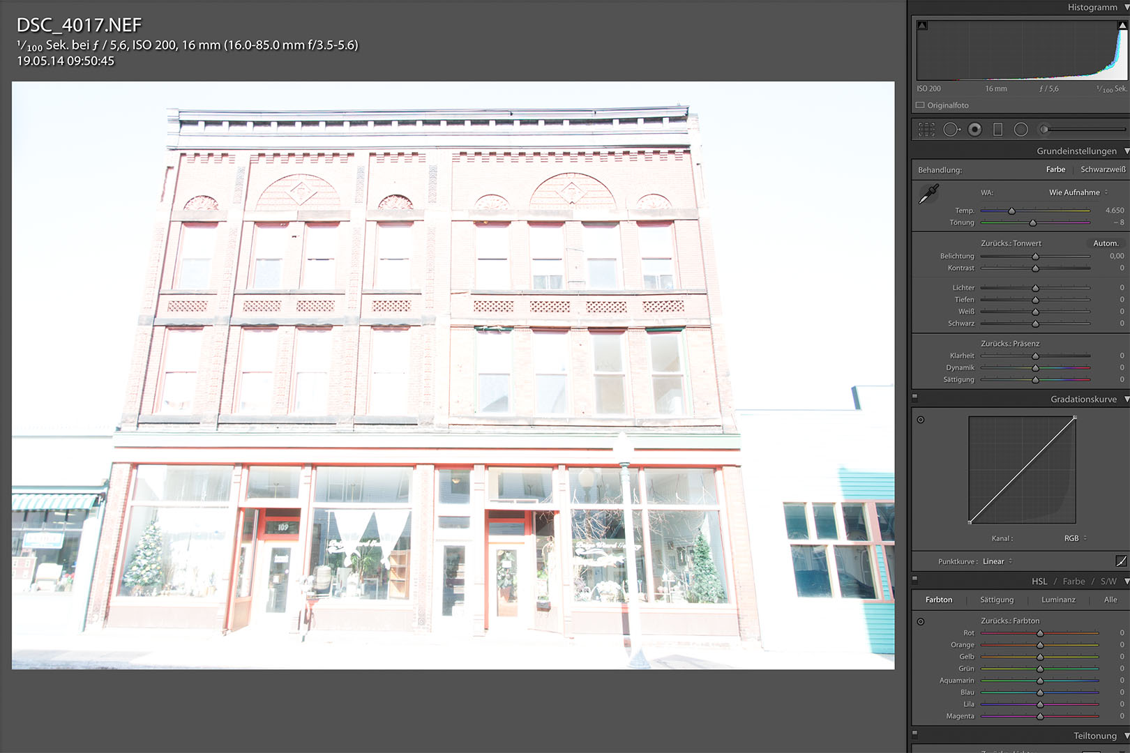 Als Exkurs hier mal das Original eines meiner Fotos von einem Geschäftshaus in Calumet. Total überbelichtet. Bei den Kamera Fotos bleibt es daher erstmal bei schwarz-weiss.