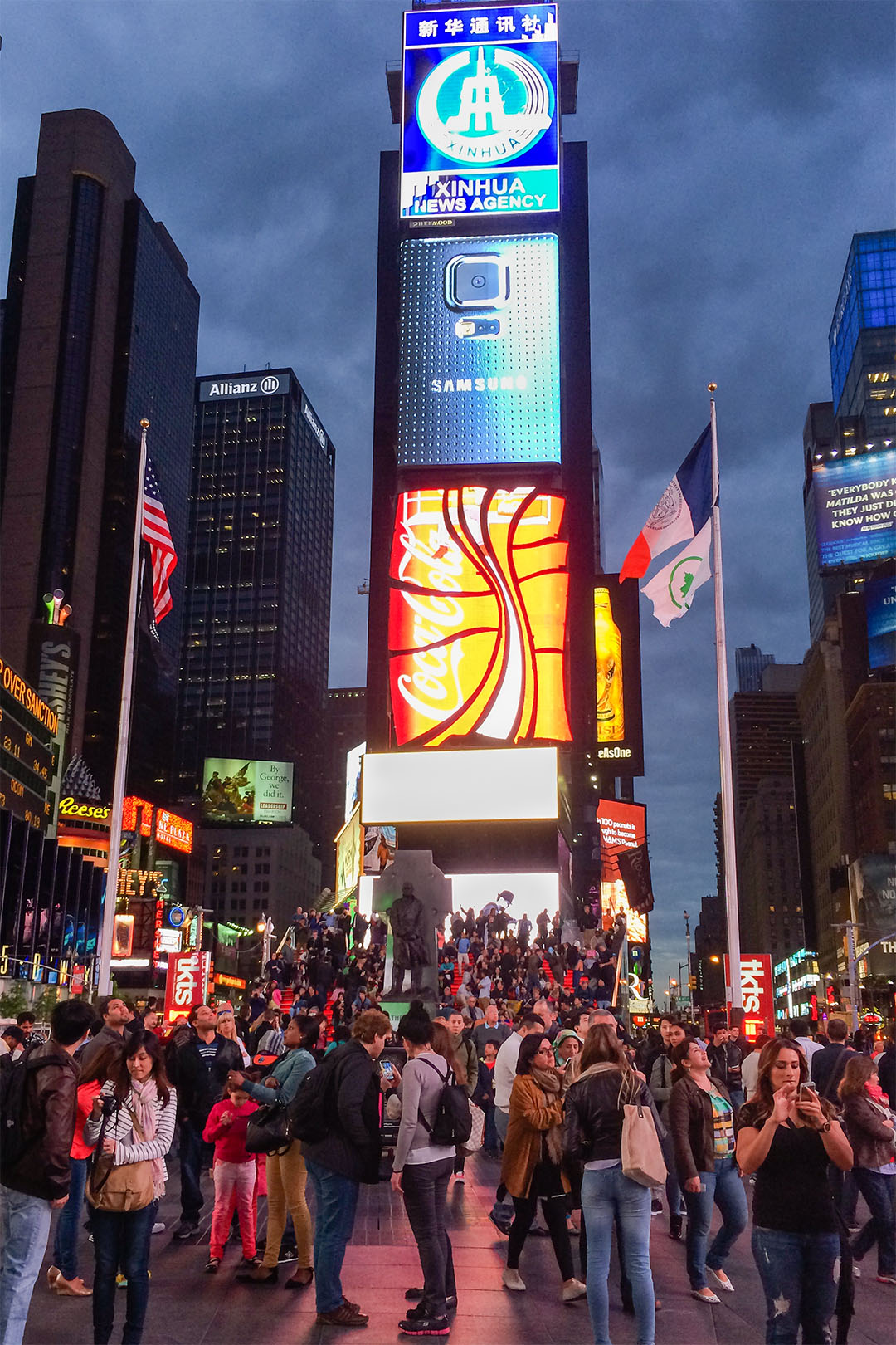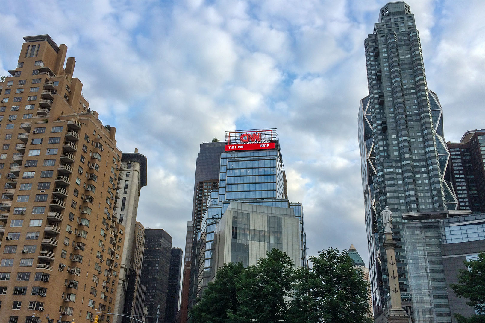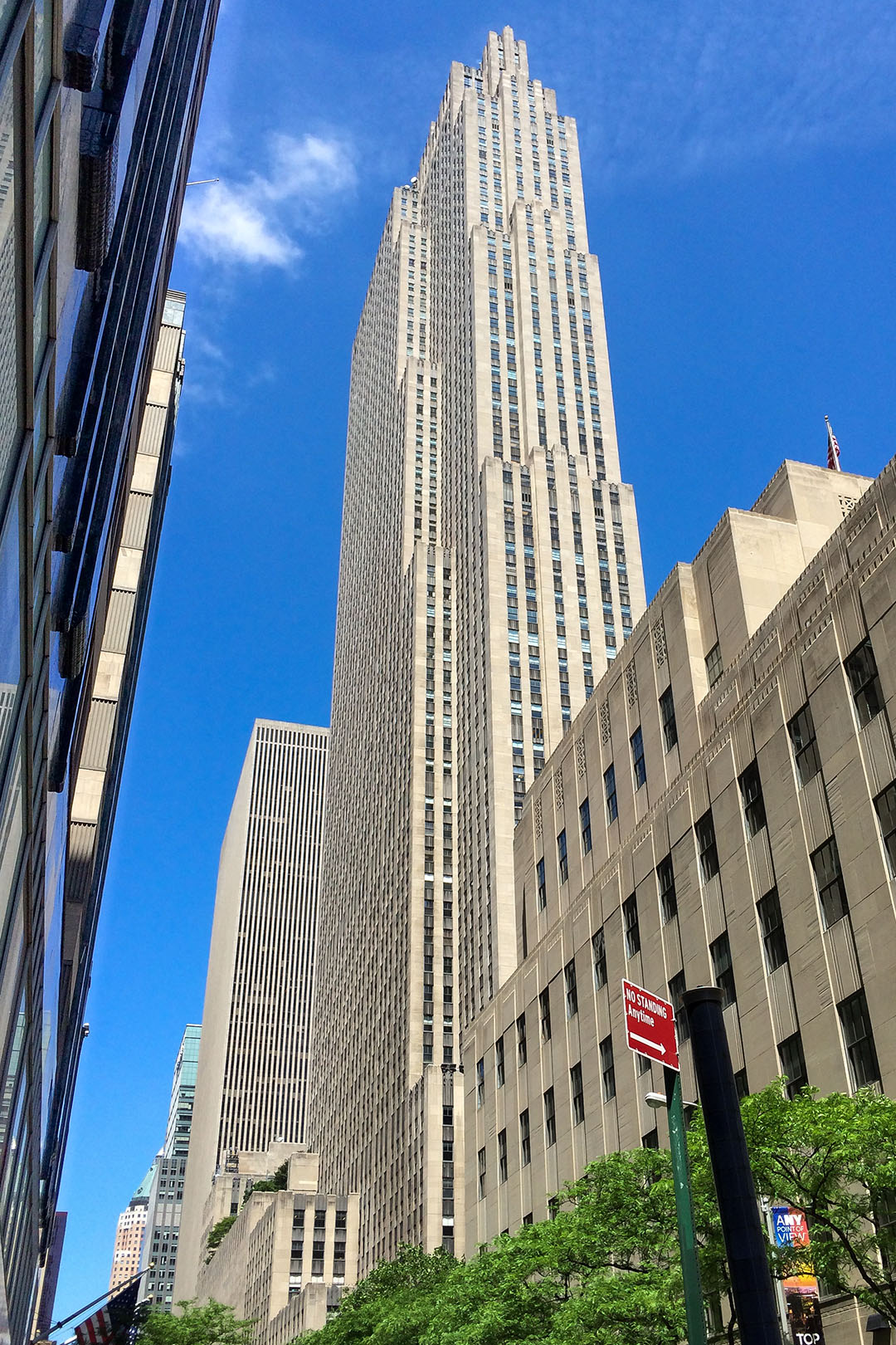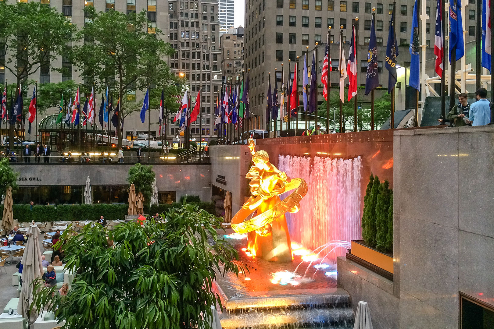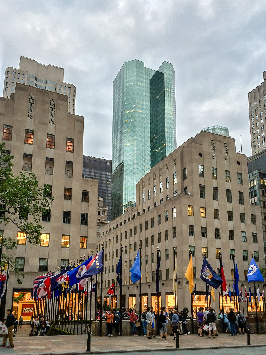 Nach einer Pause machten wir uns zum Sonnenuntergang nochmal zu einem Rundgang durch Midtown Manhattan auf. Ab dem Hotel nach Norden bis zum Columbus Circle, dann entlang des Südendes des Central Park bis zur 5th Avenue und dann südwärts. Vorbei an Rockefeller Center und Times Square zur 8th Avenue und zurück zum Hotel: