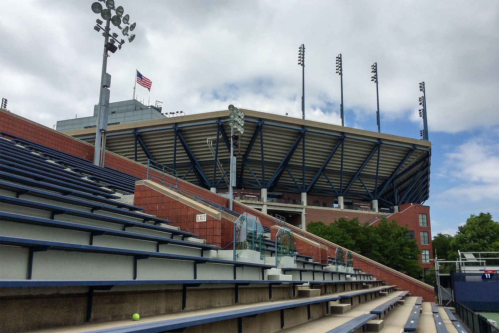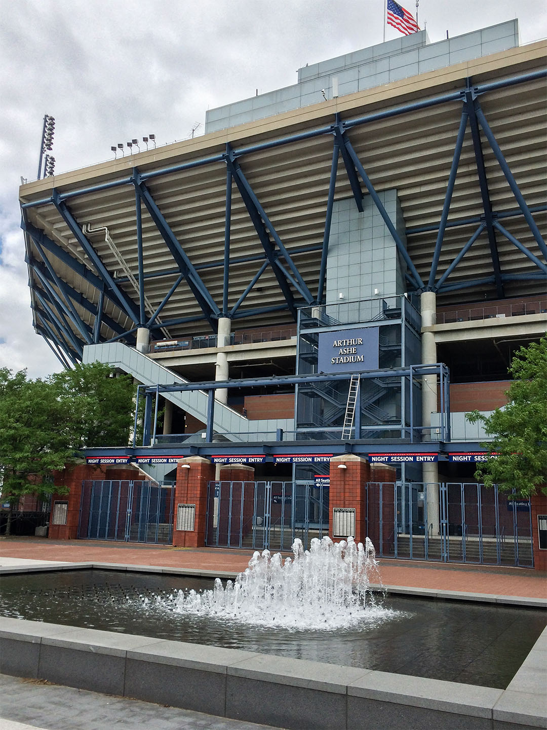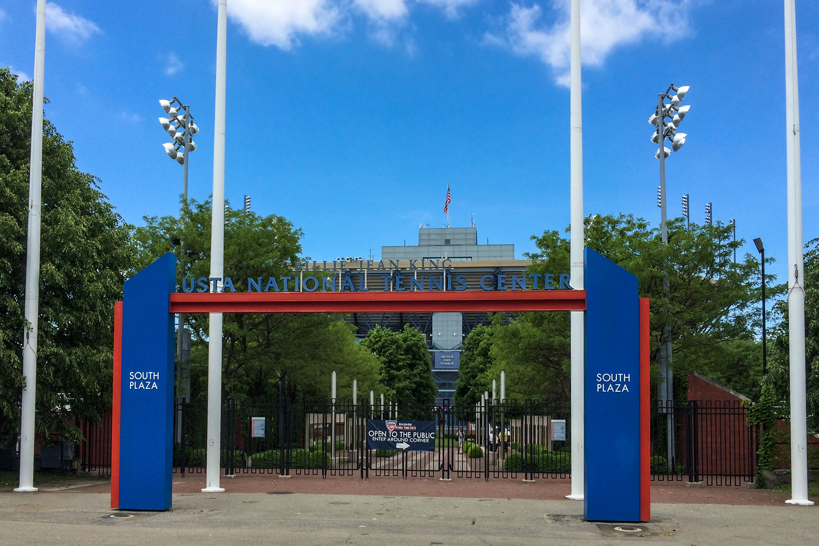 Im Flushing Meadows Park liegt auch das seit 2006 so genannte „USTA Billie Jean King National Tennis Center“, bekannt als der Austragungsort des „US Open“ Tennisturniers. Am Imbiss dort gab es einen Hamburger zum Mittag, und dann sind wir auch mal durch das Areal gestreift.