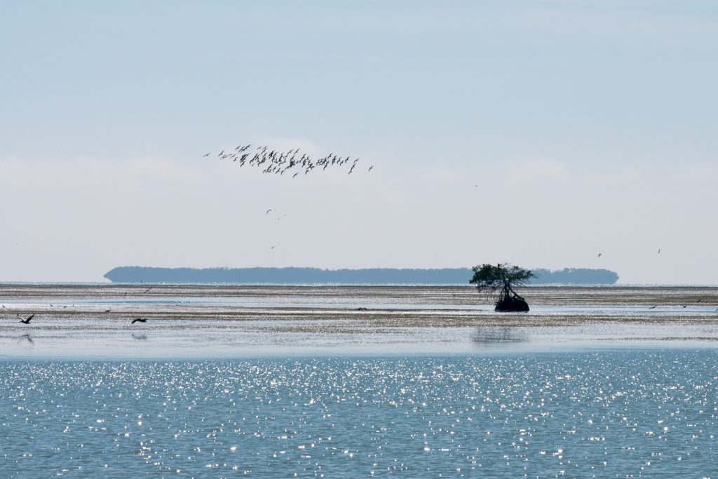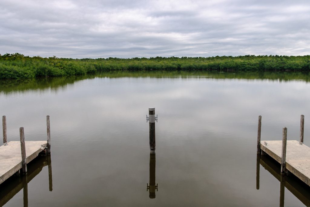 Nach dem Anhinga Trail ging es weiter bis Flamingo ganz im Süden. Infrastruktur gibt es dort nicht mehr viel, Visitor Center, Restaurant und Übernachtungsmöglichkeiten sind seit dem Hurricane von 2005 geschlossen, einzig die Marina ist noch offen. Blöderweise kamen wir Punkt 12:30 Uhr an und sahen eine Bootstour gerade die Marina verlassen. Die nächste war erst um 14:00 Uhr, und damit ein bisschen spät für uns. Es blieb nichts weiter übrig, als die paradiesische Landschaft vom Festland aus zu bewundern.