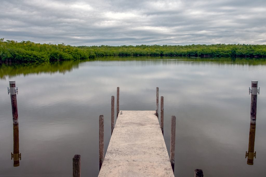 Während es in Flamingo strahlenden Sonnenschein gab, hielten sich die Wolken weiter nördlich recht zäh, wie man hier schon wieder sieht. Beim nächsten Stop am Westlake war es dann komplett bewölkt. Die Stimmung am Bootsanleger bewog mich dann, es mal mit künstlerischen Fotos zu versuchen: