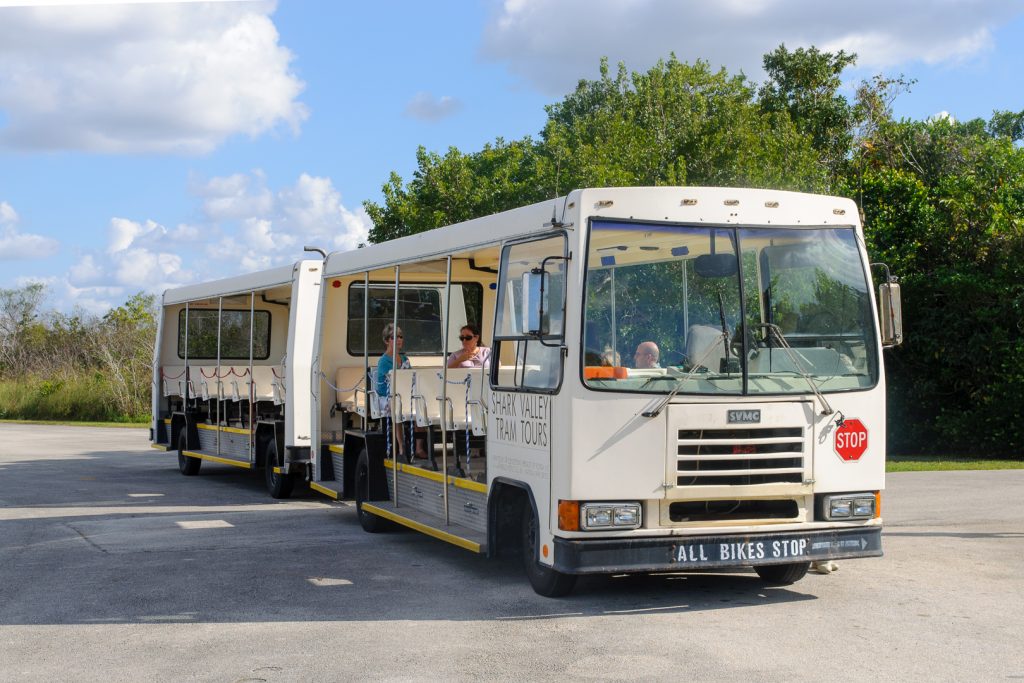 Die ganzen Tiere sieht man übrigens auf einem nur wenige 100 Meter langen Spaziergang in der Nähe der Busabfahrt. Jetzt war es dann soweit, und die Rundfahrt ging los. Der Fahrer und Guide erzählte recht kurzweilig über die Everglades, die Geschichte und die Tiere die wir sahen. So sieht der Bus übrigens aus, fotografiert während der Pause am Aussichtsturm: