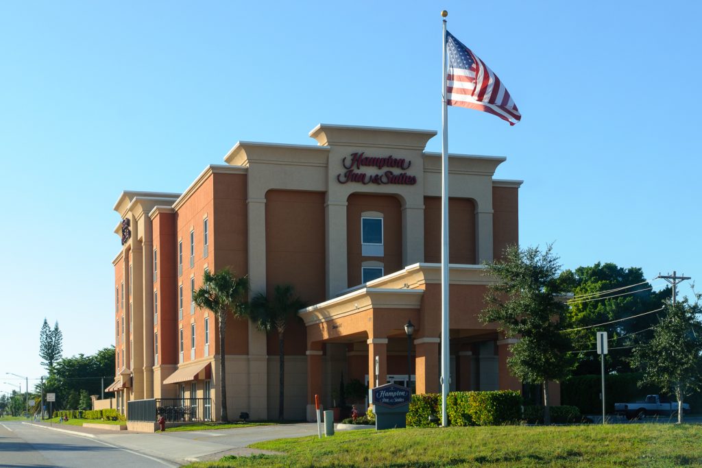 Nach Ende der Busfahrt ging es noch viele Meilen weiter und 2 Dollar Maut über die Brücken waren zu zahlen, und dann kamen wir mitten in der Rush Hour in Cape Coral an bei unserem Hampton Inn: