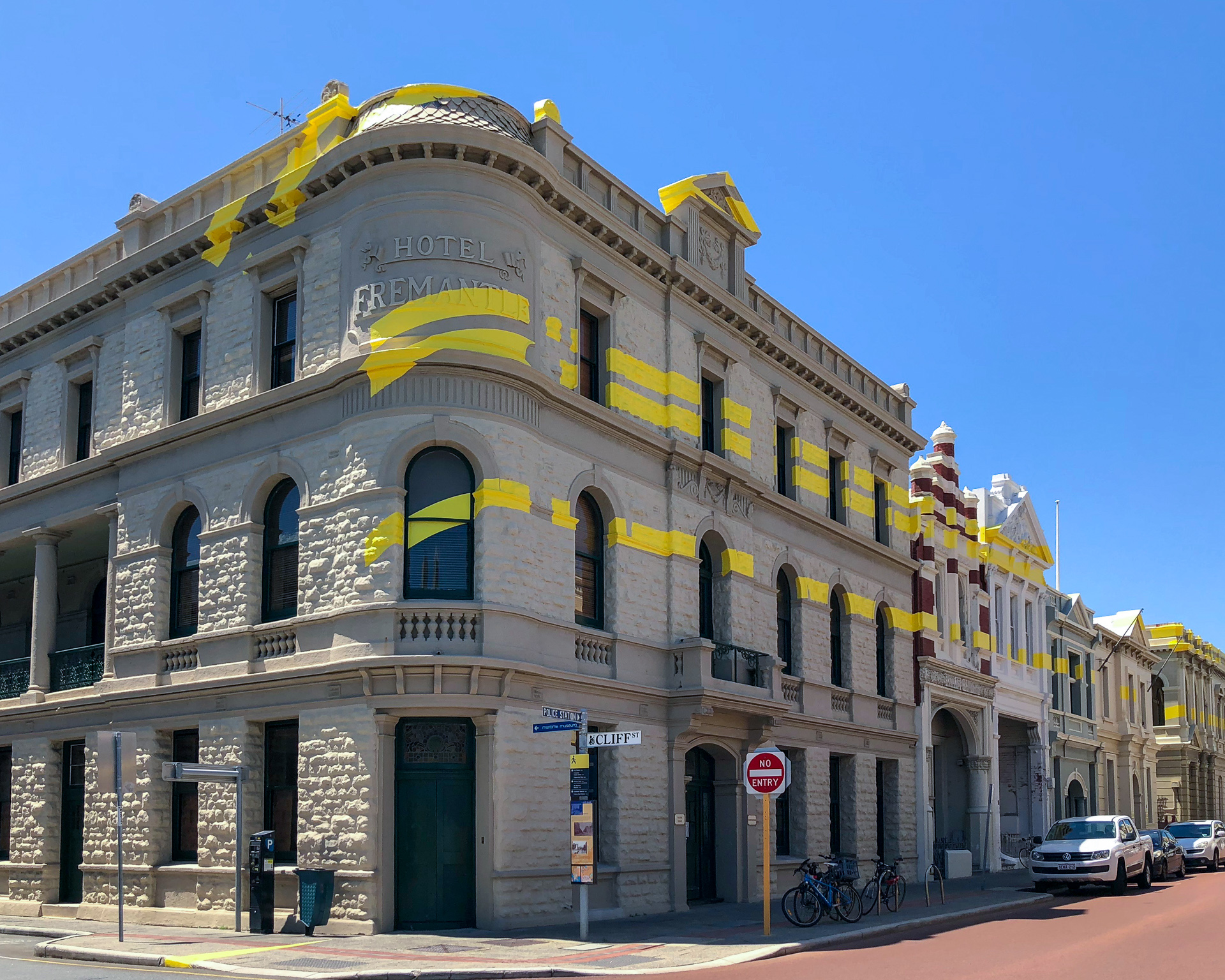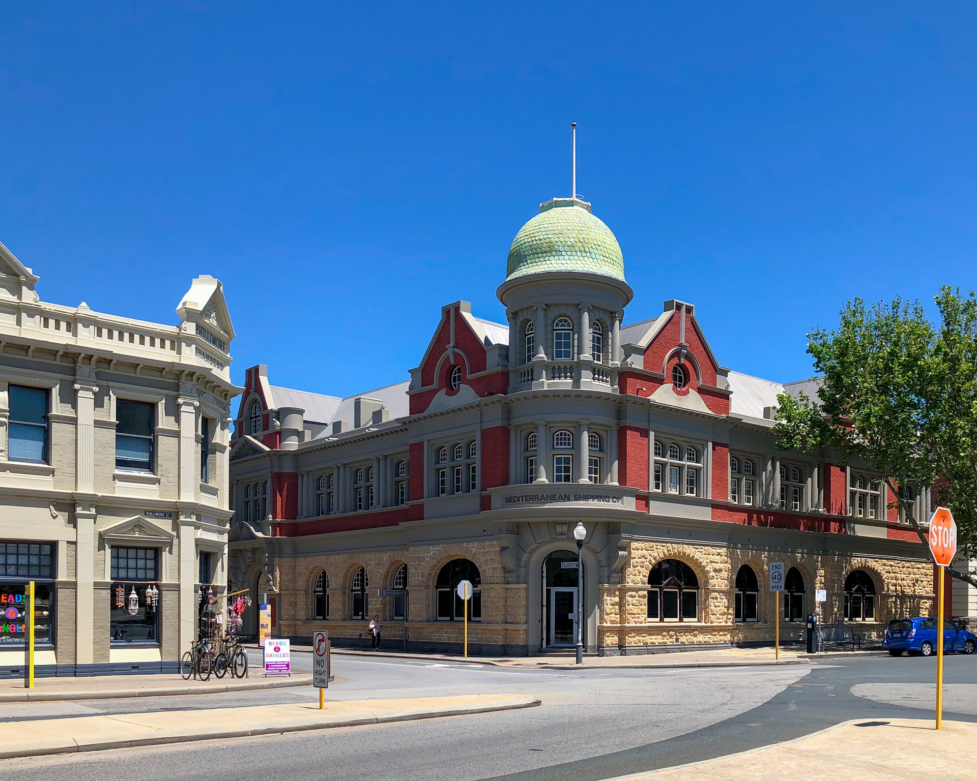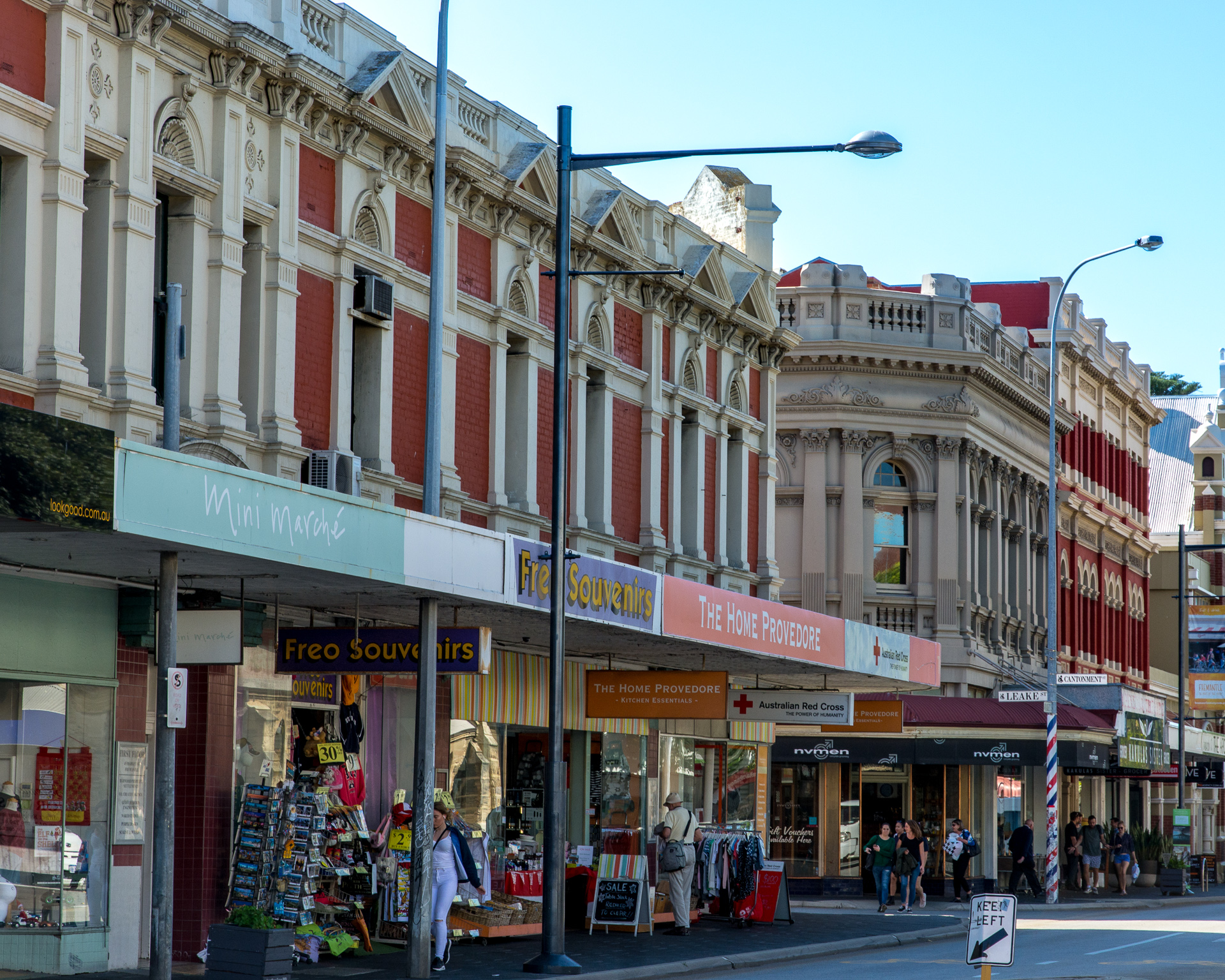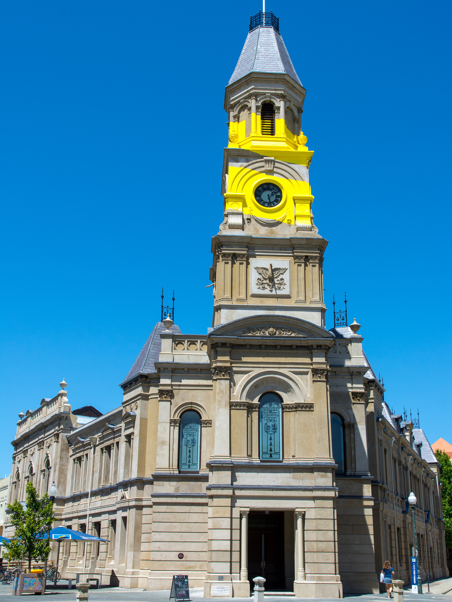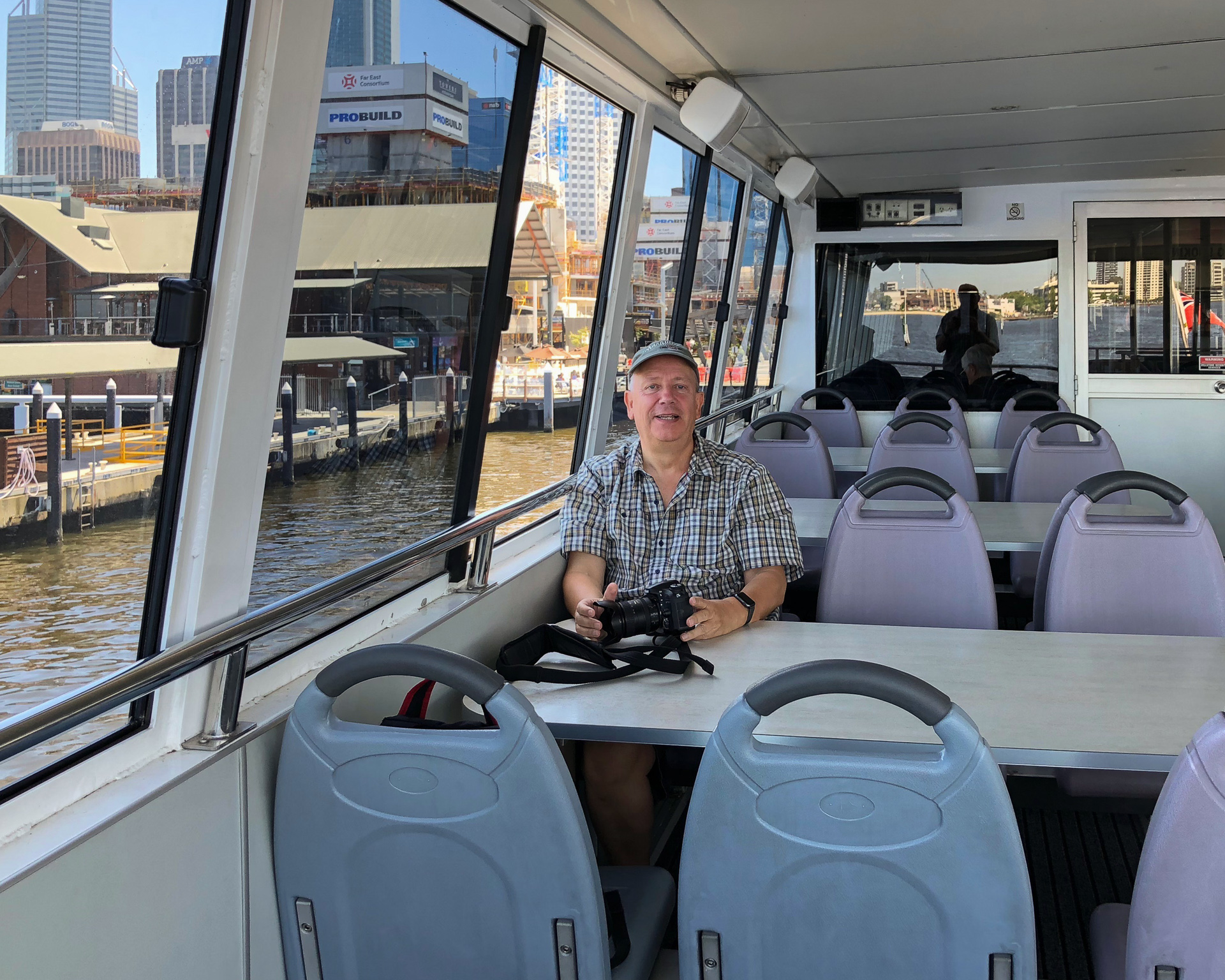 Auf dem Schiff der Captain Cook Cruises vor der AbfahrtAuf dem Schiff der Captain Cook Cruises vor der AbfahrtAuf dem Swan RiverEin anderes Boot von Captain Cook unterwegs nach PerthSandbank in einer Biegung des Swan RiverAuf dem Swan RiverFrachter an der Pier in Fremantle„Talisman“, ein Frachter vorwiegend für den Autotransport, läuft in den Hafen einDie Hafenverwaltung in Fremantle. Die Statue davor zeigt C.Y. O’Connor, der den Hafen von Fremantle erbaute„Dock Buildings“ von 1899Das Mediterrenean Shipping Company Building ist ein 2016 renoviertes und umgebautes Gebäude von 1902Die High Street in Fremantle. Die komischen gelben Farbstreifen sind Teil eines Kunstwerkes, das man richtig nur vom erhöhten Roundhouse aus siehtDas Fremantle Hotel von 1899 auf der anderen Seite der High Street, ebenfalls mit FarbstreifenSo sieht es von oben aus. Es ist eine geometrische optische Illusion von Felice Varini und heisst Arcs d’ÉllipsesDie Kanone auf dem „Roundhouse“Aussicht vom Roundhouse über die Bather’s BayFremantle RSL Club, ein Gebäude von 1903Fremantle Town HallSt.Johns ChurchHaupttor des Fremantle PrisonVorhof des Fremantle PrisonZweites Tor zum eigentlichen GefängnisAufnahmebereichSanitärbereichKücheDas Hauptgebäude des Fremantle Prison mit den ZellentraktenMauer im Fremantle Prison„moderner“ Zellenblockhistorischer Zellenblock„moderne“ ZelleHistorische ZelleVon Insassen gemaltes Bild in einer ZelleGang im 1. StockIm 1. StockGefängniskapelleInnenhof des Fremantle PrisonZelle für IsolationshaftGalgenHof vor dem HauptgebäudeDie ehemaligen Wohnhäuser des Gefängnispersonals werden jetzt als Ferienwohnungen vermietetMarket Street, FremantleHigh Street, FremantleZurück in Perth: Warten aufs Abendessen im Grosvenor House