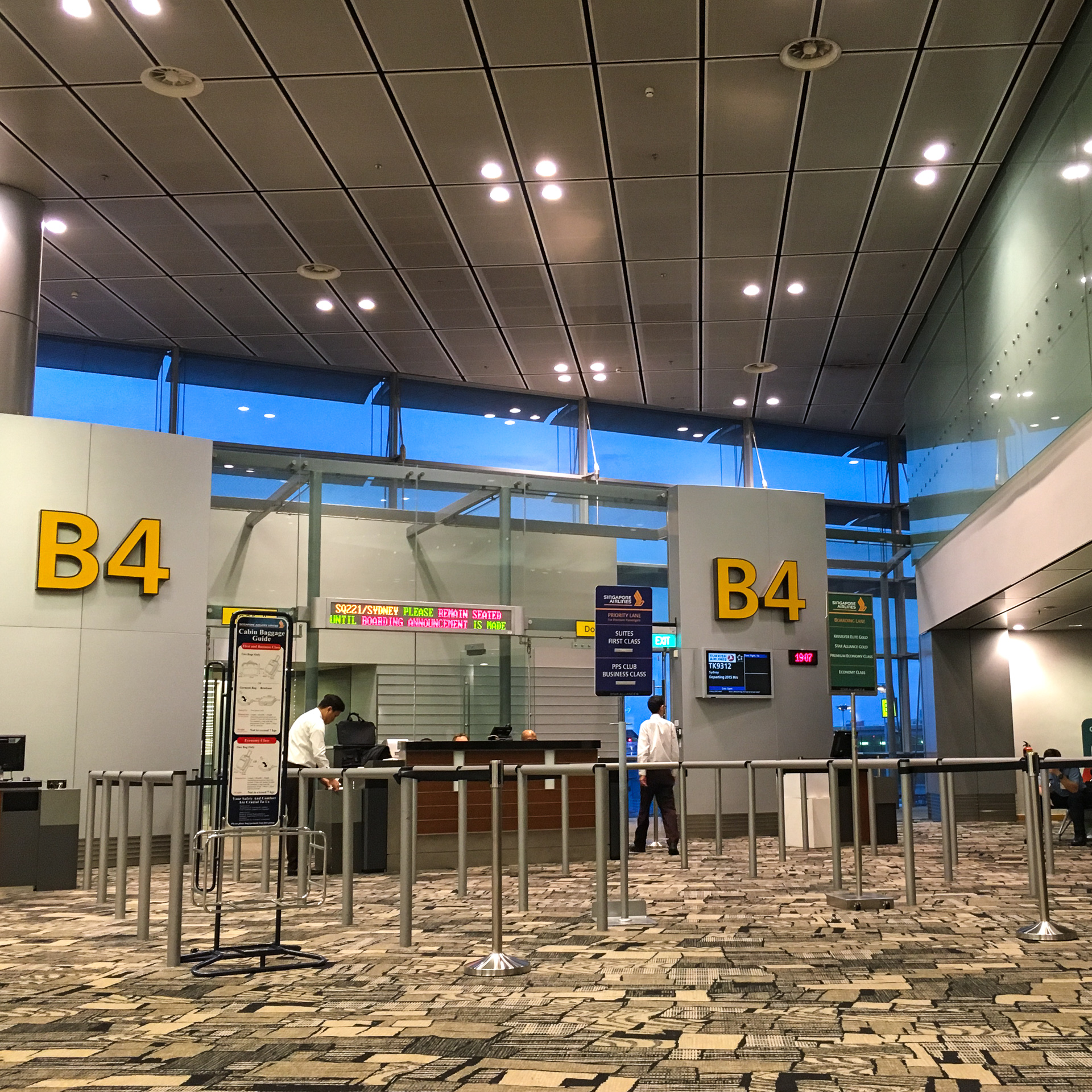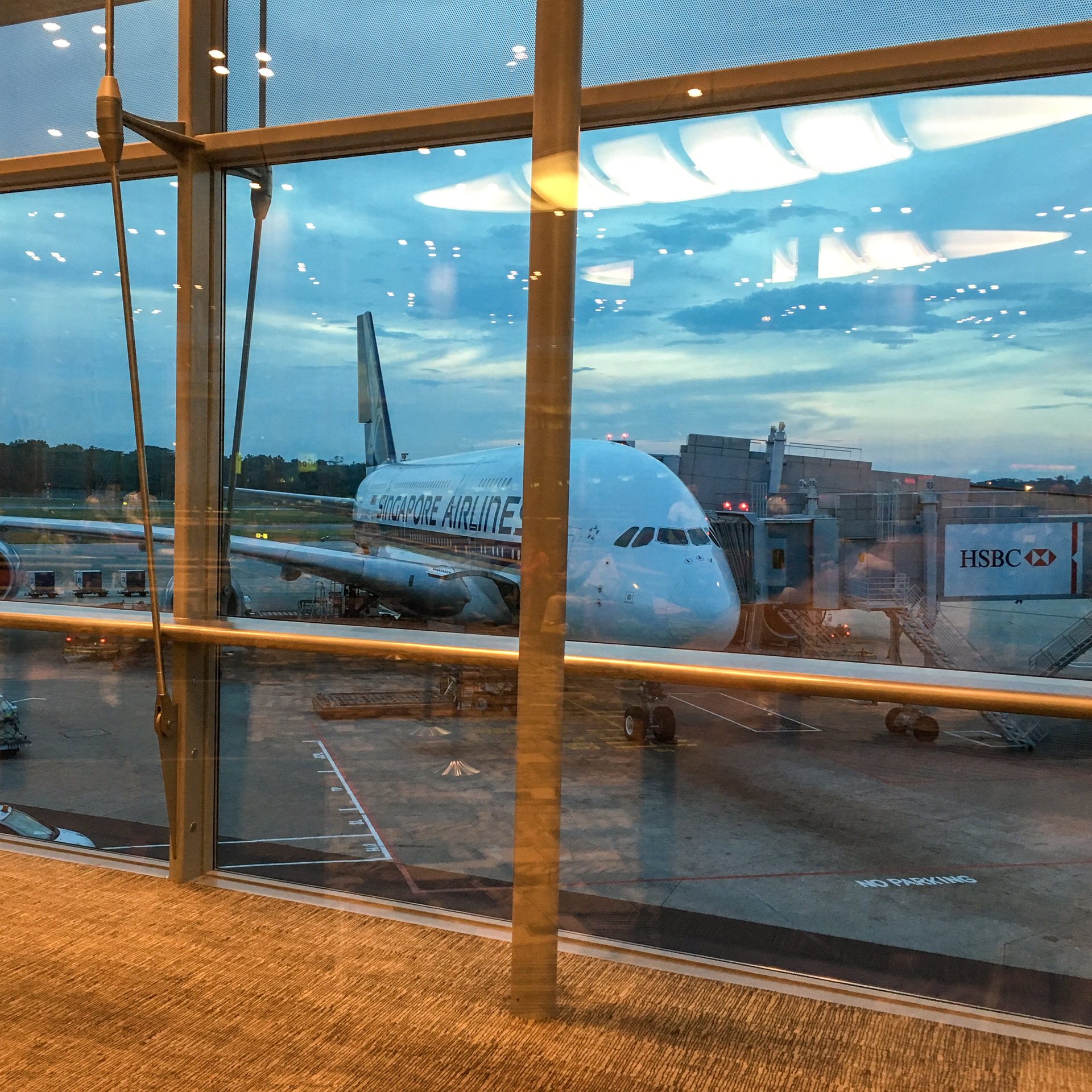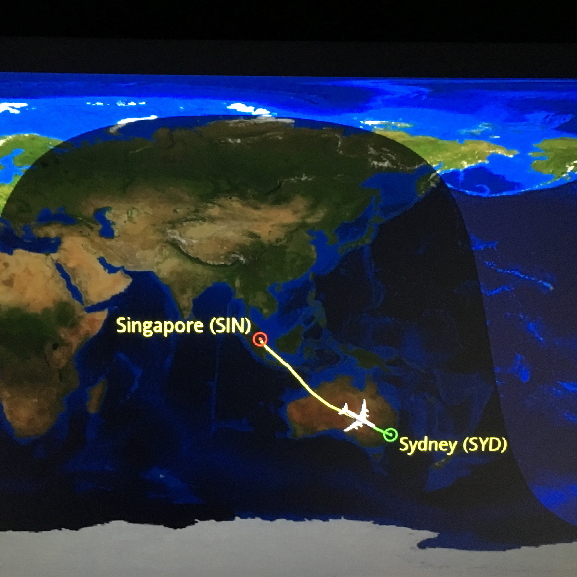 Nach Ortszeit am Nachmittag erreichten wir Singapur und hatten dort knapp vier Stunden Umsteigezeit. Der Flughafen in Singapur ist optimal auf Umsteiger ausgelegt, sogar Barzahlung mit Euro in den Shops und Restaurants war möglich. Danach hiess es wieder Warten bis zum nächsten Abflug um 20:15 Uhr. Eine Premiere für uns, zum erstenmal flogen wir mit einem Airbus A 380.