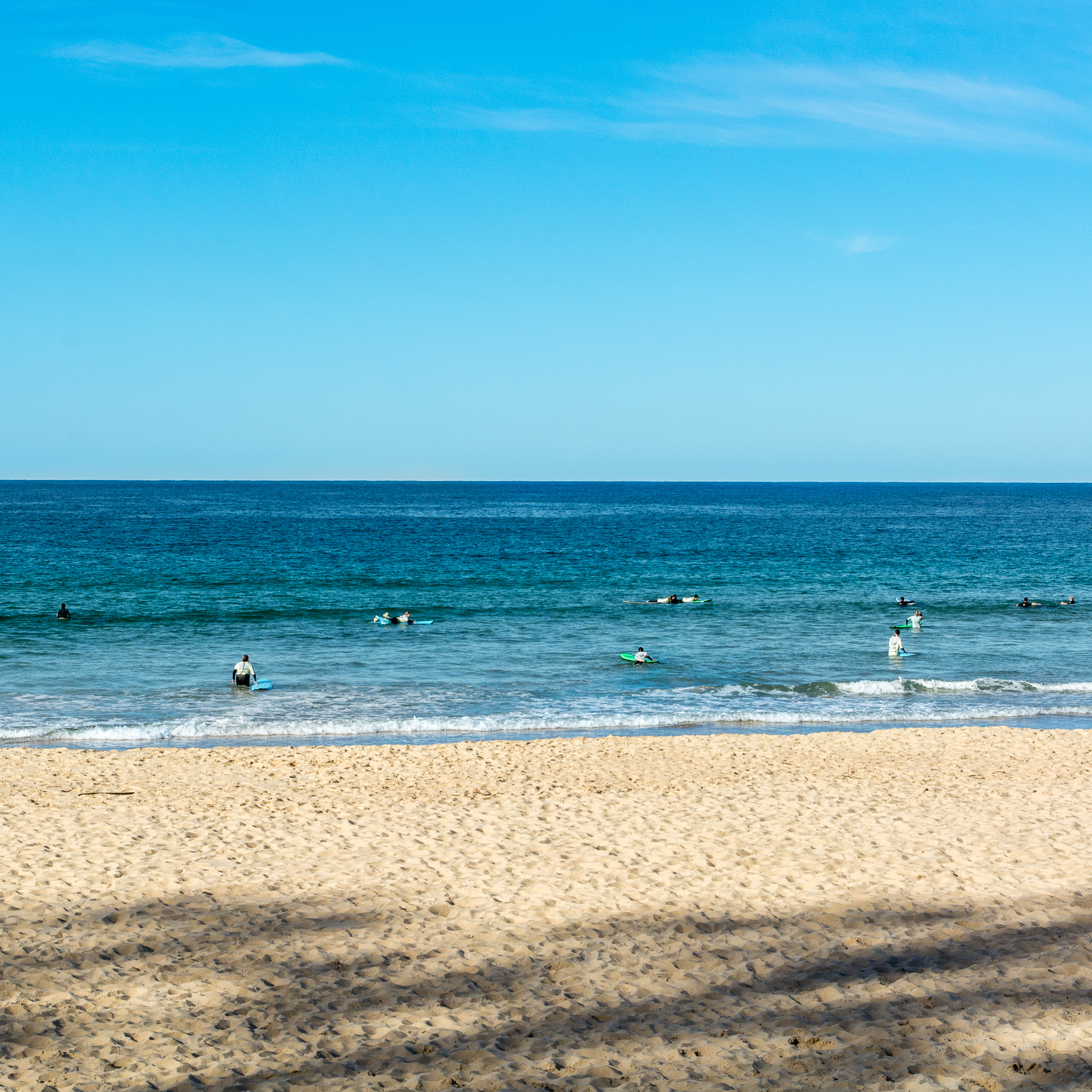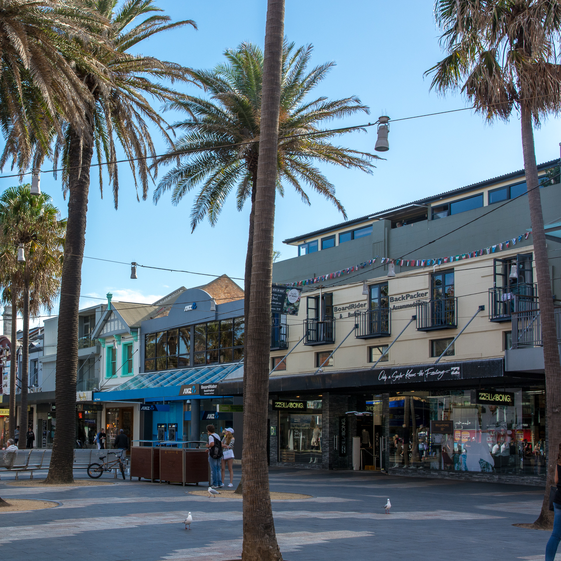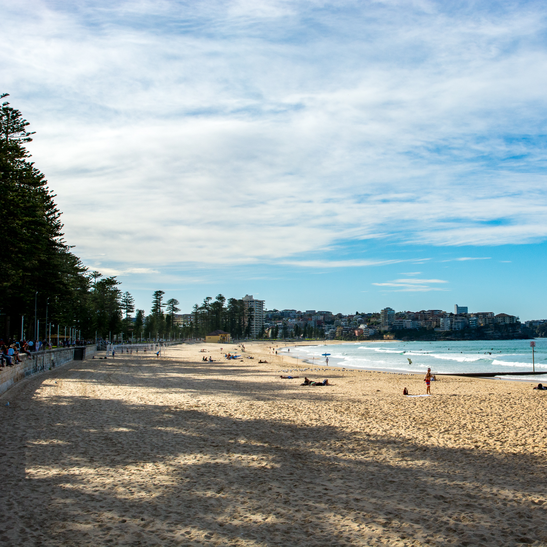 Am Fähranleger in Manly ist die schmalsten Stelle der Halbinsel, „The Corso“ heisst die kurze Fußgängerzone, welche einen vom Anleger im „North Harbour“ zum Strand am Pazifik führt. Den Strand sind wir dann auf ganzer Länge bis zum Nordende – und natürlich auch wieder zurück – abgelaufen.