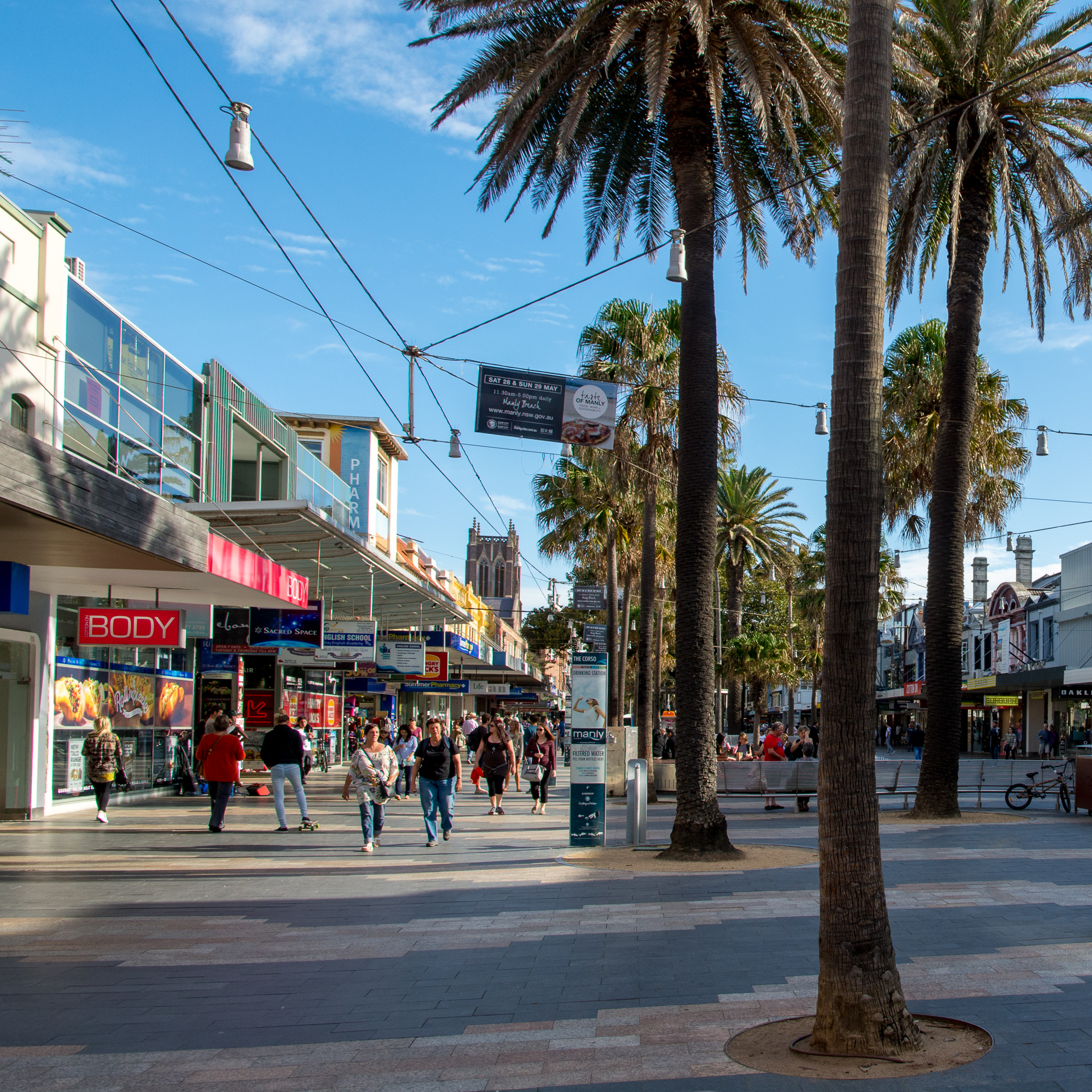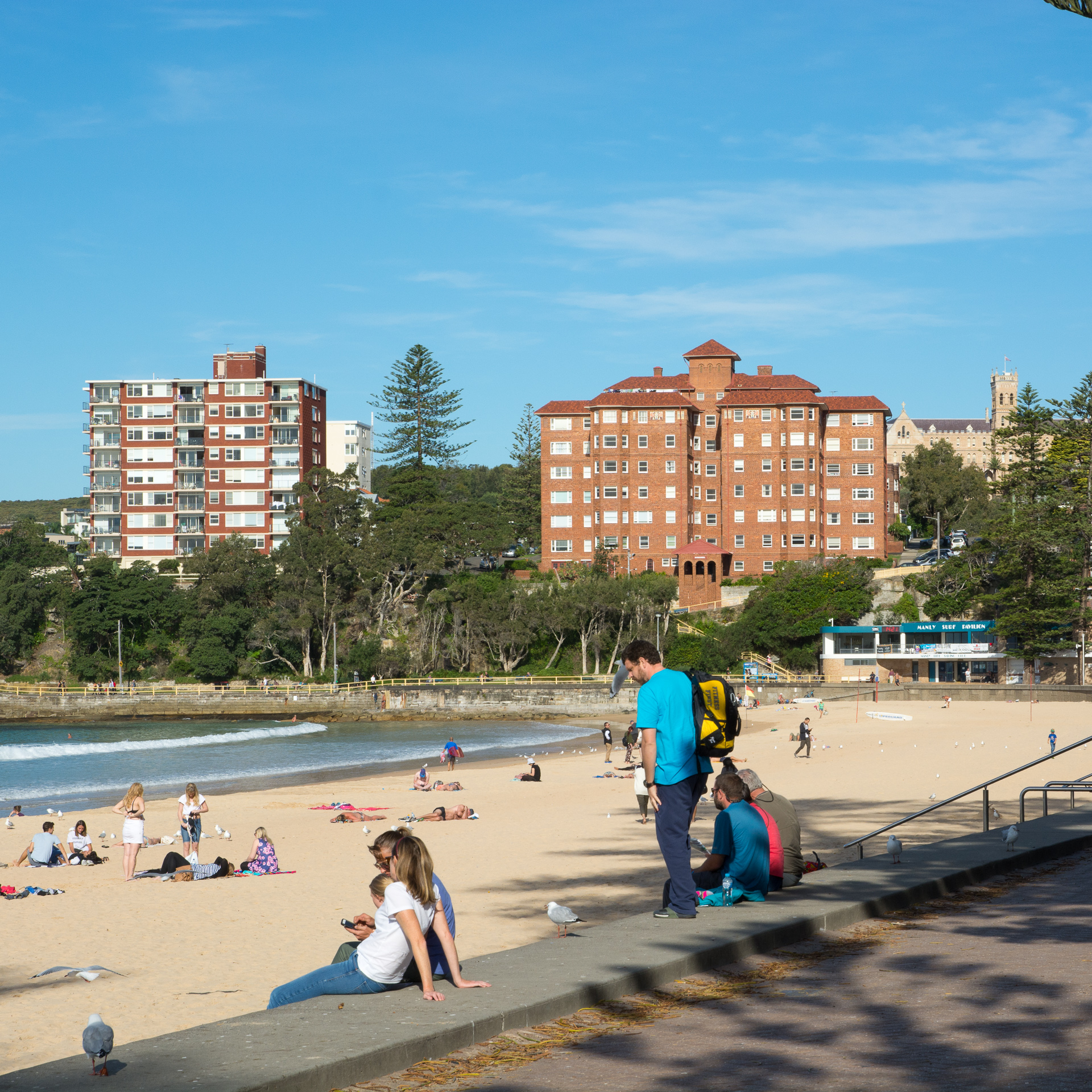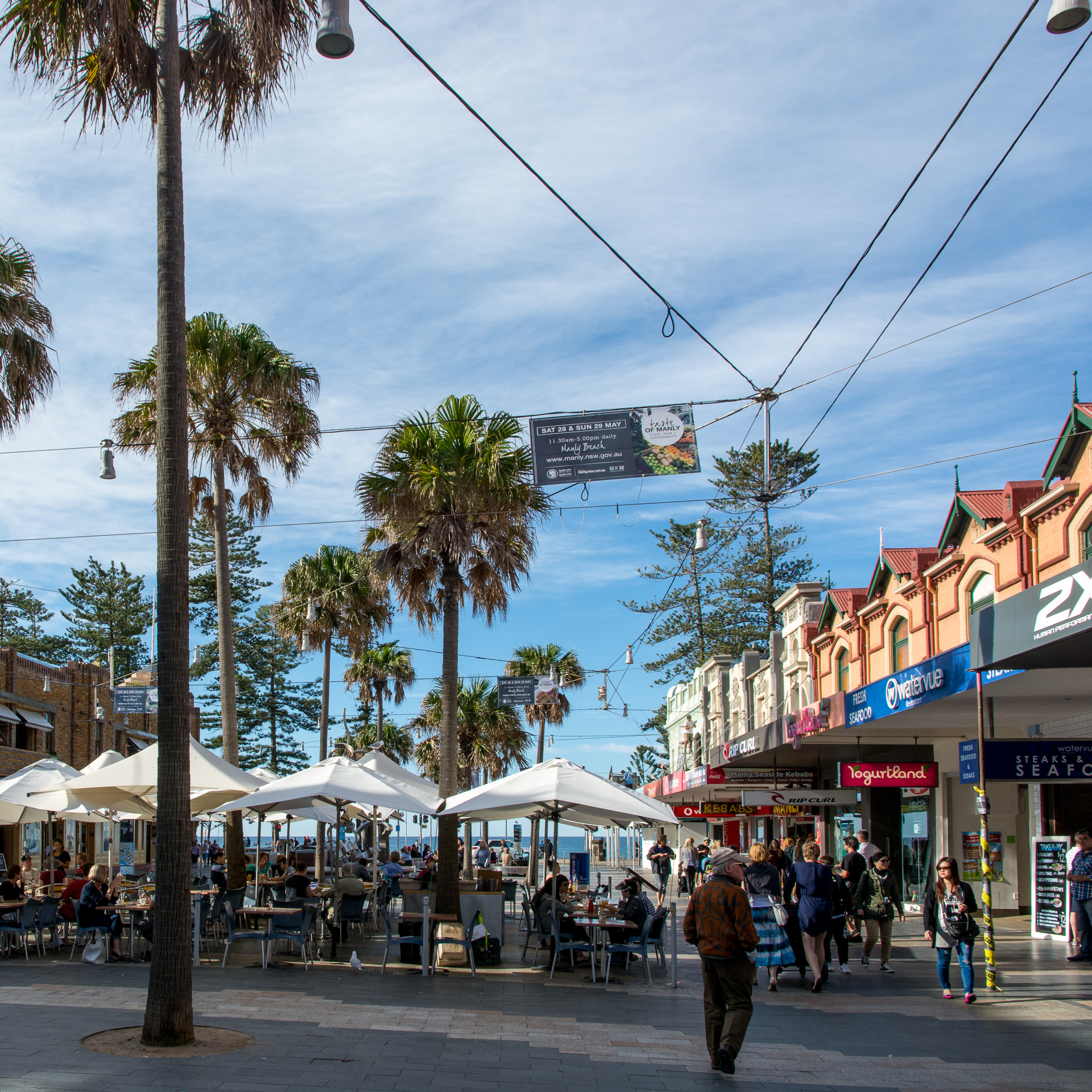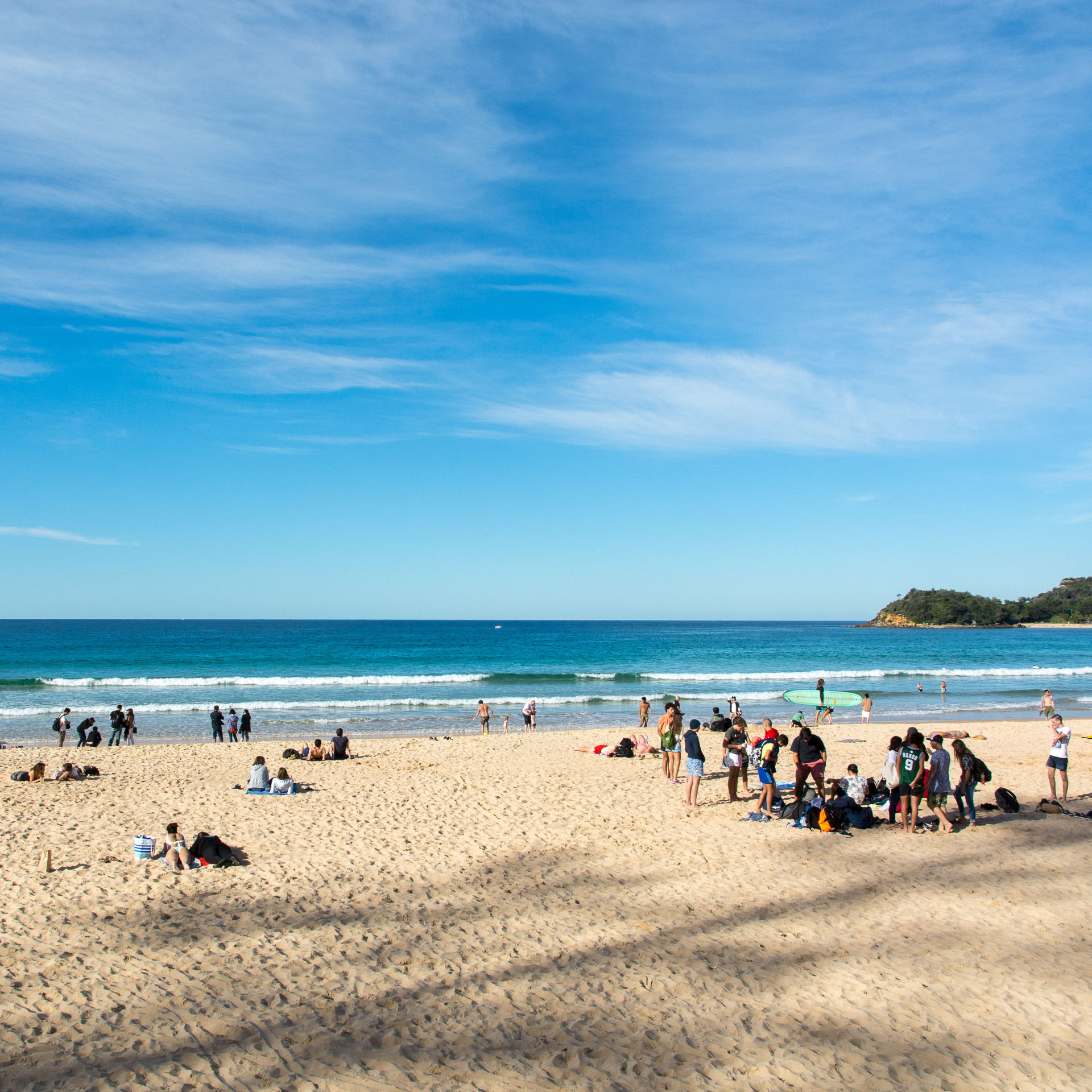 Am Fähranleger in Manly ist die schmalsten Stelle der Halbinsel, „The Corso“ heisst die kurze Fußgängerzone, welche einen vom Anleger im „North Harbour“ zum Strand am Pazifik führt. Den Strand sind wir dann auf ganzer Länge bis zum Nordende – und natürlich auch wieder zurück – abgelaufen.