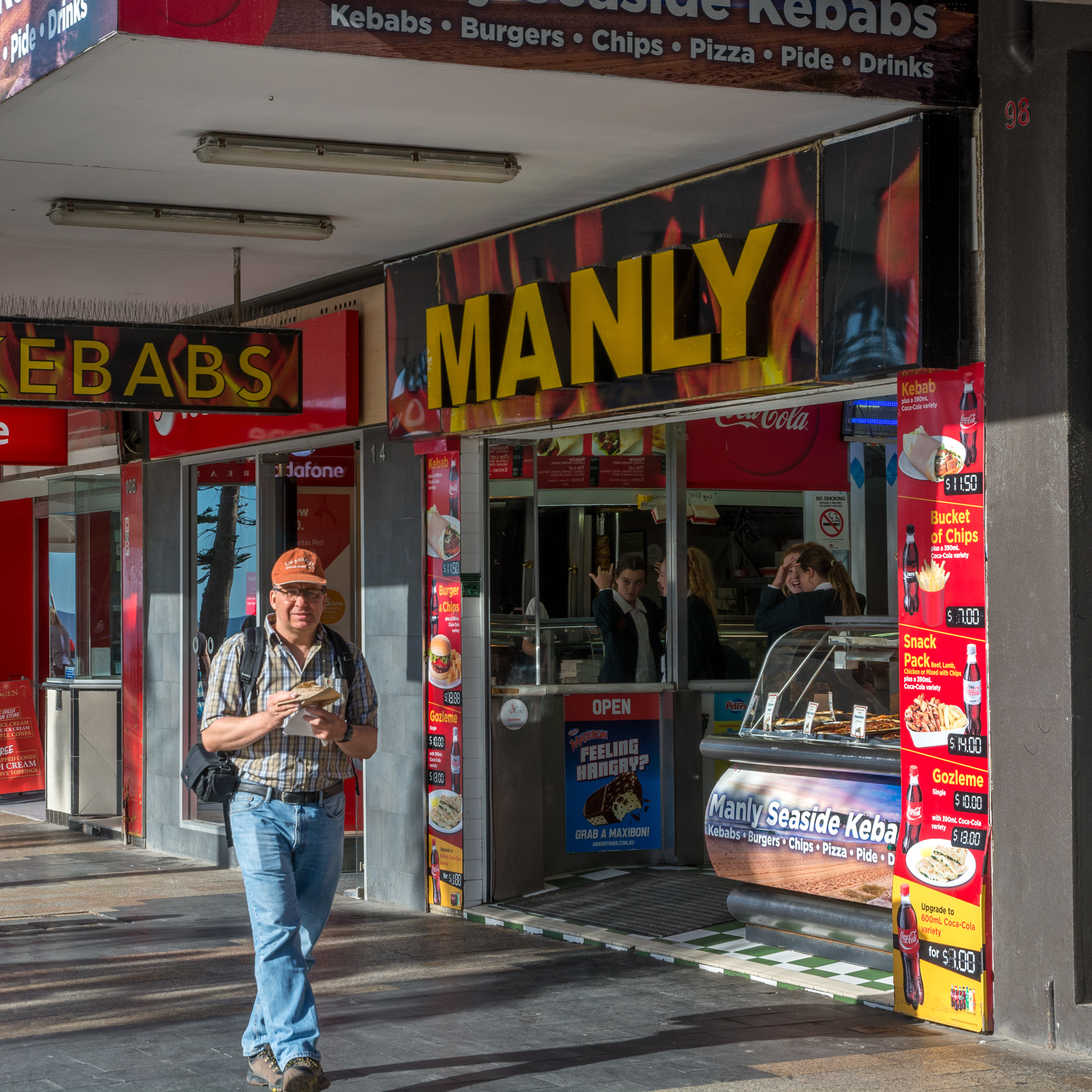 In Manly fühlt man sich gleich heimisch. Nicht nur wird man im Fährterminal von einem bekannten deutschen „Feinkosthändler“ begrüsst, der Pub davor kommt auch zünftig bayrisch daher.