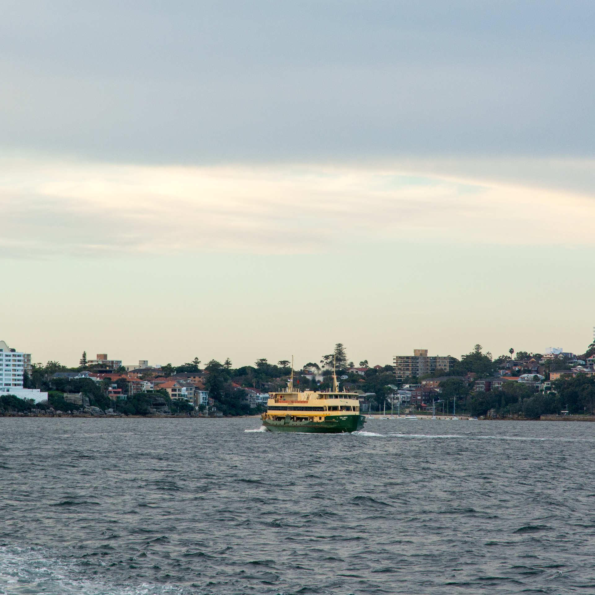 Über Wohnstraßen liefen wir zurück zum Südende des Bondi Beach, hatten ein Eis von einem Kiosk und nahmen dann den Bus zurück Richtung Downtown Sydney. Diesmal den schnelleren Bus entlang der Hauptstraße mit Endstation am Circular Quay. „Was machen mit dem angebrochenen Tag“ war die Frage, „Fähre fahren“ die Antwort und es ging zum nächsten berühmten Strand, Manly Beach.
