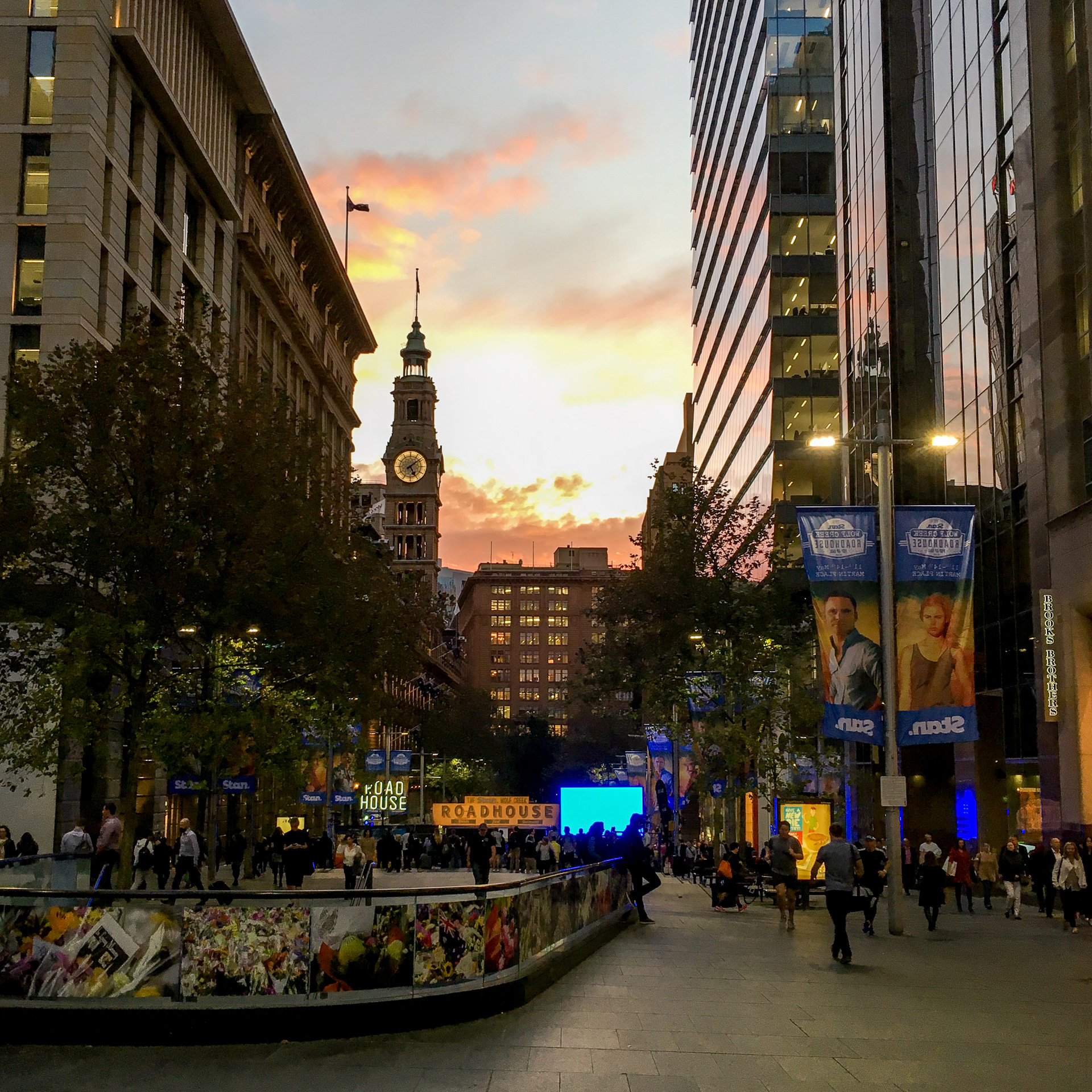 Mit der Fähre ging es im Sonnenuntergang zurück nach Downtown Sydney, da haben wir die Stadt noch durchstreift auf der Suche nach einem Mobilfunkshop. Wir wurden fündig und haben eine australische Simkarte für die Zeit des Urlaubs gekauft.