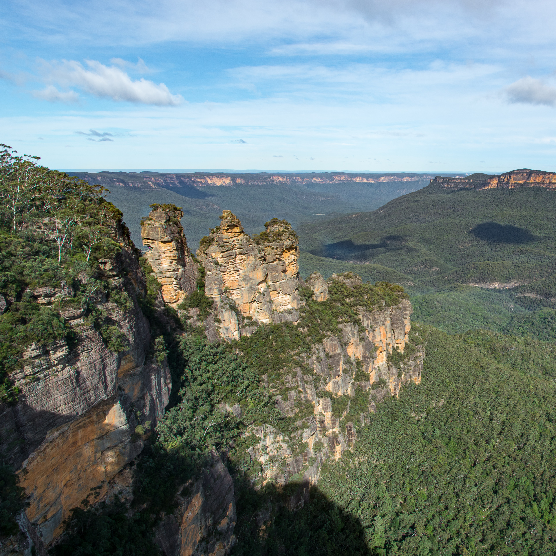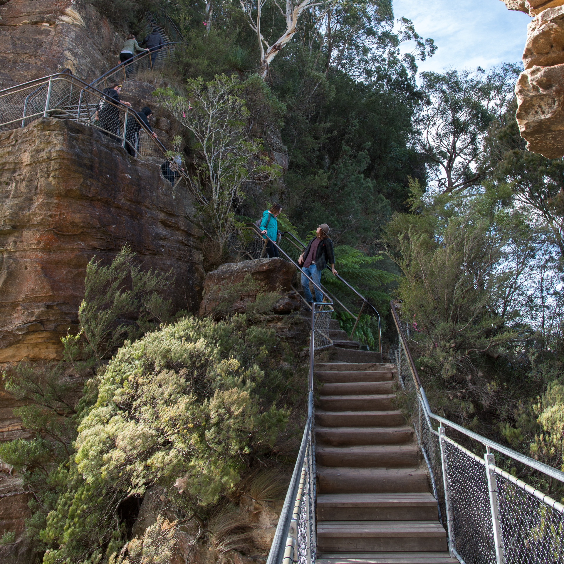 Der Bahnhof in Katoomba liegt einen guten Kilometer von den Steilwänden zum Jamison Valley entfernt, ein Bus überwindet die Strecke. Zwei hauptsächliche touristische Hotspots gibt es in Katoomba, den Echo Point mit der Aussicht auf die ‚Three Sisters‘, und die Touristenfalle Katoomba Scenic World weiter westlich, die mit mehreren Seilbahnen Fahrten über ein Nebental und hinunter in den Regenwald ermöglicht.