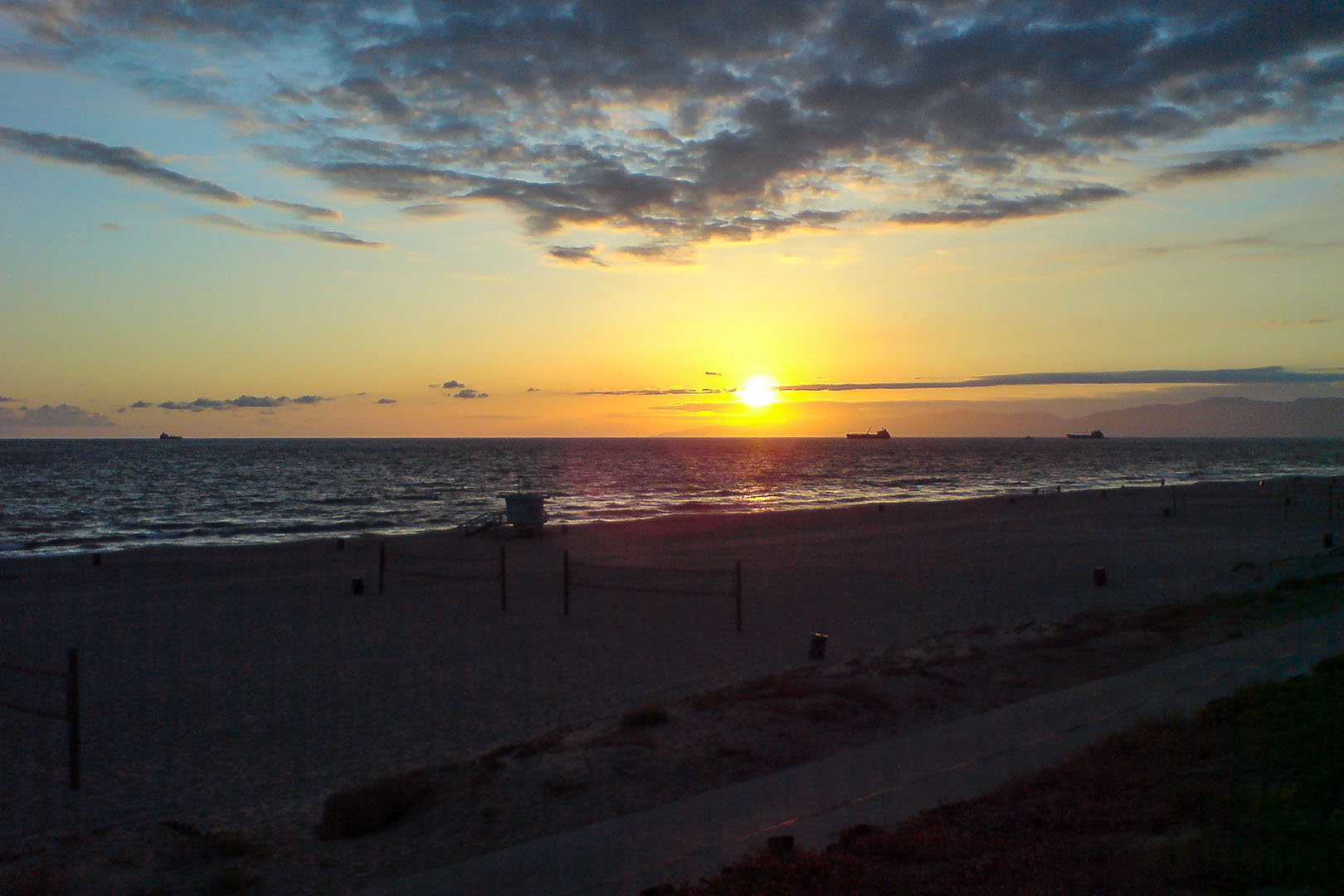 Bei Hertz abgesetzt ging es recht schnell bis wir den Wagen hatten. Weiter auf die Strasse und ab ins Hotel nach Manhattan Beach. Wir übernachteten im Residence Inn by Marriott. Gott sei Dank kam die GPS Maus schnell in Schwung, ich hatte schon wieder ein paar falsche Kurven genommen und vom Sepulveda Blvd war nichts zu sehen. Im Hotel haben wir kurz geduscht und uns frisch gemacht, und sind dann noch nach „Downtown“ Manhattan Beach gefahren, um Getränke zu kaufen und etwas zu essen. So gegen 20 Uhr waren wir zum Sonnenuntergang am Strand.