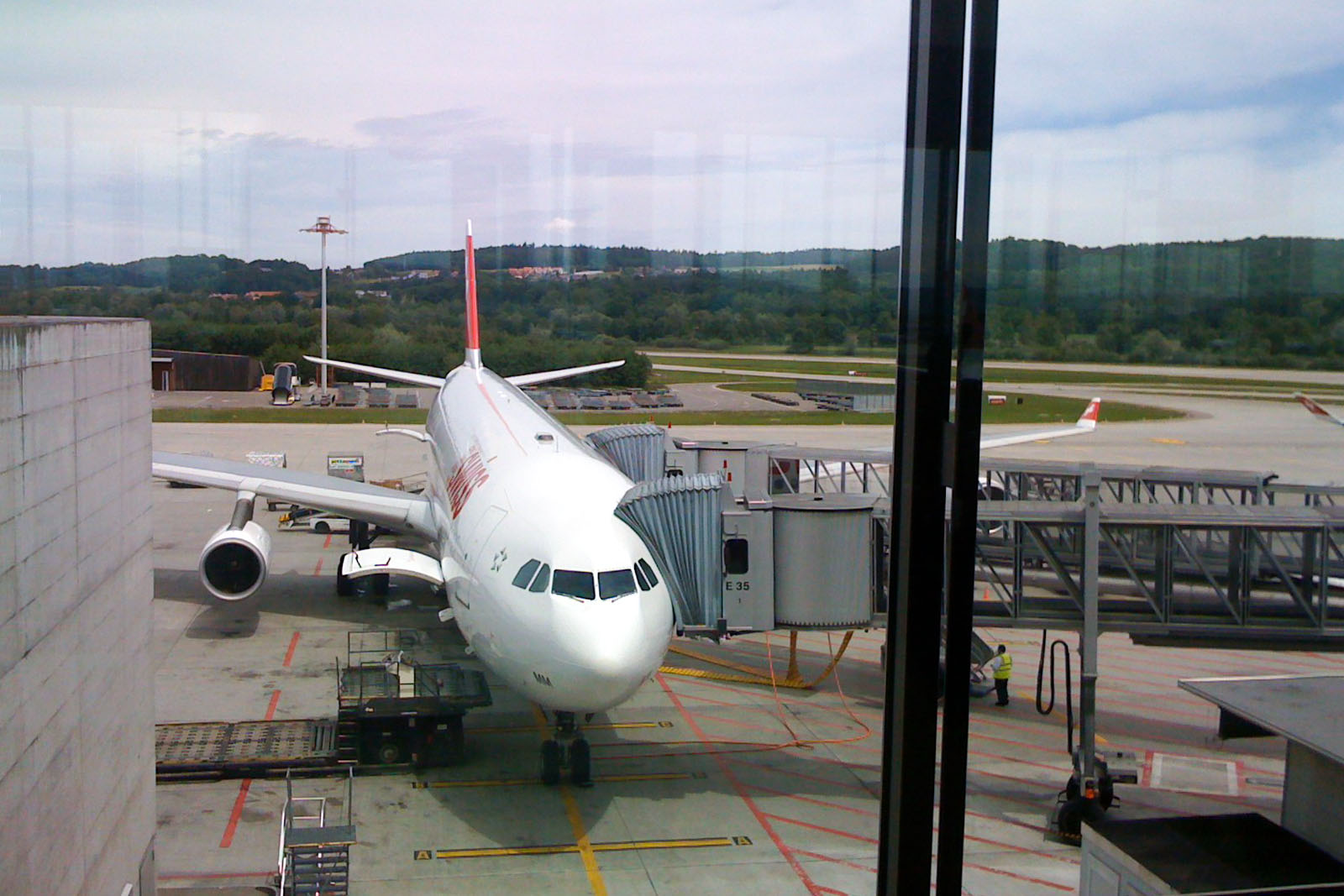 In Zürich war nicht viel los. Nach einer kurzen Pause in der überfüllten Lounge machten wir uns auf in Richtung Terminal E, dort werden die Langstreckenflüge abgefertigt. Der A340 stand schon am Gate, und es sah nach einer zweiten Katastrophe aus, es wurde nämlich eine Stunde Verspätung wegen technischem Defekt angekündigt. Letztendlich waren es aber nur 30 Minuten.