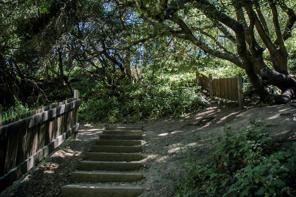 Weiter geht es. Ziemlich schnell müssen wir eine Abzweigung verpasst haben, statt Richtung Pazifik zu fahren landen wir im Ort Mill Valley. Das ist ein recht hübscher Ort halb in den ‚Muir Woods‘, aber Herauskommen gestaltet sich schwierig. Das GPS weist zwar den Weg, aber was in der Karte als gelbe Hauptstrasse ausgewiesen wird, ist in Wirklichkeit eine schmale, kurvenreiche und steile Strasse, auf der man kaum mehr wie Schrittgeschwindigkeit fahren kann. Nach nahezu endloser Kurverei sind wir dann irgendwann doch wieder auf der 1, und es geht weiter Richtung Muir Beach.