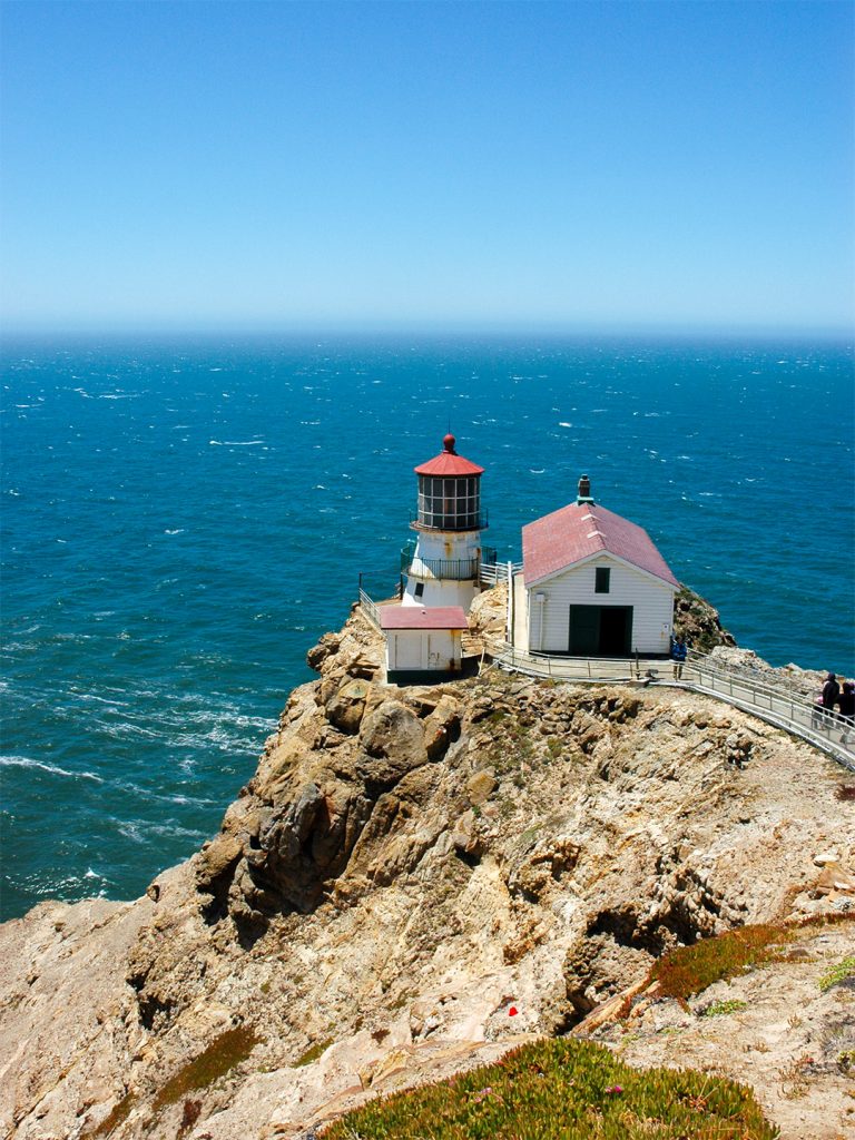 Wir fahren dann ans äußerste Ende der Halbinsel zum Leuchtturm. Das Wetter ist sehr gut, seinem Ruf als ‚Fog Capital‘ wird Point Reyes heute nicht gerecht. Es ist allerdings sehr windig und kalt.
