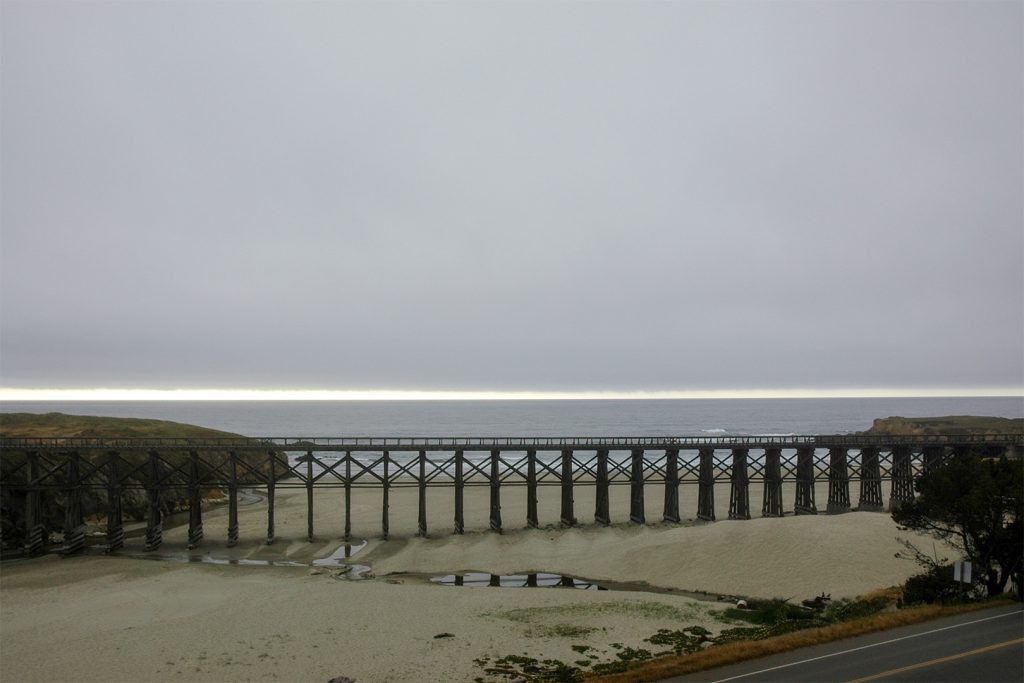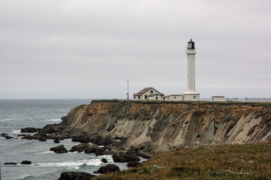 In Point Arena bogen wir noch einmal ab zum dortigen Leuchtturm. Der Seenebel war wieder an Land gekrochen, so dass es nun völlig bewölkt war.