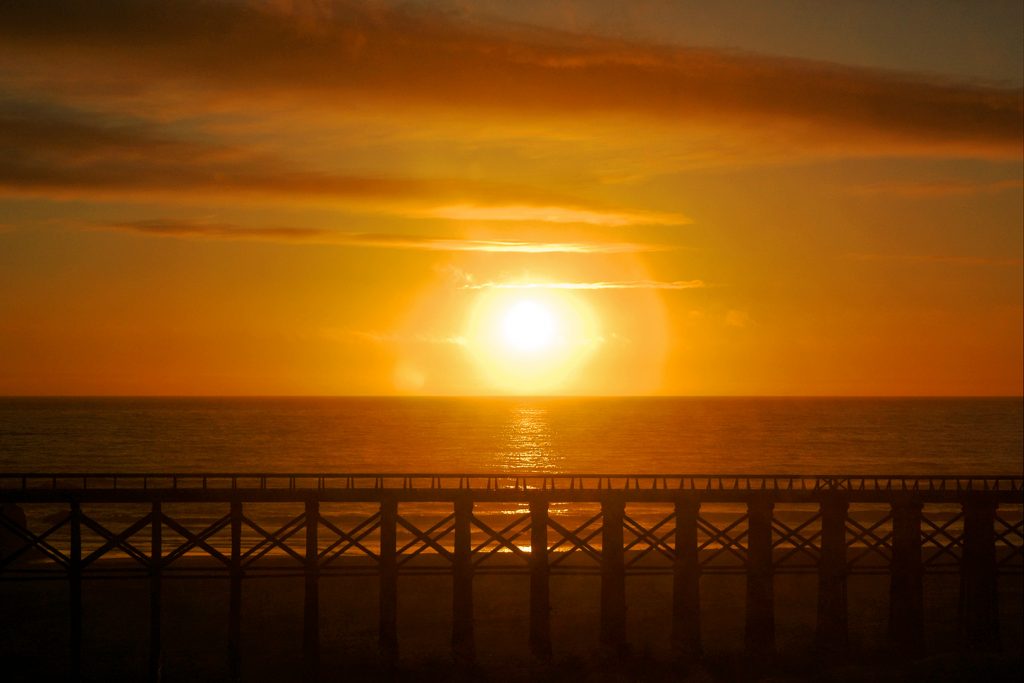 Das Hotel war eigentlich ok, trotzdem haben wir uns dort nicht völlig wohlgefühlt, es wirkte etwas einsam und kalt, objektive Gründe dafür gab es aber nicht. Der Sonnenuntergang spielte sich wieder vor dem Zimmerfenster ab, der Nebel war rechtzeitig zurückgewichen. Noch besser wäre es gewesen, wenn das Fenster geputzt gewesen wäre …