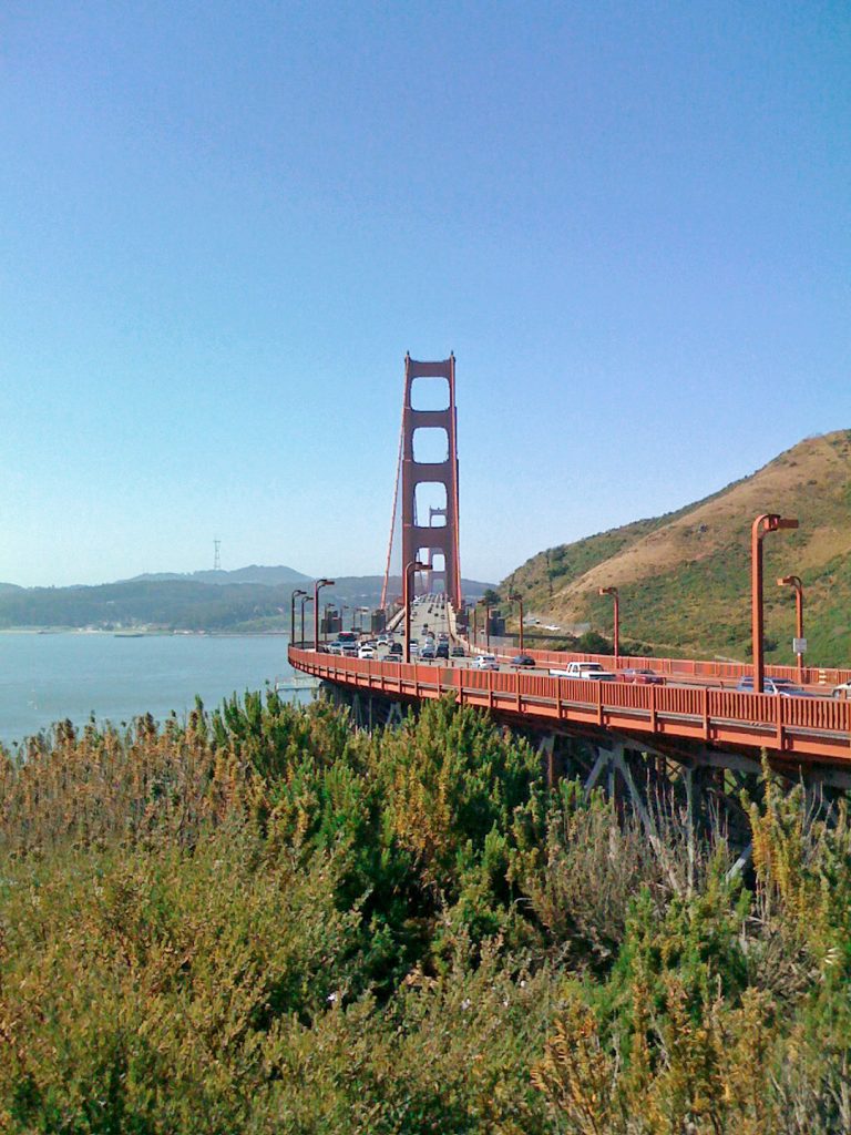 Nach zwei Tagen Unterbrechung ging es heute wieder mit dem Auto weiter. Es sollte nordwärts immer der Straße 1 entlang gehen bis Fort Bragg. Dazu lag San Mateo jetzt strategisch ungünstig, mussten wir doch morgens nach San Francisco hineinfahren. Wir hatten mit den B&B Besitzern noch diverse Alternativen für den Weg zur Golden Gate Bridge diskutiert, aber als wir nach Frühstück und Tanken in San Francisco ankamen, war die Rush Hour schon wieder abgeflaut, und es gab keinen kein Stau weit und breit. Wir blieben also stur auf der 101 und fuhren nordwärts über die Brücke.