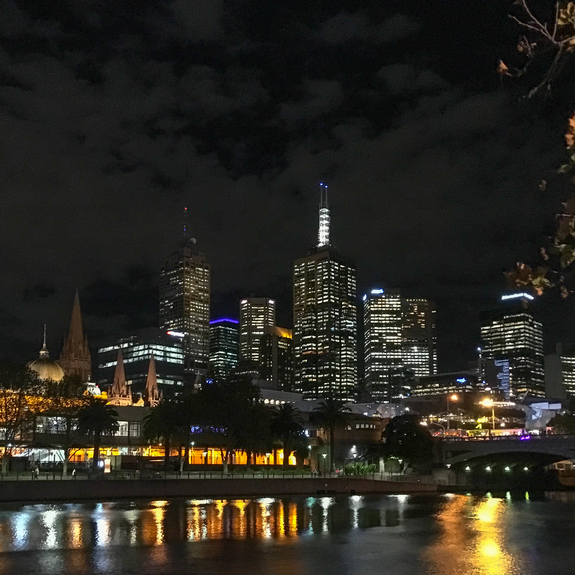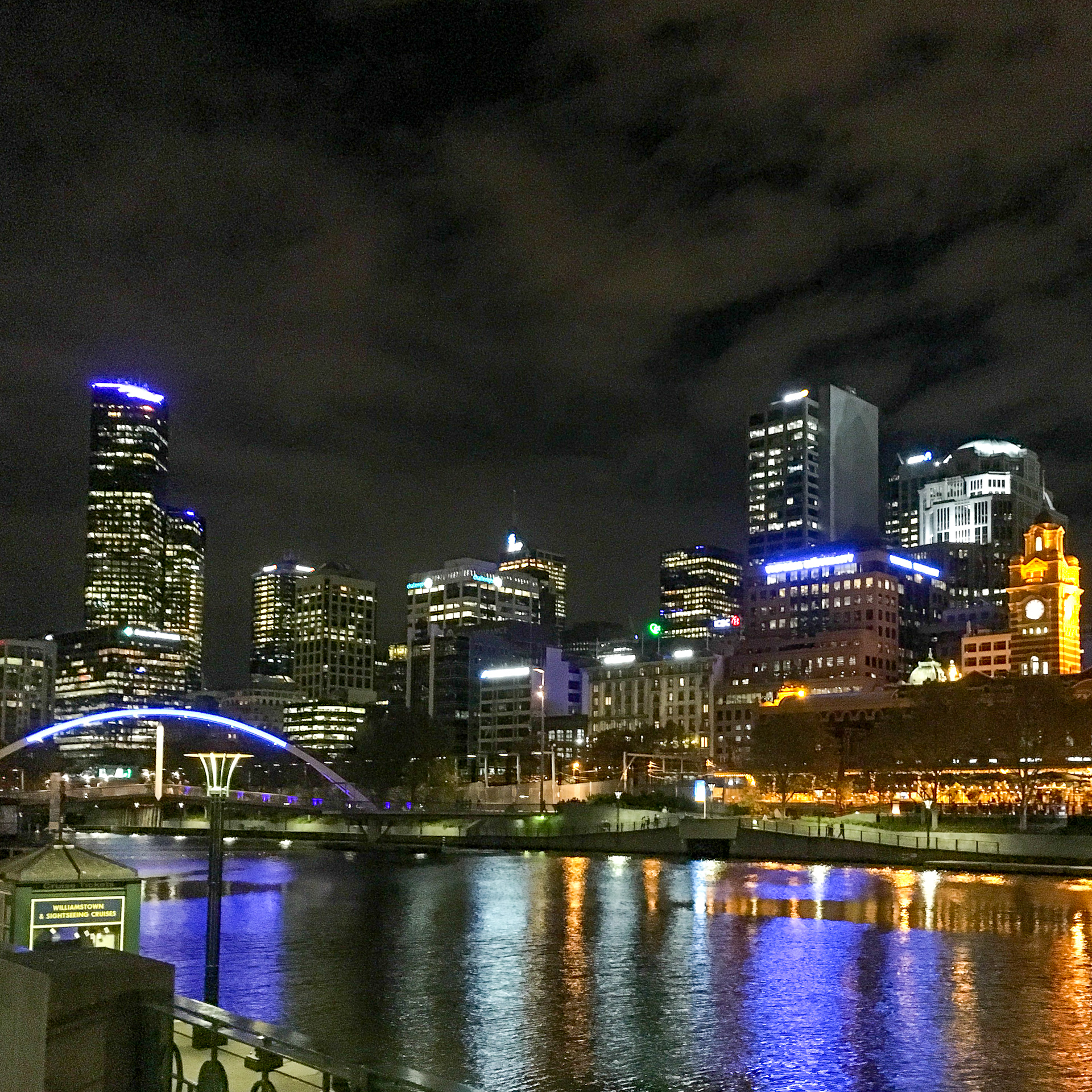Mit Drinks und Snacks aus dem Speisewagen kann man das Überleben sicherstellen. Interessant dabei: Kaffee gibt es in Teebeuteln. Und nach etwa 11 Stunden, nach 18 Uhr, sind wir in Melbourne, es ist schon dunkel als wir ankommen. Unser Hotel ist vorausschauend gewählt und gerade mal ein paar Hundert Meter von der Southern Cross Station entfernt, das Novotel auf der Collins Street, einer der Hauptstraßen in der Innenstadt. Nachdem wir dort eingecheckt haben, machen wir uns auf und suchen etwas zum Abendessen, irgendwie nicht ganz einfach, wir landen irgendwo südlich des Yarra River.