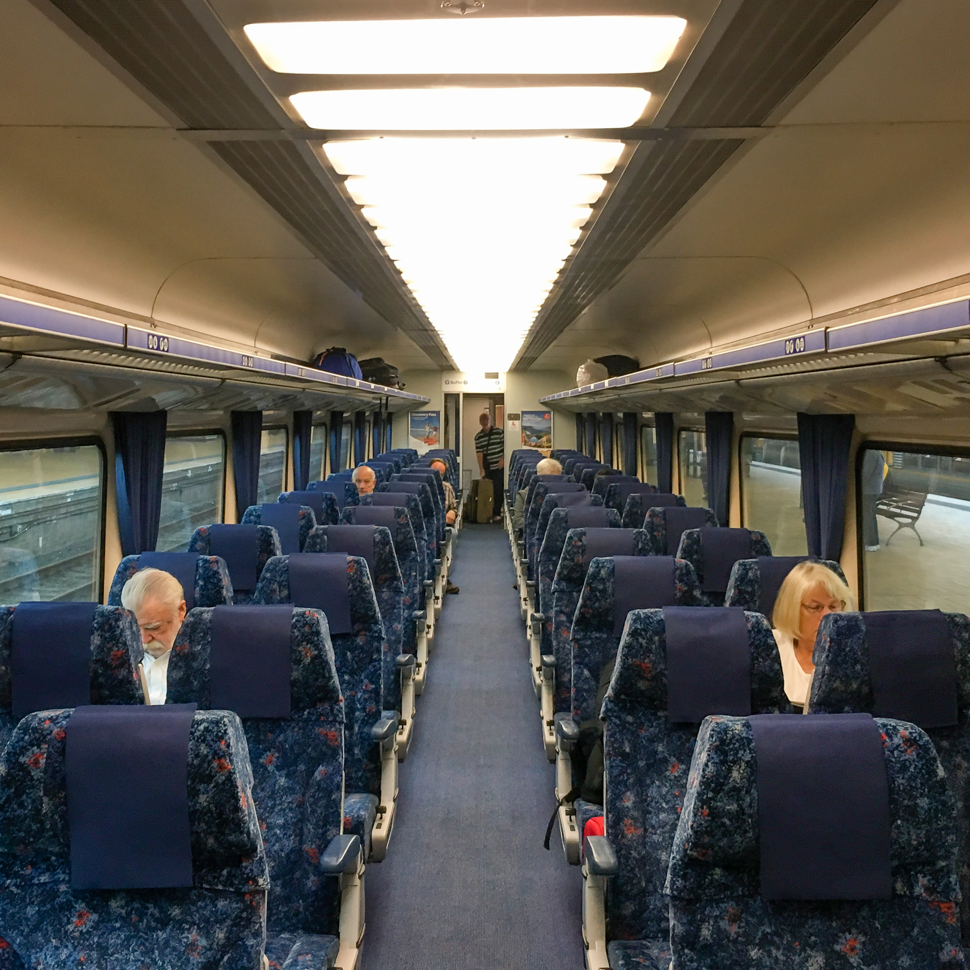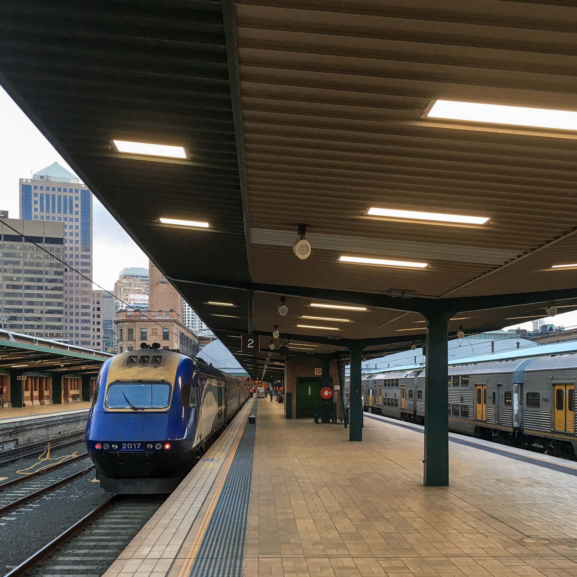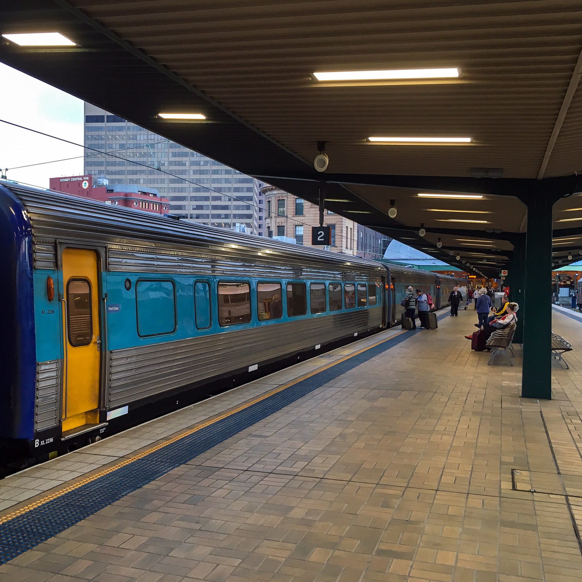 Heute verlassen wir Sydney. In aller Herrgottsfrühe geht es los, Frühstück im Hotel können wir heute nicht geniessen. Kurz nach 7 Uhr morgens geht der Zug nach Melbourne. An einem Kiosk im Bahnhof kaufen wir Donuts und Kaffee, laufen dann zum Bahnsteig und zum Zug und frühstücken während wir auf die Abfahrt warten.