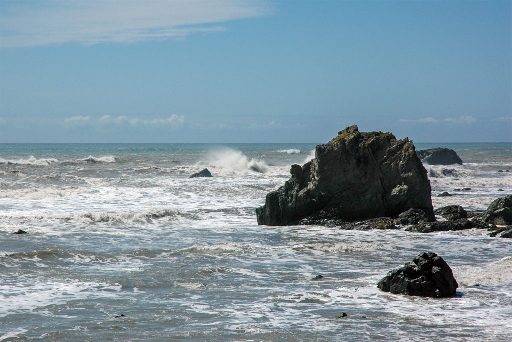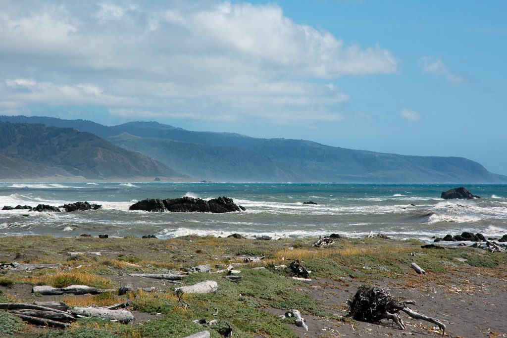 Die Avenue of the Giants fuhren wir nicht komplett bis zu nördlichen Ende durch, sondern bogen nach links auf die ’Mattole Road’ ab, die uns nochmals zur Küste führen sollte. Dies war eine der einsamsten Streckenabschnitte unserer Reise. Es ging auf mal wieder kurvenreichen, schmalen Straßen zunächst die Berge hoch und dann wieder herunter, bis wir auf die Küste trafen. ’Lost Coast’ nennt man diesen Teil der nordkalifornischen Küste auch, und dies ist gut verständlich, ist sie doch praktisch unzugänglich, die Mattole Road berührt nur einige wenige Kilometer.