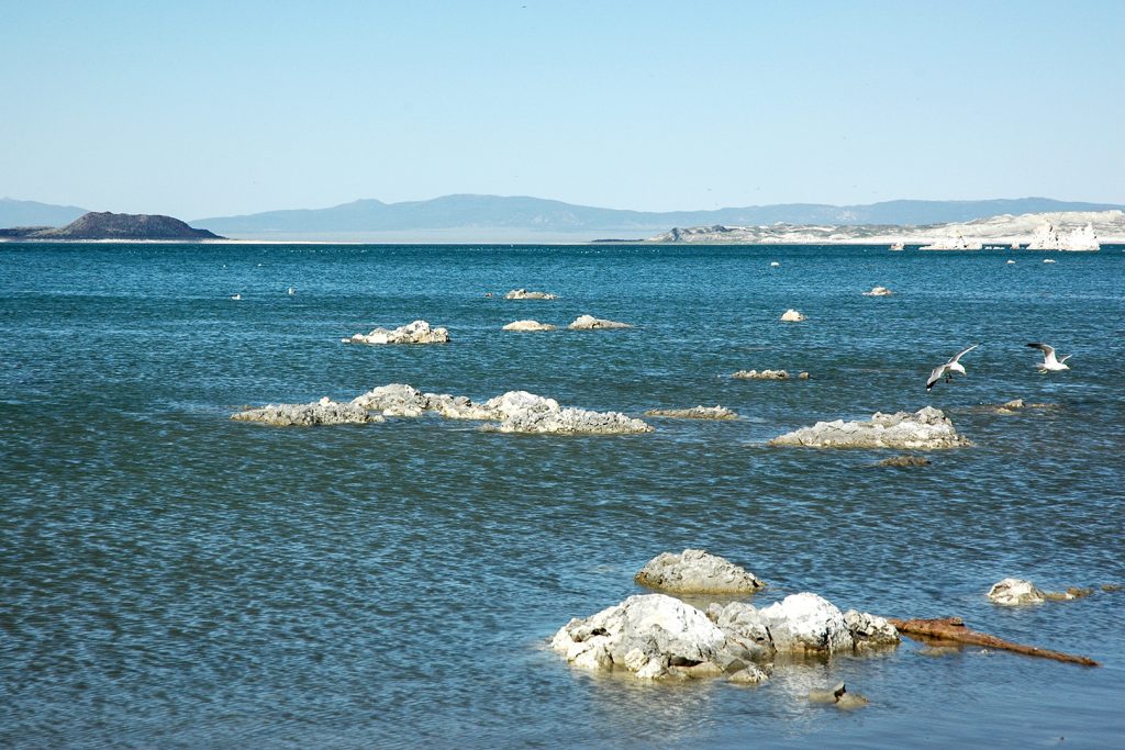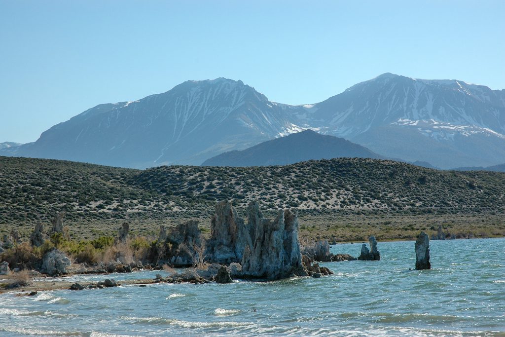Nach Bodie ging es weiter entlang der 395 zum Mono Lake. Ein paar Meilen vor Lee Vining hat man zunächst ein großartiges Panorama des Sees, bevor die Straße in Serpentinen abfällt. Am See stoppten wir mehrfach, am Nordende (County Park), am Visitor Center und dann in South Tufa.