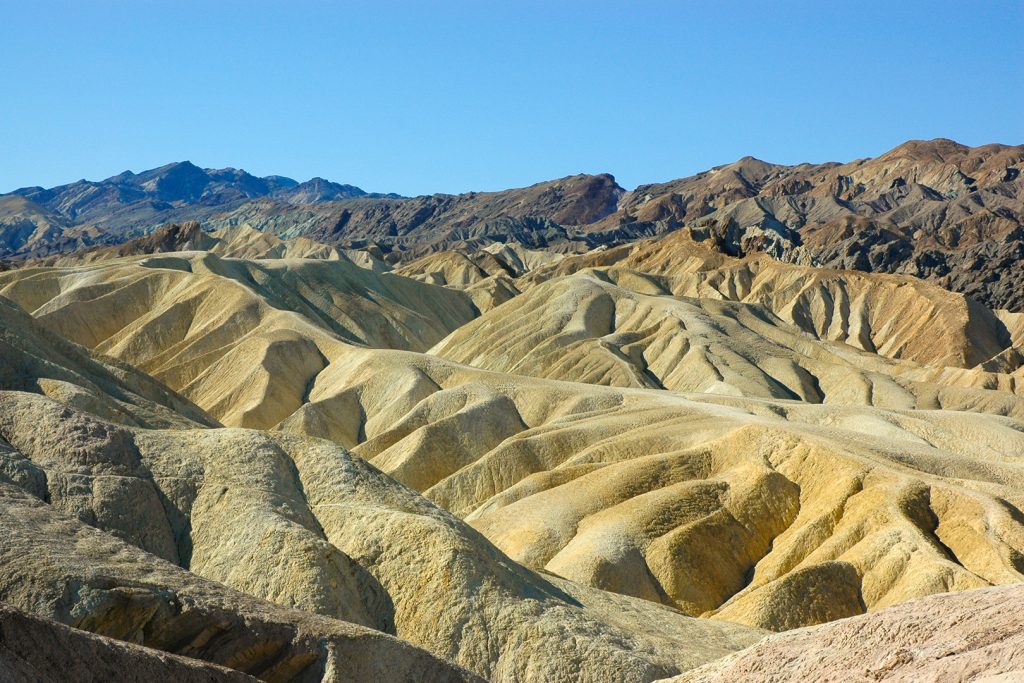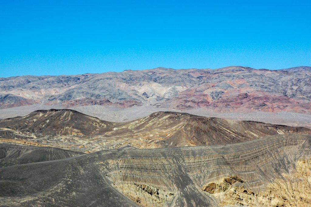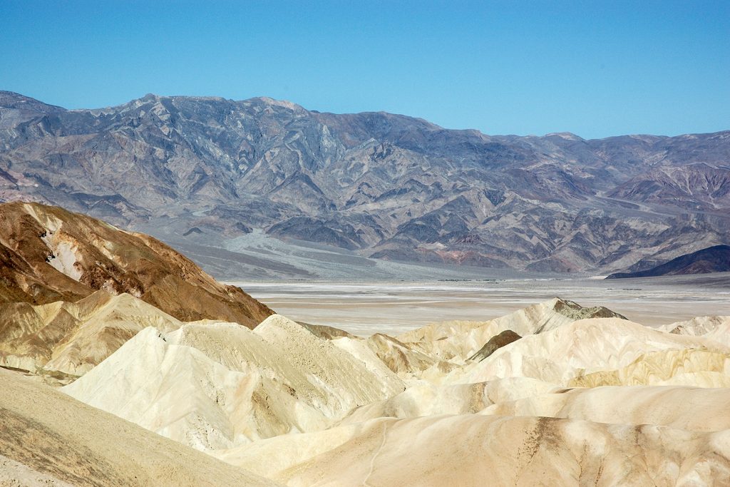 Das Frühstücksproblem lösten wir recht einfach, indem wir im Laden der Furnace Creek Ranch Kaffee ‚to go‘ und Sandwichs kauften. Dann ging es auch schon los zur großen Death Valley Rundfahrt. Wir starteten auf der 190 Richtung Shoshone und fuhren zunächst Zabriskie Point und dann Dantes View an. Recht früh am Morgen haten wir beide Punkte fast für uns alleine.