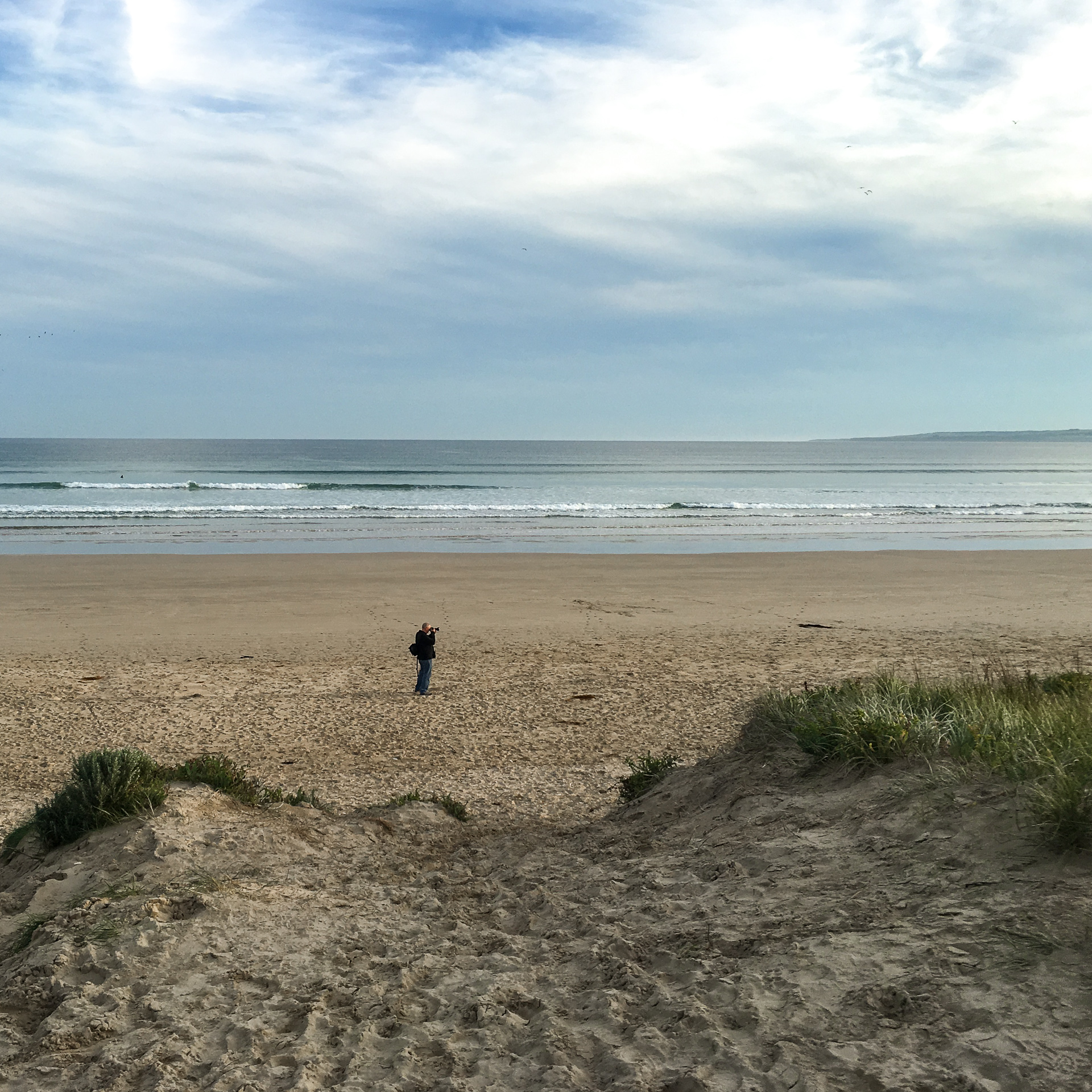 Stephan hatte nach der langen Fahrt keine Lust mehr, noch irgendwo hin zu fahren, aber ich konnte ihn dann doch überreden, noch zum nächsten Strand zu fahren. Der war noch mal 30 Kilometer entfernt, in Sandy Point.
