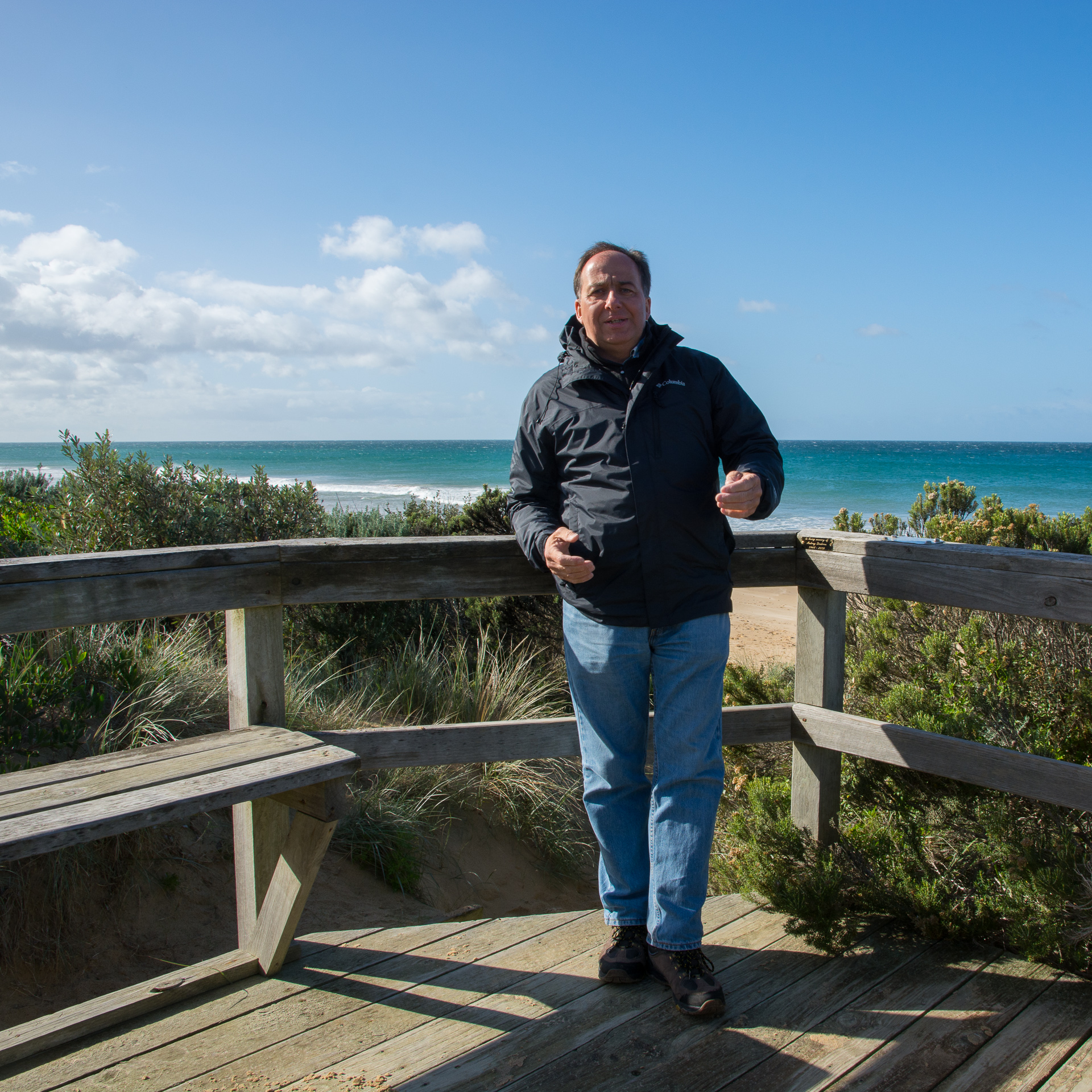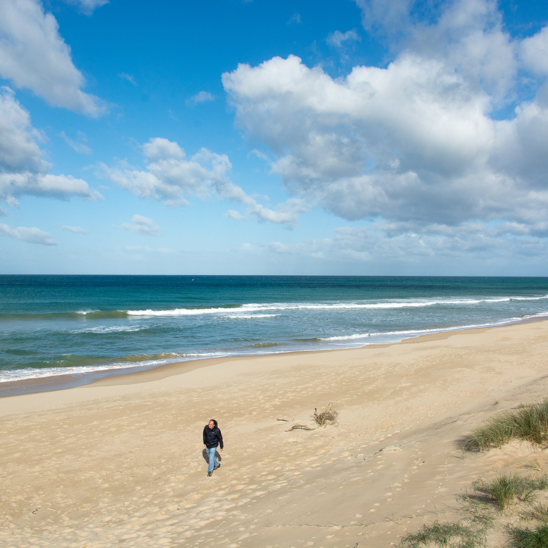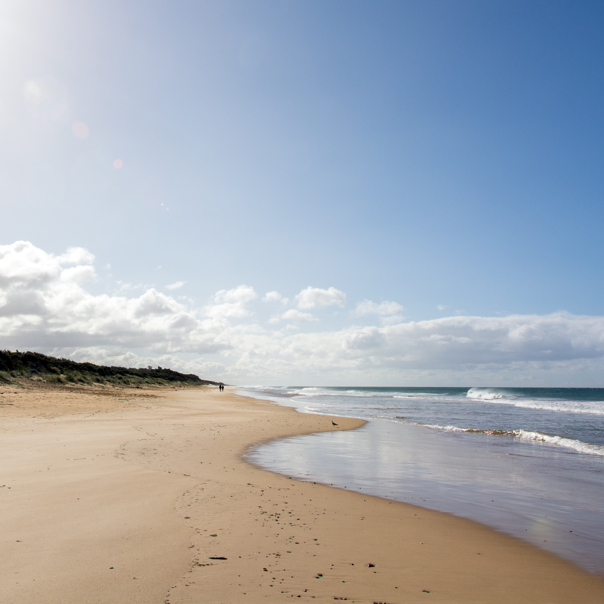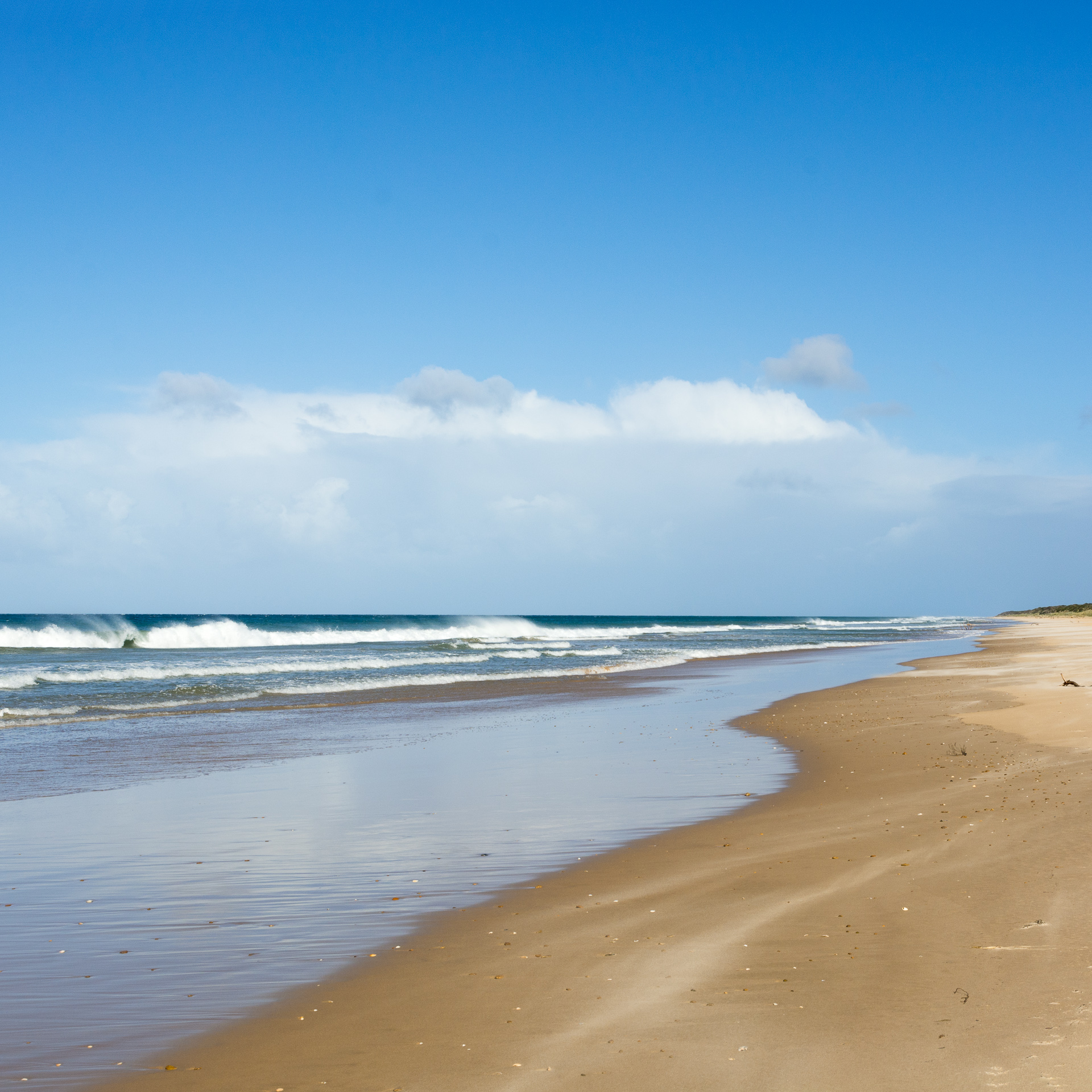 Nach dem Besuch an den Agnes Falls geht es wieder herunter zum Gippsland Highway, unser nächstes Ziel ist der ’90 Mile Beach‘. Tatsächlich ist er 94 Meilen (= 151 Kilometer) lang und soll damit der viertlängste Strand der Welt sein. Das erste Ma treffen wir auf diesen Strand nahe am südlichen Ende, in Woodside Beach. Vom touristischen Trubel der Sommermonate ist nichts zu bemerken, wir sind fast die Einzigen auf dem Strand.