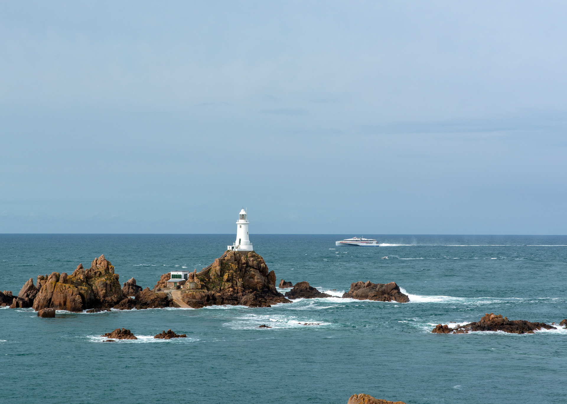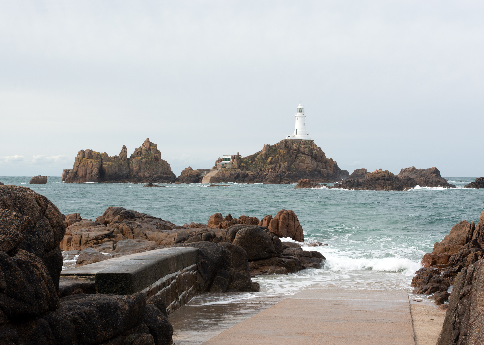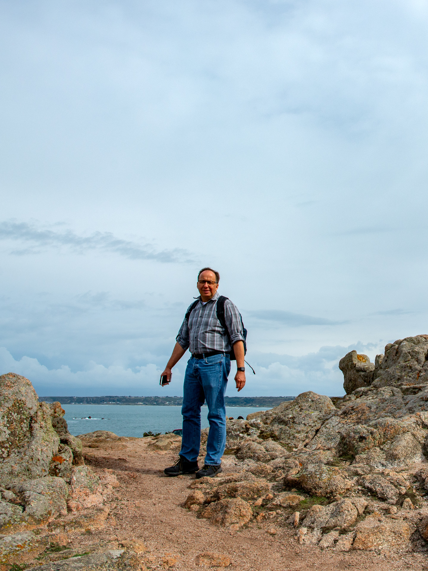 Unser Hotel lag so ungefähr in der Mitte zwischen Corbière und St. Aubin, und nachdem wir gestern die Bahntrasse nach St. Aubin abgelaufen waren, stand heute die andere Richtung auf dem Programm. Damit wird gleich wieder eine Sehenswürdigkeit erledigt, nämlich der Leuchtturm in Corbière. Die Hotelchefin erklärt uns genau den Zugang zur Bahntrasse, und dann geht es auch schon los.