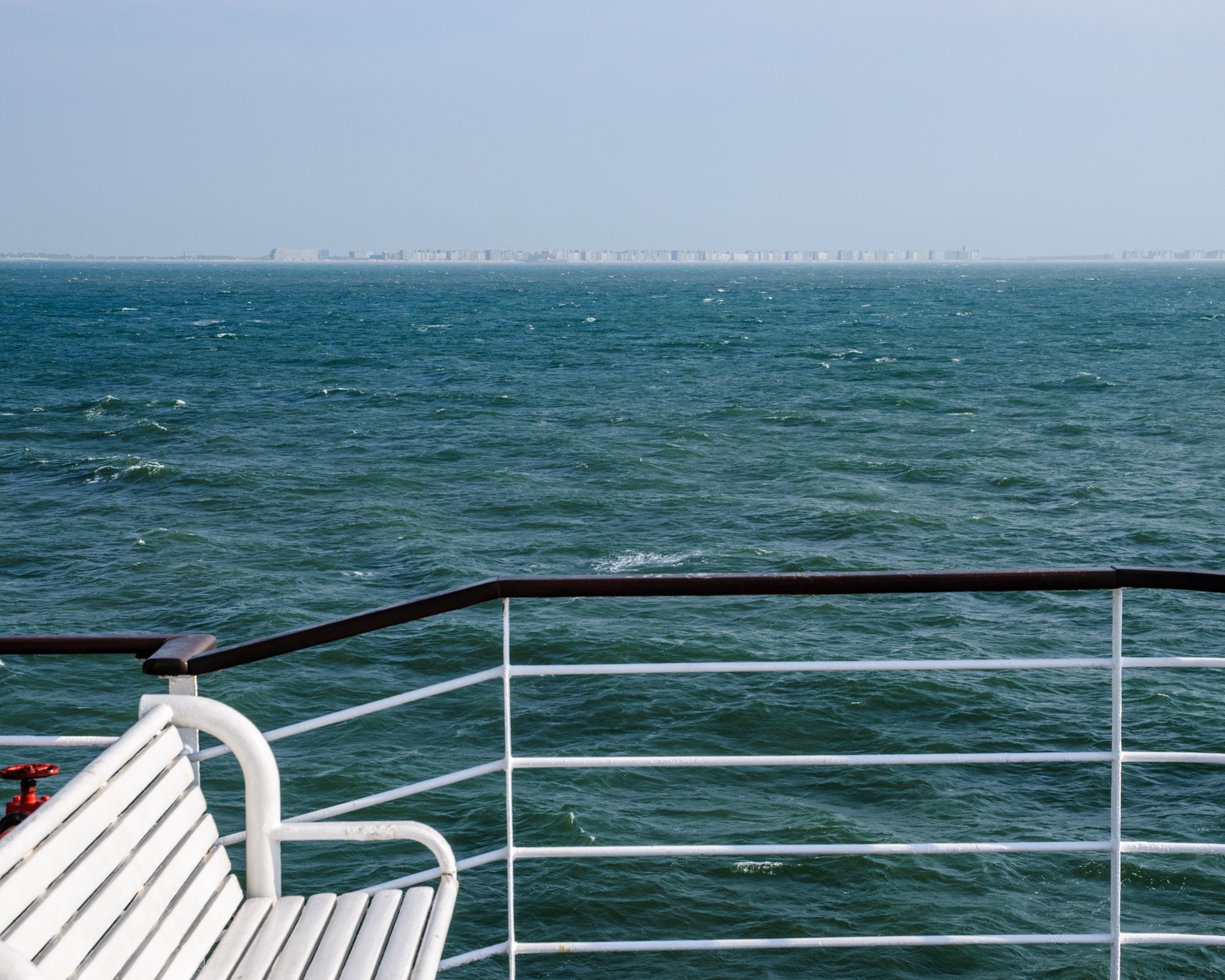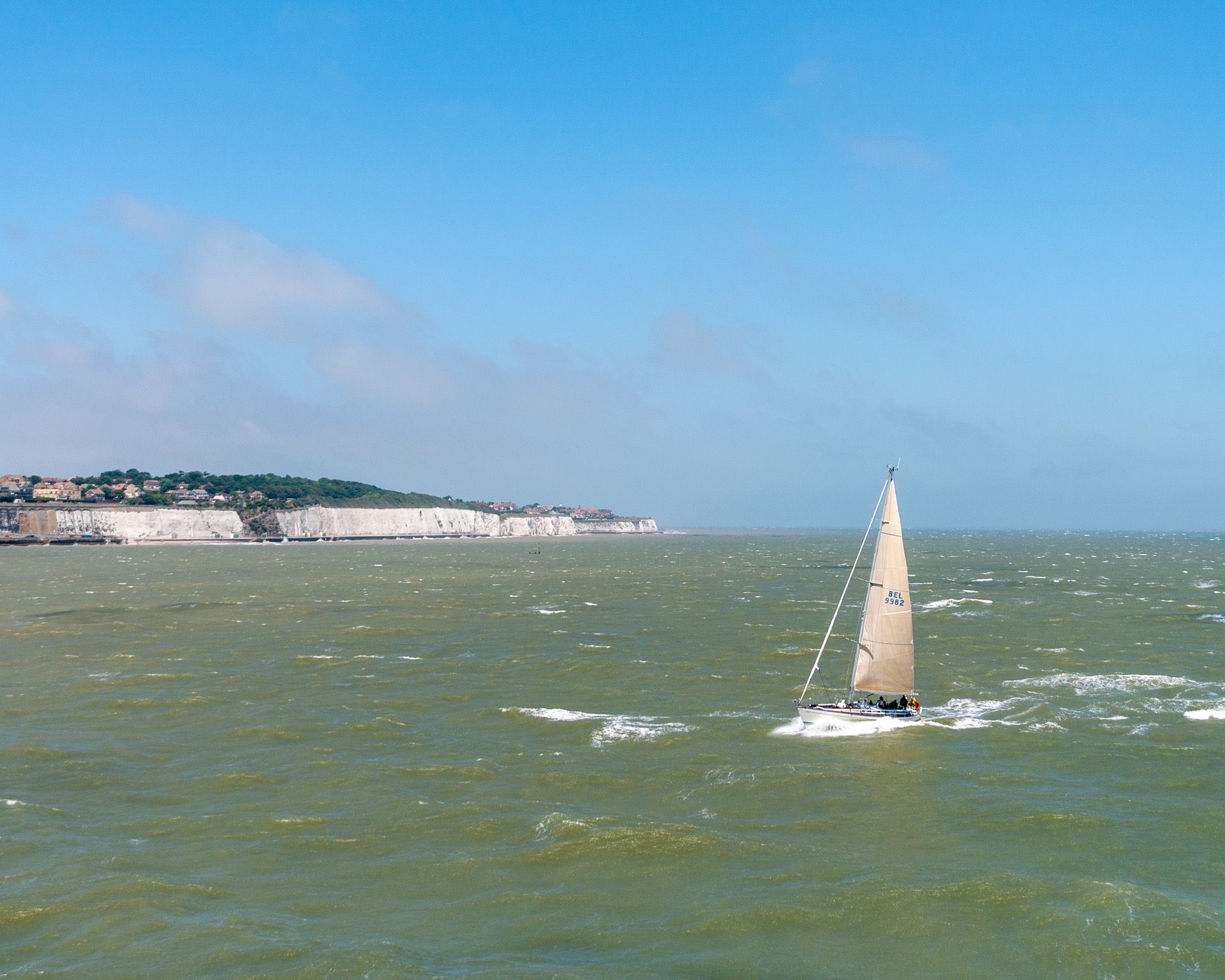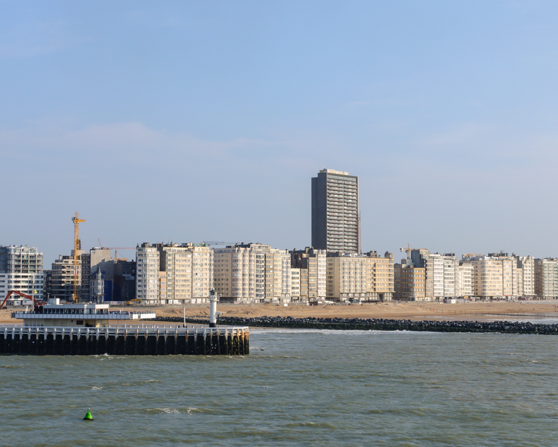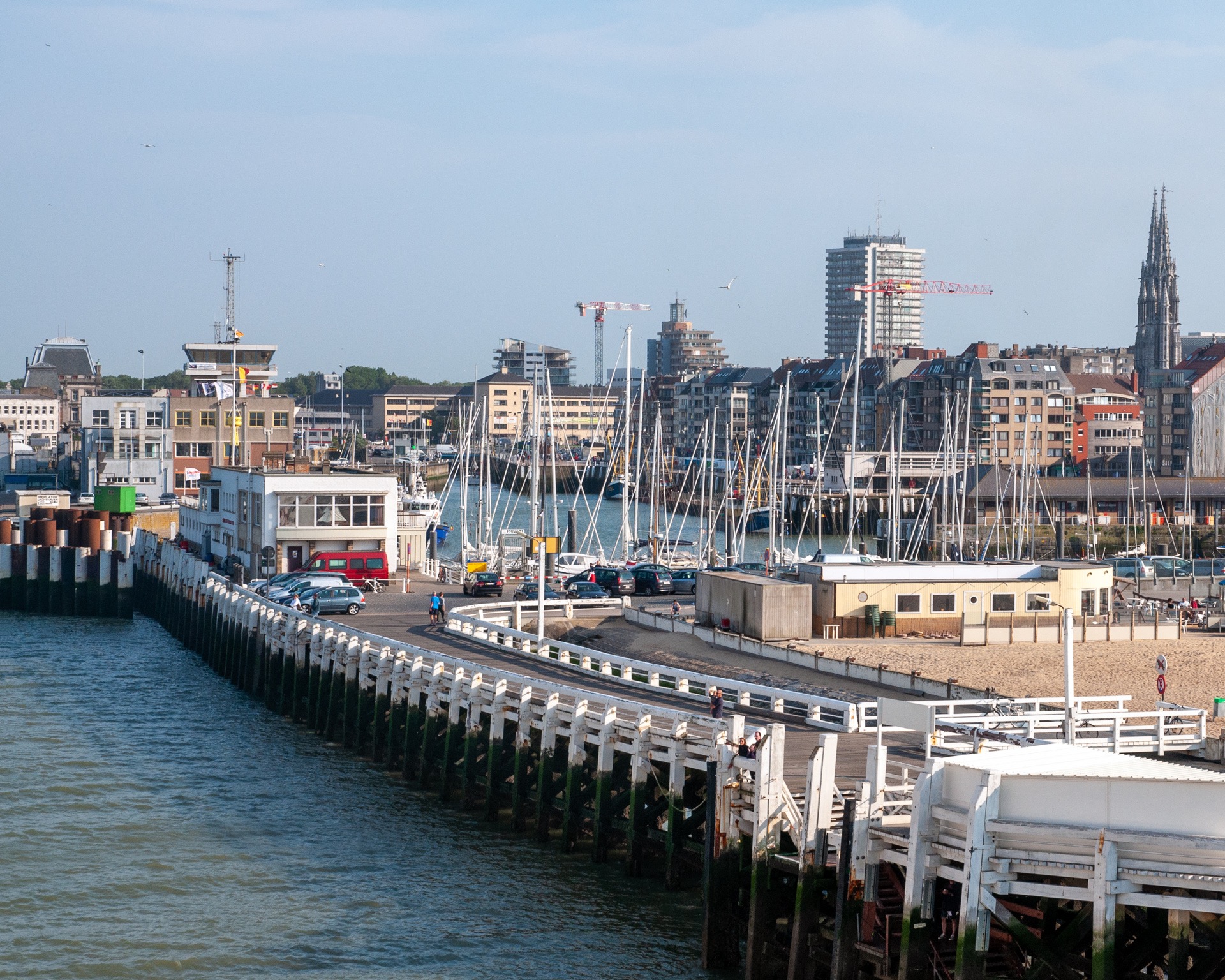 Ramsgate. Vorne die Einfahrt in die Marina, überragt wird der Ort von der St. George‘s ChurchNoch ein Blick auf RamsgateEin letzter Blick auf die Kreidefelsen an der englischen KüsteUnterwegs begegnet uns ein anderes Schiff auf dem Weg nach RamsgateWir genießen das schöne Wetter und verbringen die Überfahrt an DeckDie belgische Küse kommt in SichtAn fast der gesamten belgischen Nordseeküste findet man direkt hinter dem Strand Hochhaus an HochhausVorbei an den Hafenbecken in Oostende