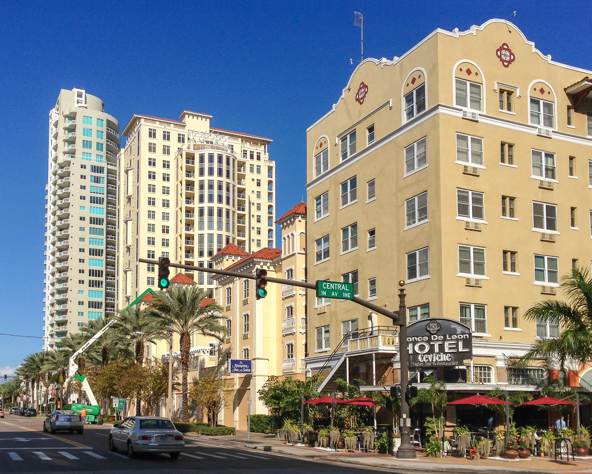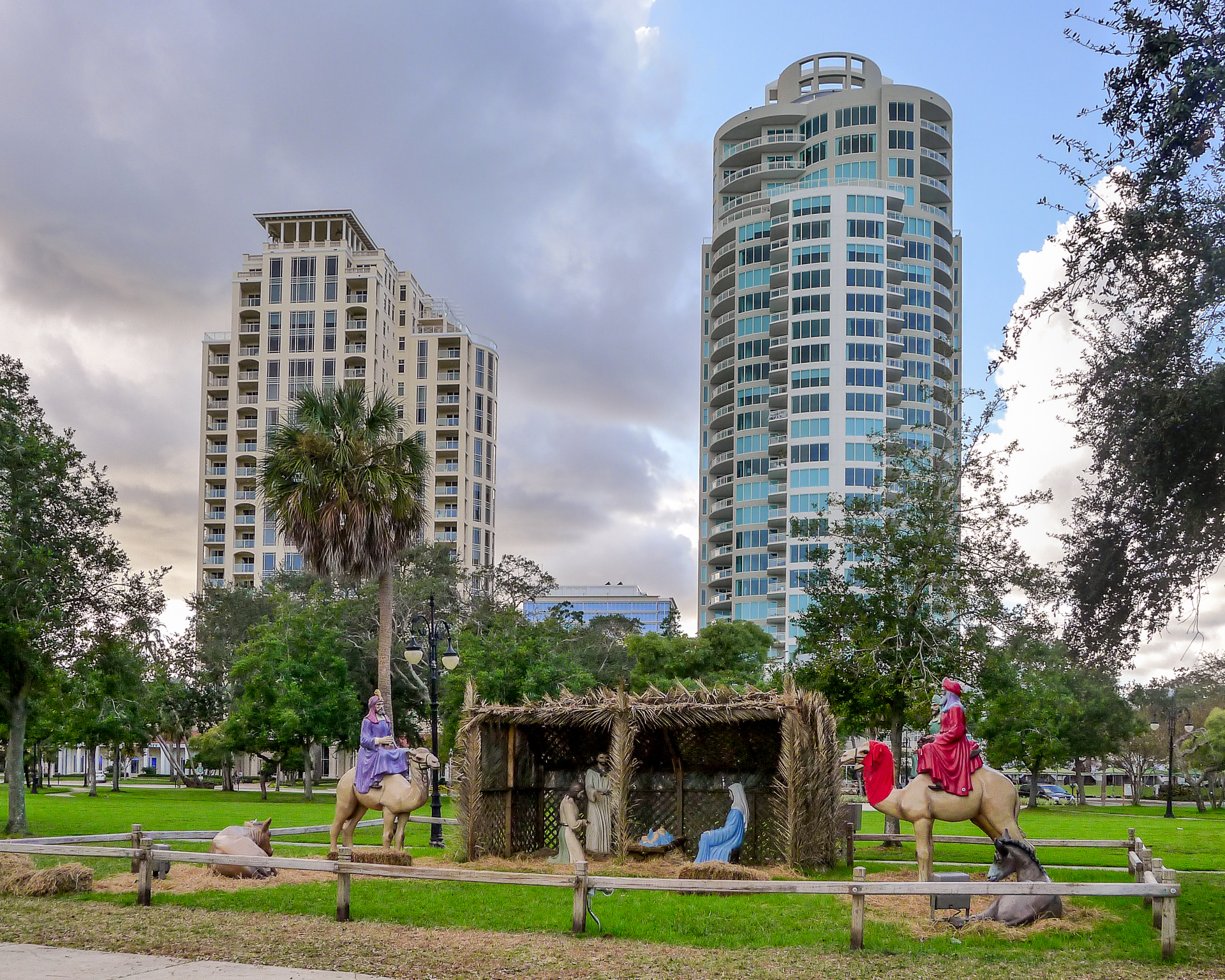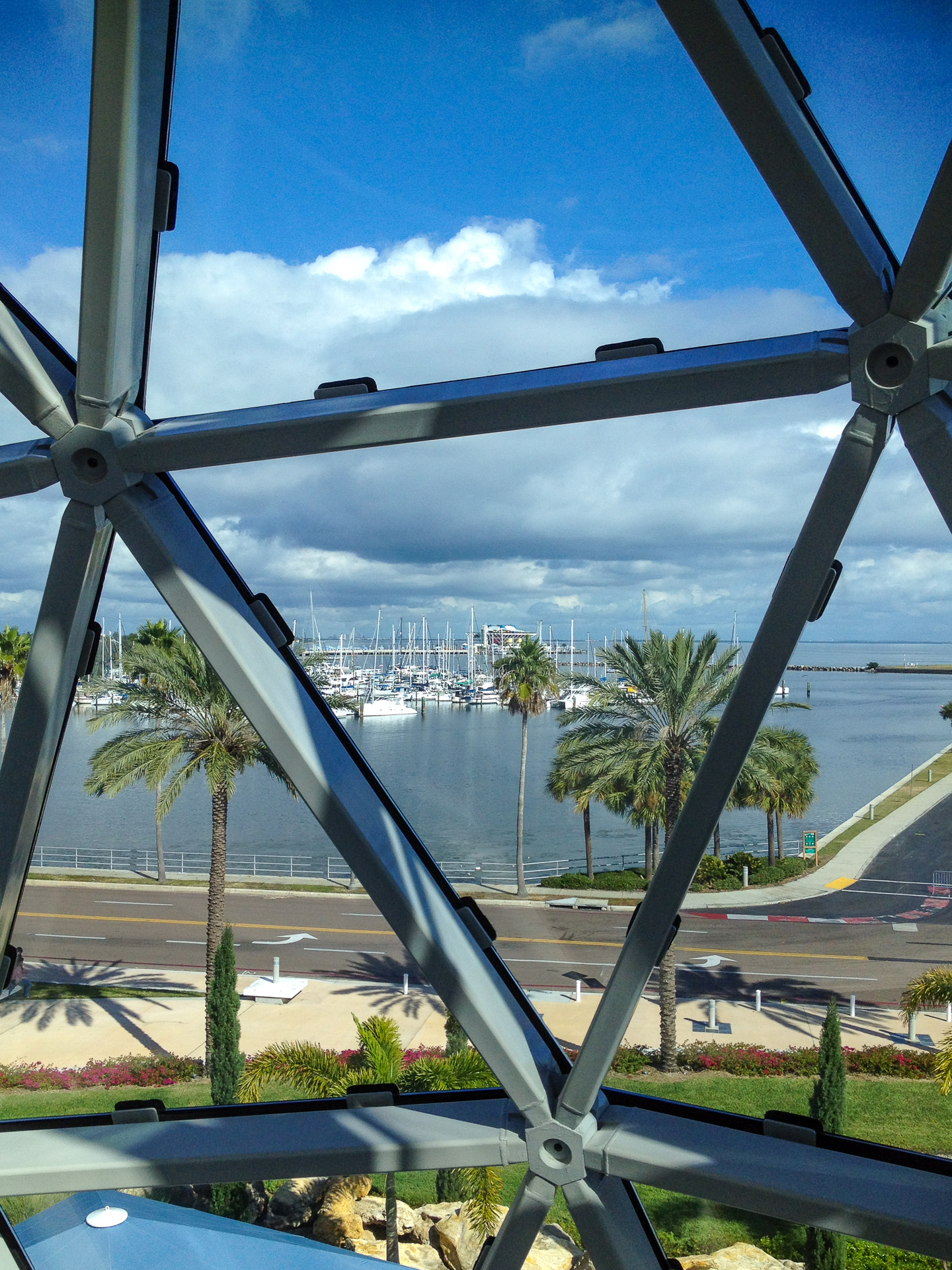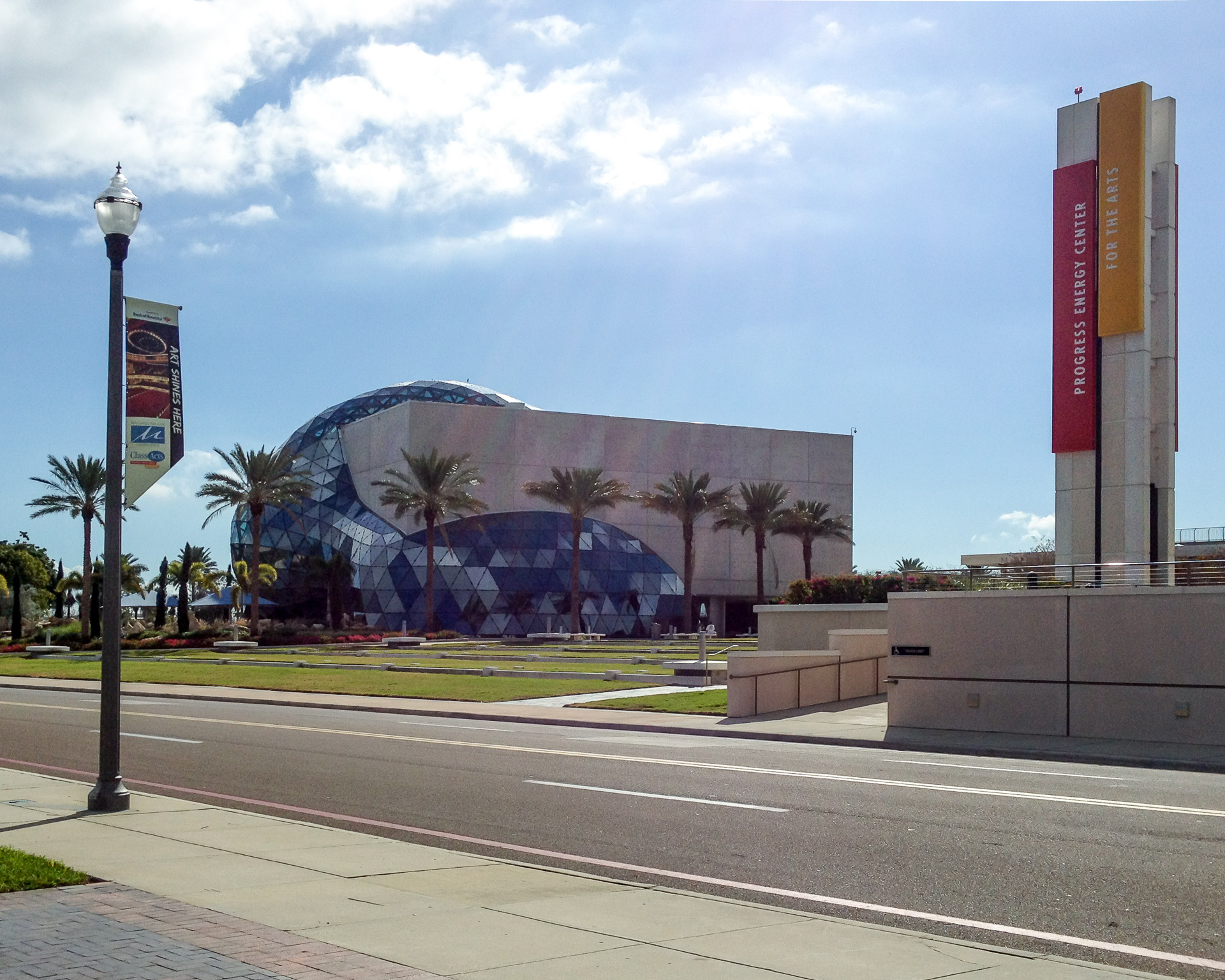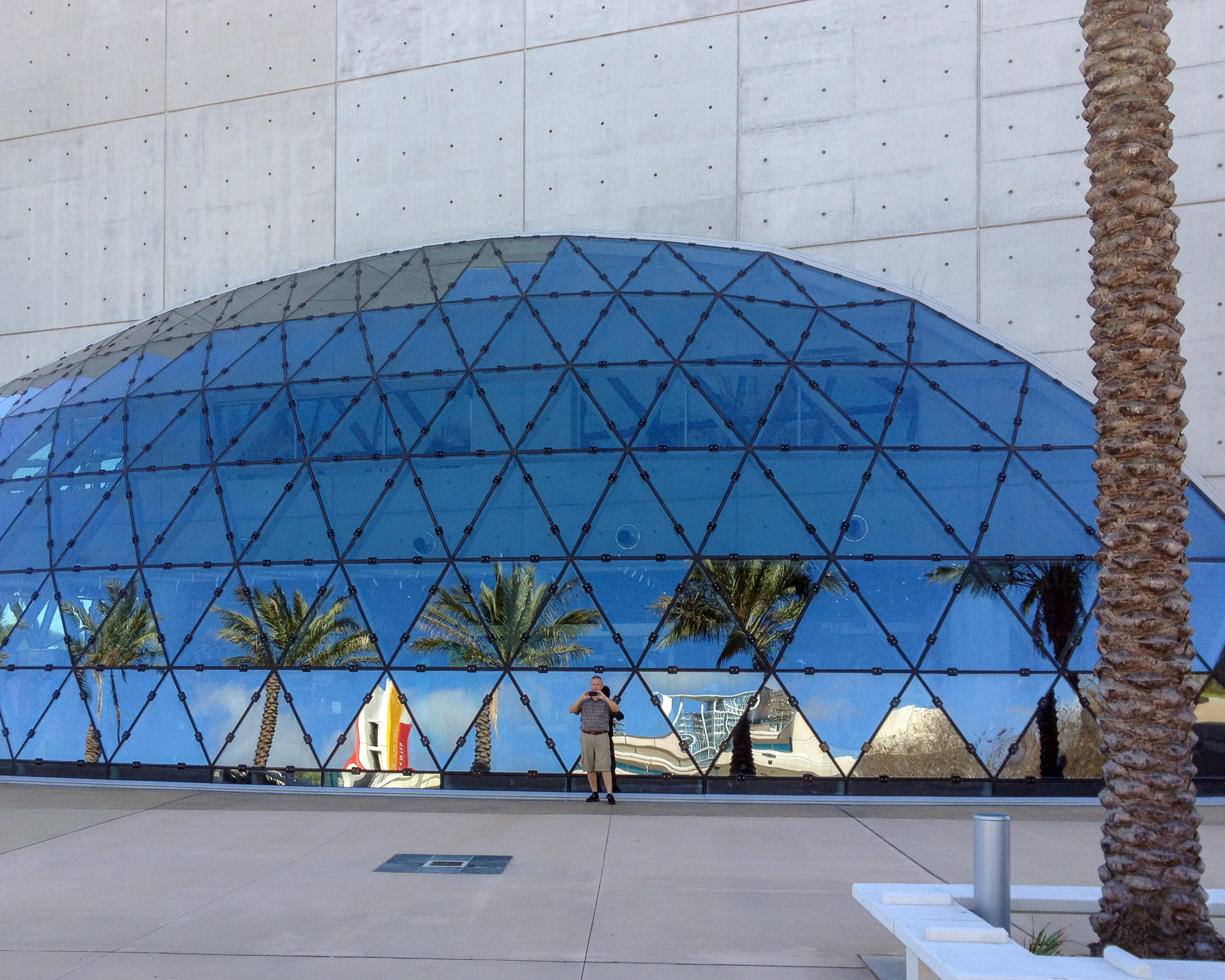 Der Besuch war dann allerdings nicht ganz einfach. Einer Broschüre im Hotel entnahmen wir die Adresse des Museums, irgendwo an der 4th Street South. Wir parkten den Wagen in der Innenstadt, überprüften die Adresse nochmal auf einem Netzplan des Busbetriebs und machten uns auf den nicht zu langen Weg Richtung Museum. Bloss – ein Dali Museum kam nirgends in Sicht. Und leider hatte ich mir die Hausnummer nicht gemerkt, so dass wir erstmal noch ein paar Blocks weiter gelaufen sind. Einzig ein verblichenes Plakat an einem geschlossen Café mit dem Werbespruch „You have been at the Dali, now come to the Deli“ sahen wir. Letztendlich fanden wir ein nun zur Universität gehörendes Gebäude, an dessen Eingangstür sich ein DIN A4 Zettel mit „The Dali Museum has been moved“ und praktischerweise einem Google Maps Ausdruck mit dem Weg zum neuen Standort befand. Bereits Im Januar 2011 war das Museum umgezogen, jetzt im Dezember waren immer noch jede Menge irreführender alter Information im Umlauf.