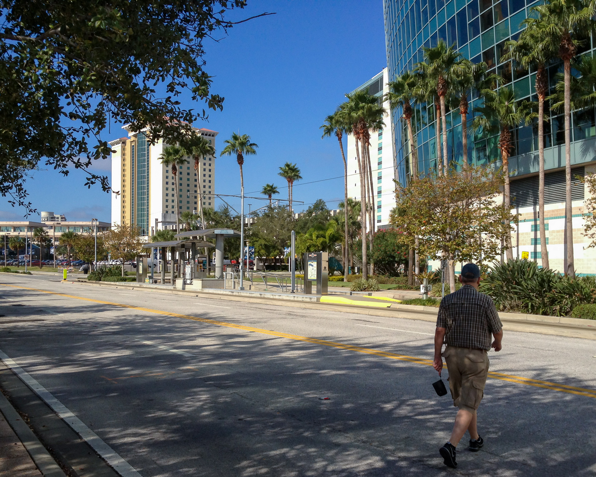 Eine verstellte Kamera ist schuld daran, das es nicht mehr Fotos aus Ybor City gibt. Mit der Bahn fuhren wir zurück bis zur stadtseitigen Endstation „“Whiting Street“ und konnten noch etwas durch die Innenstadt von Tampa schlendern, dann machten wir uns auf entlang des „Tampa Riverwalk“ vorbei am Convention Center zurück zum Auto zu kommen.