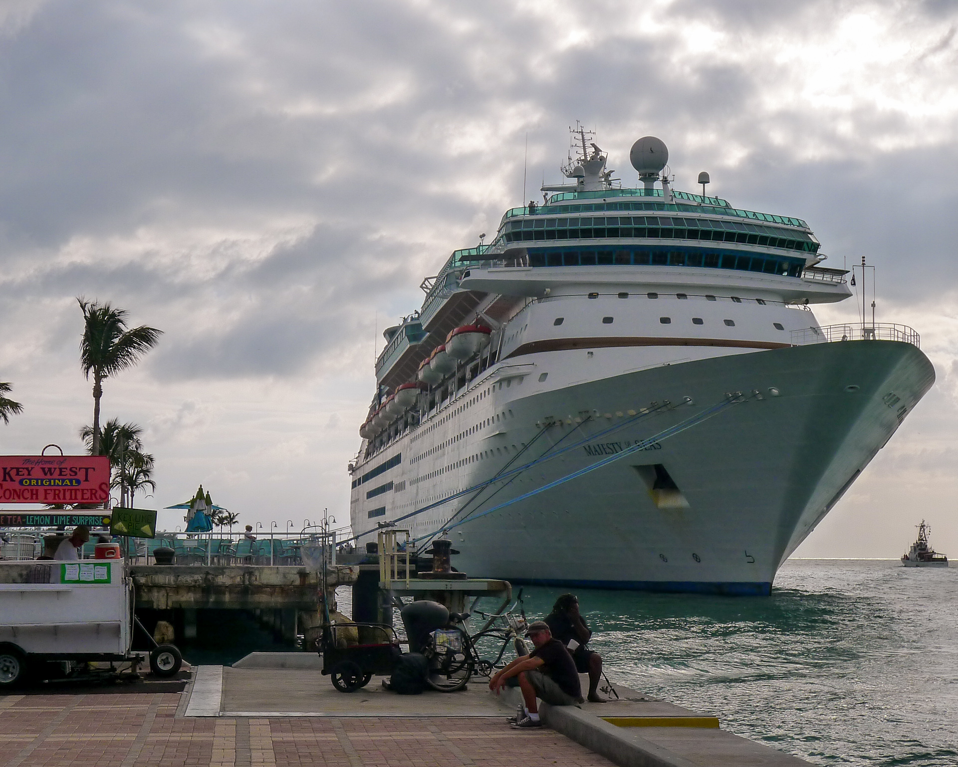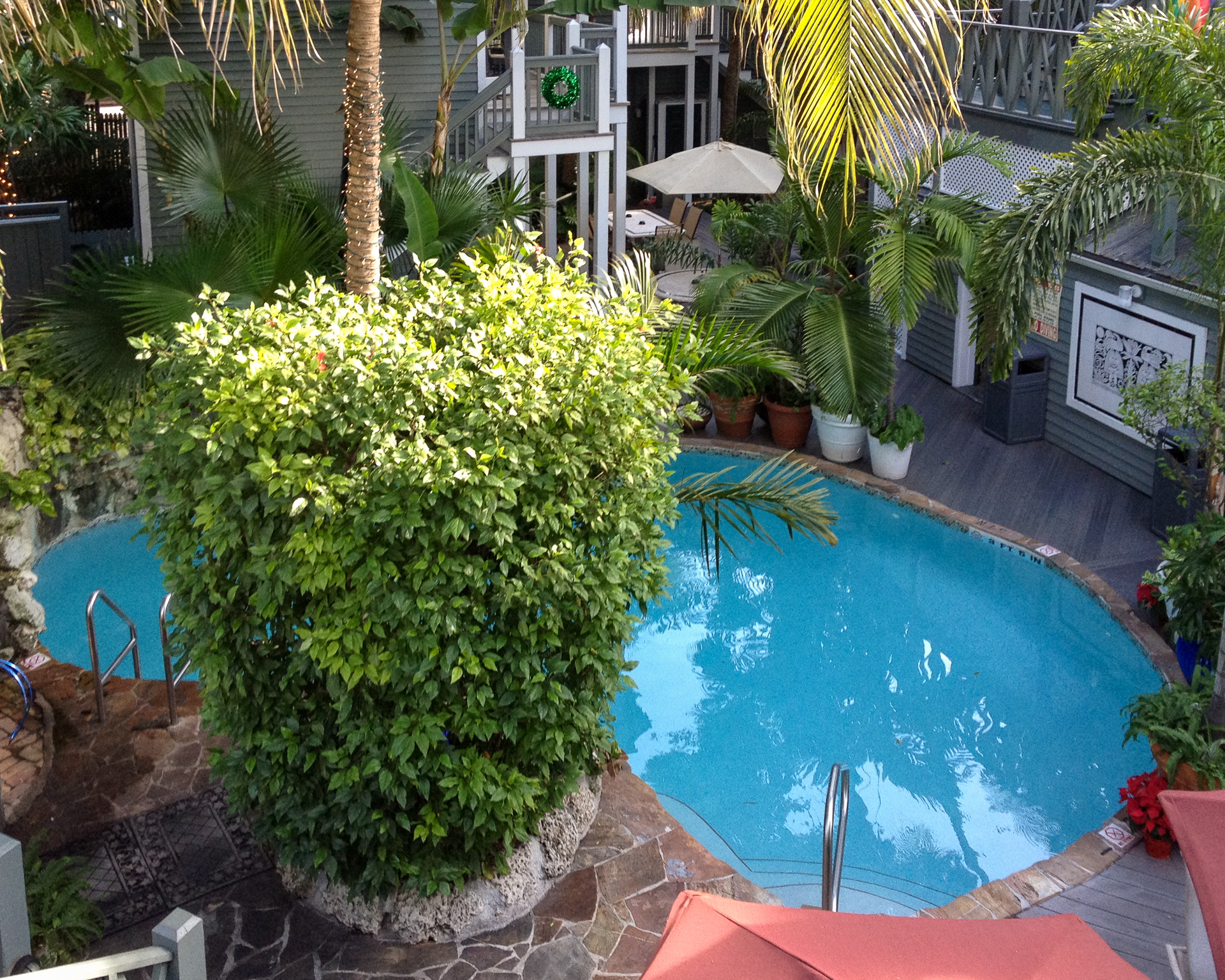 Zum Hotel: Es war „Big Rubys“, eigentlich ein „typisches Key West Guest House“, und ich kannte es von früher, Anfang der 90er Jahre war ich bei meinem ersten Florida Aufenthalt in einem in Miami gekauften Reiseführer darüber gestolpert und hatte mich dort für ein paar Tage eingebucht. Unter den damaligen Eigentümern fand ich es eines der besten Hotels die ich kannte und war in den Folgejahren mehrfach dort. Leider wurde es dann verkauft und bereits bei meinem ersten Aufenthalt kurz nach dem Eigentümerwechsel gefiel es mir schon nicht mehr so richtig. Billig war es nie, aber die vom neuen Eigentümer verlangten Preise fand ich völlig überzogen, sodass ich danach bei folgenden Besuchen in Key West konsequenterweise anderswo übernachtete. Dieses Jahr entschied ich mich dann doch wieder für Big Rubys und wurde – wie erwartet – enttäuscht. Es war nichts mehr als eine sehr schlechte Kopie seiner selbst. Angefangen vom arroganten und gedankenlosen Personal bis hin zur auch nur noch oberflächlichen Sauberkeit. Nach einer Dekade war die unveränderte Zimmerausstattung auch nicht mehr „up to date“, einen Röhrenfernseher hatte ich in einem Hotelzimmer lange nicht mehr gesehen. Den ganzen Tag durchgehend wurde man mit billigster, extrem schlechter Techno-Musik bedudelt, auch beim Frühstück und der abendlichen Happy Hour. 250 Dollar pro Nacht – und vor Weihnachten ist in Key West noch Nebensaison – verlangte man dafür. Die Auslastung war auch extrem niedrig.