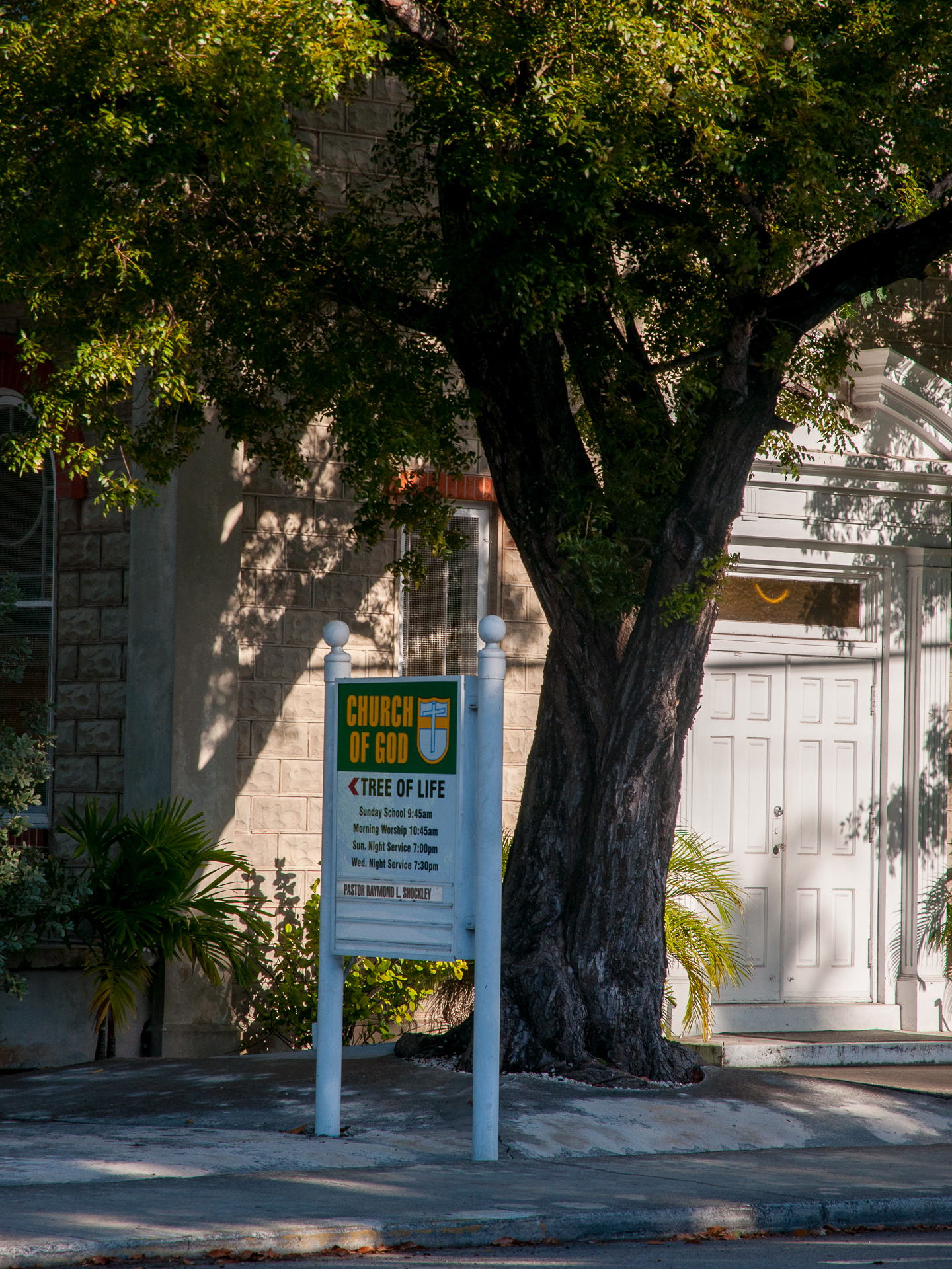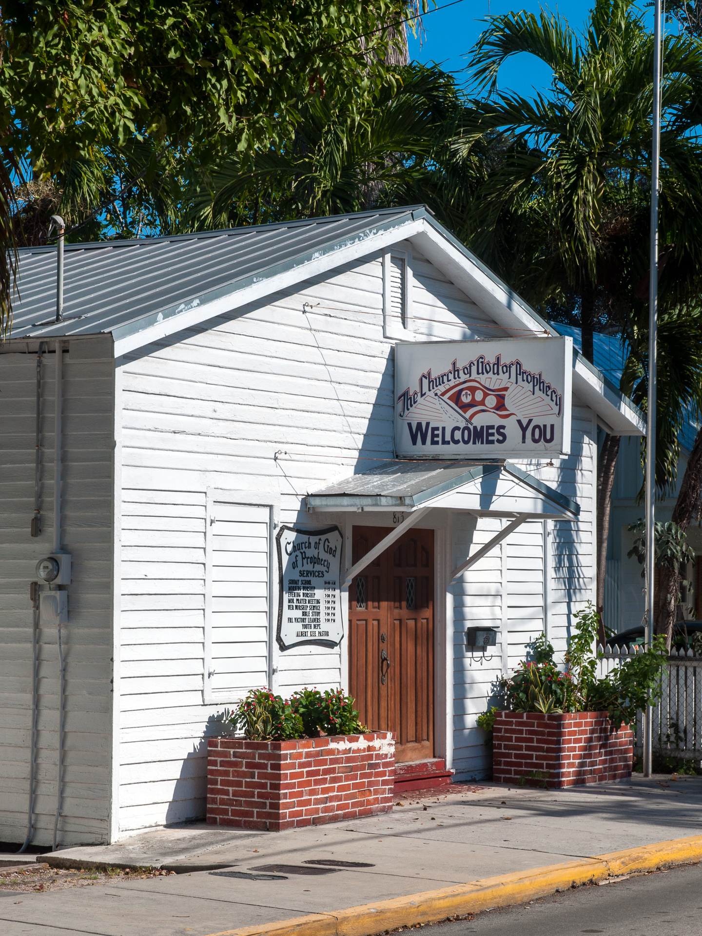 Wie man Wikipedia entnehmen kann, gibt es in Key West 44 Kirchen von 16 unterschiedlichen Konfessionen, und noch 10 Kirchen ohne Konfession – bei ca. 25.000 Einwohnern. Irgendwann ist mir die große Anzahl Kirchen aufgefallen und ich habe sie als Fotomotiv entdeckt:
