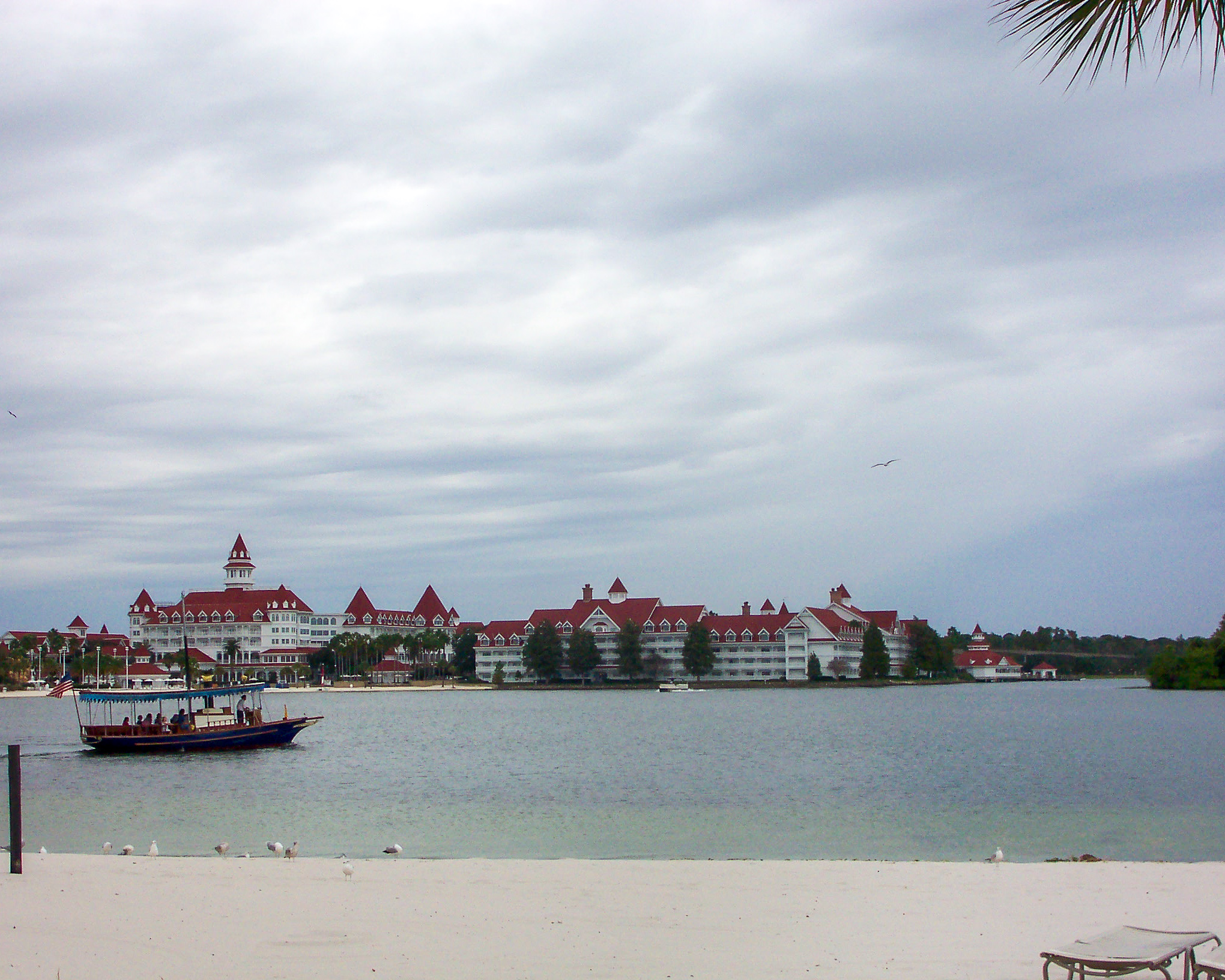 Wir sind dann ausgestiegen und haben uns umgesehen. In einen der Parks hineingehen war natürlich nicht möglich, maximal wäre ein Aufenthalt von 2 Stunden möglich gewesen, und dafür sind die Eintrittspreise dann doch ein bisschen hoch. Wie wir aber schnell feststellten, ist das „Ticket- and Transportation Center“ jetzt kein besonders gemütlicher Ort für einen auch nur kurzfristigen Aufenthalt, alles ist darauf ausgerichtet das man möglichst schnell in einen der Parks kommt. Zum Glück gab es einen Fußweg zu einem nahegelegenen Resort von Disney – dem Polynesian Village Resort. Es ist eines von mehreren Resorts um die zentrale „Seven Seas Lagoon“, an der auch das Magic Kingdom liegt. Dort konnte man sich in Ruhe umsehen, ohne gleich unangenehm aufzufallen. Das Resort sieht ganz gut aus, wie ein Check anlässlich eines späteren Urlaubs ergab, gehört es zu Disneys luxuriöseren Resorts und ist praktisch unbezahlbar.