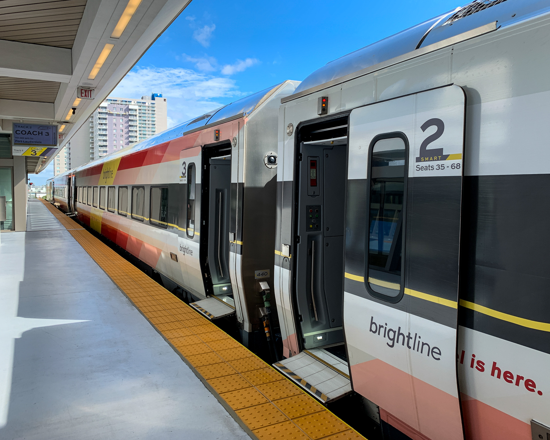 In Florida gibt es etwas ganz Anderes: Einen privat betriebenen Fernzug. Brightline heisst die Sache, seit Ende 2018 ist die Virgin Group daran beteiligt und das Branding wird auf Virgin Trains USA umgestellt. Etwa 4 Mrd. US Dollar Investitionen werden benötigt, um zwischen Miami und Orlando eine neue Bahnverbindung einzurichten. Zwischen Miami und Cocoa Beach werden die Gleise der Florida East Coast Railway benutzt, der Rest ist eine Neubaustrecke. Seit Januar 2018 wird bereits zwischen Miami und West Palm Beach im Stundentakt gefahren, Orlando will man jetzt 2022 erreichen.