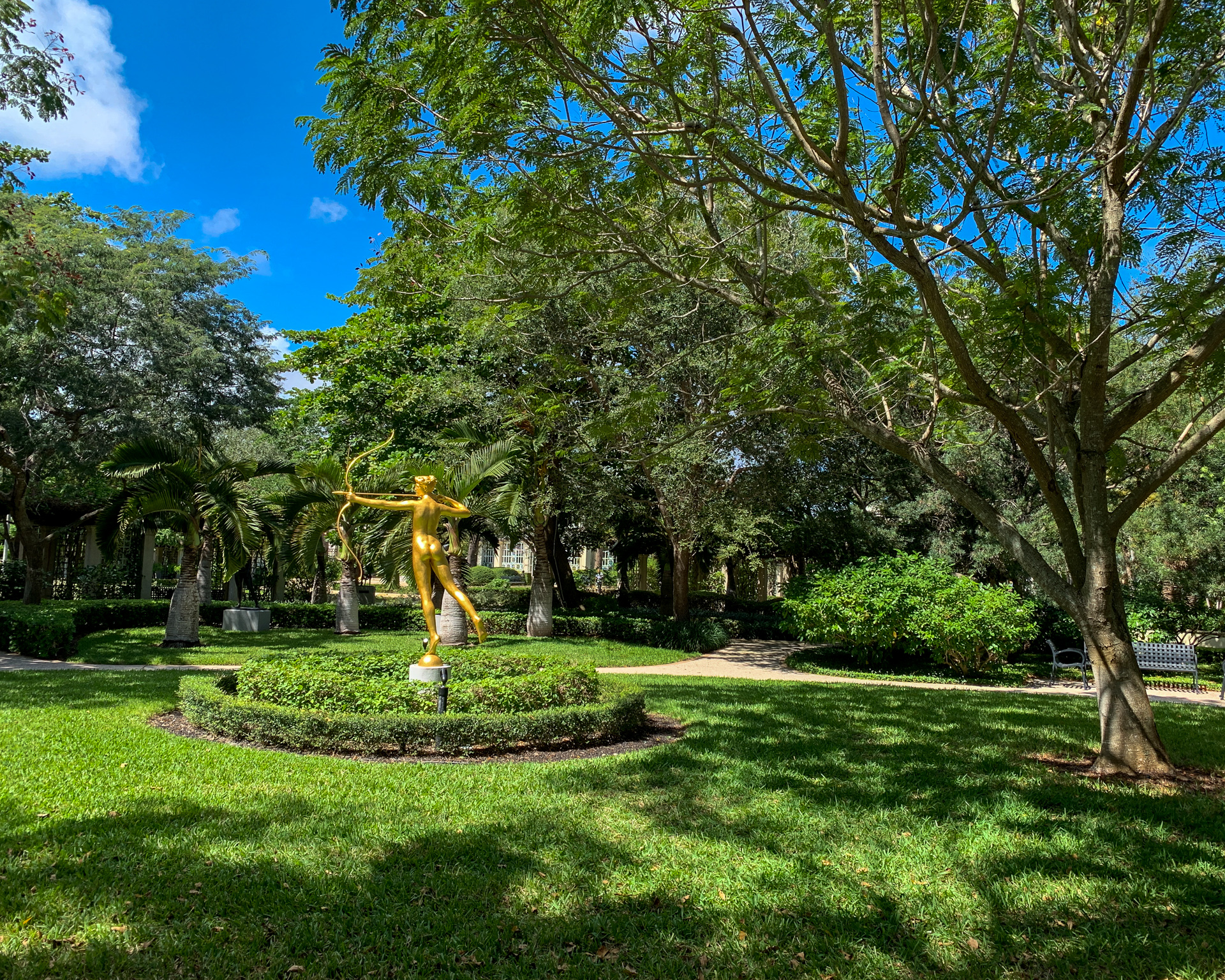 Danach gehts einen Weg in der Mitte des Golfplatzes nehmend Richtung Lagoon und zur nächsten palmenbestandenen Zufahrt: der des „Henry Morrison Flagler House“, auch Whitehall genannt.