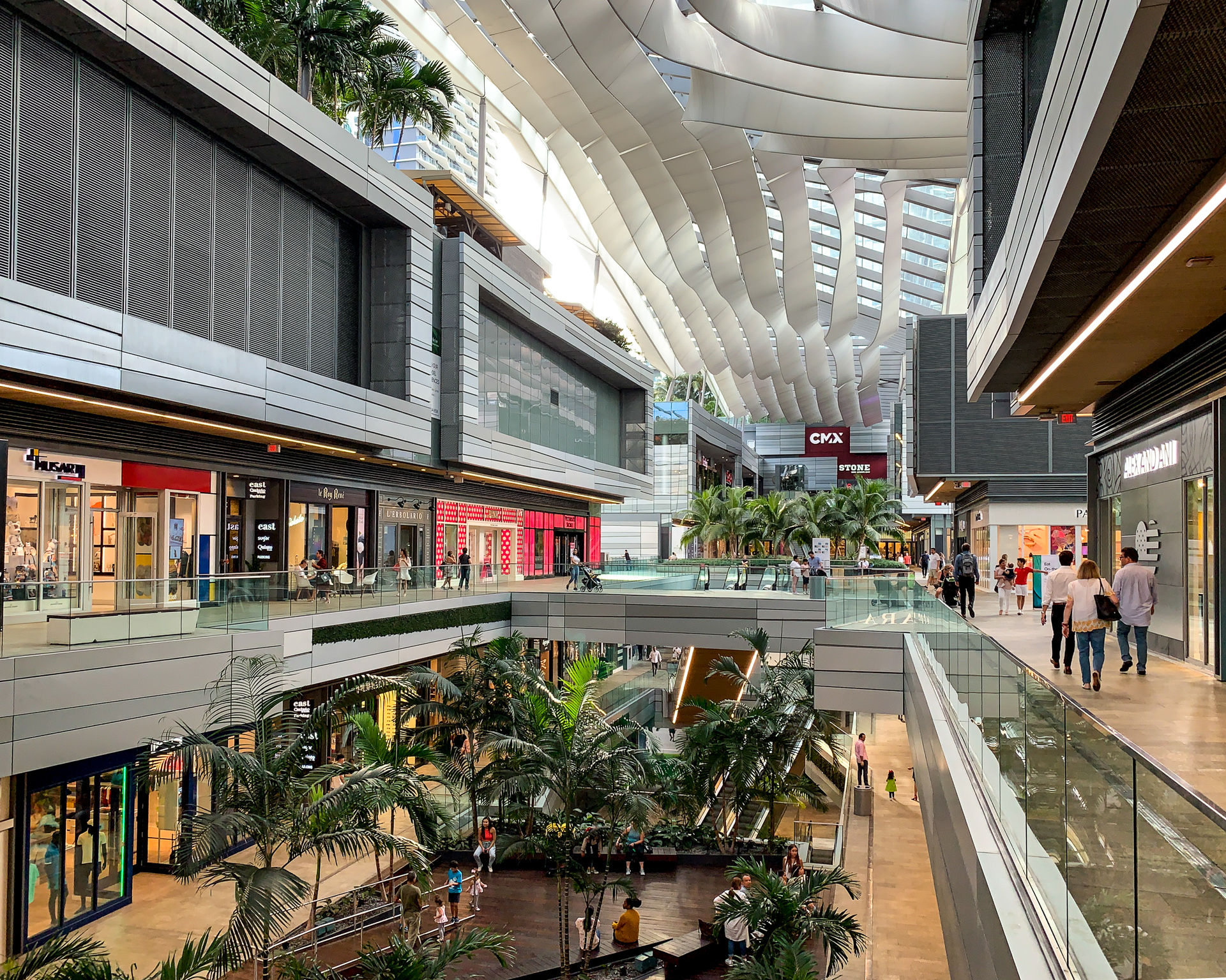 Auch für den Rückweg zum Hotel nehmen wir den Metromover, aber nur bis zum 2016 eröffneten Brickel City Centre, ein Riesenkomplex mit Shopping Mall, Wohn-/Hotel- und Bürotürmen. Die Mall ist eher ‚upscale‘, wir sind mal durchgelaufen.